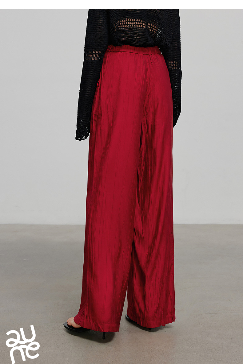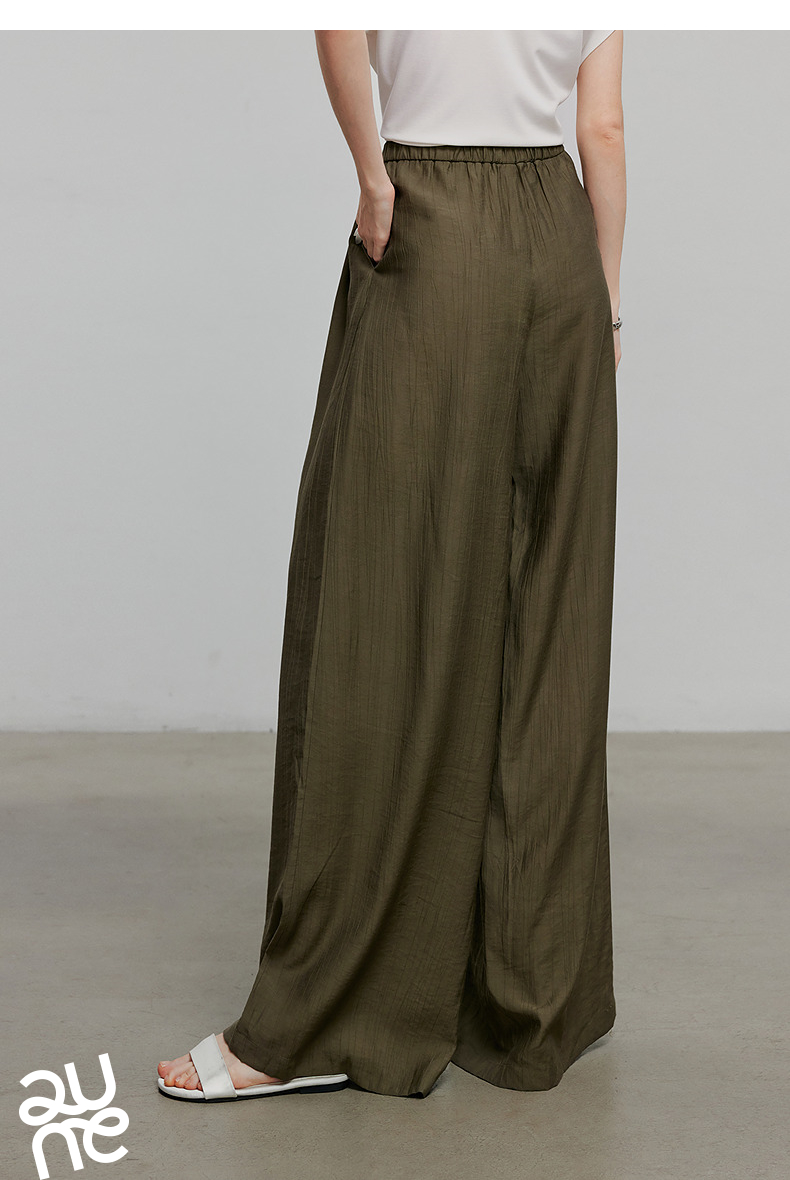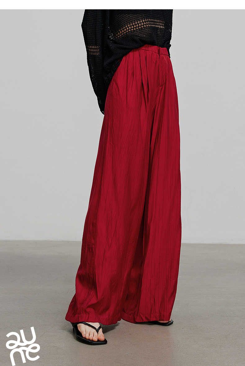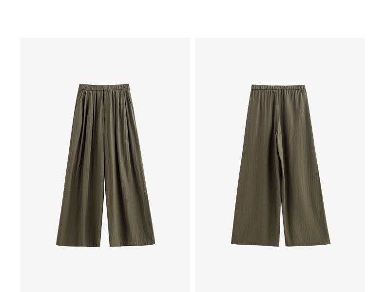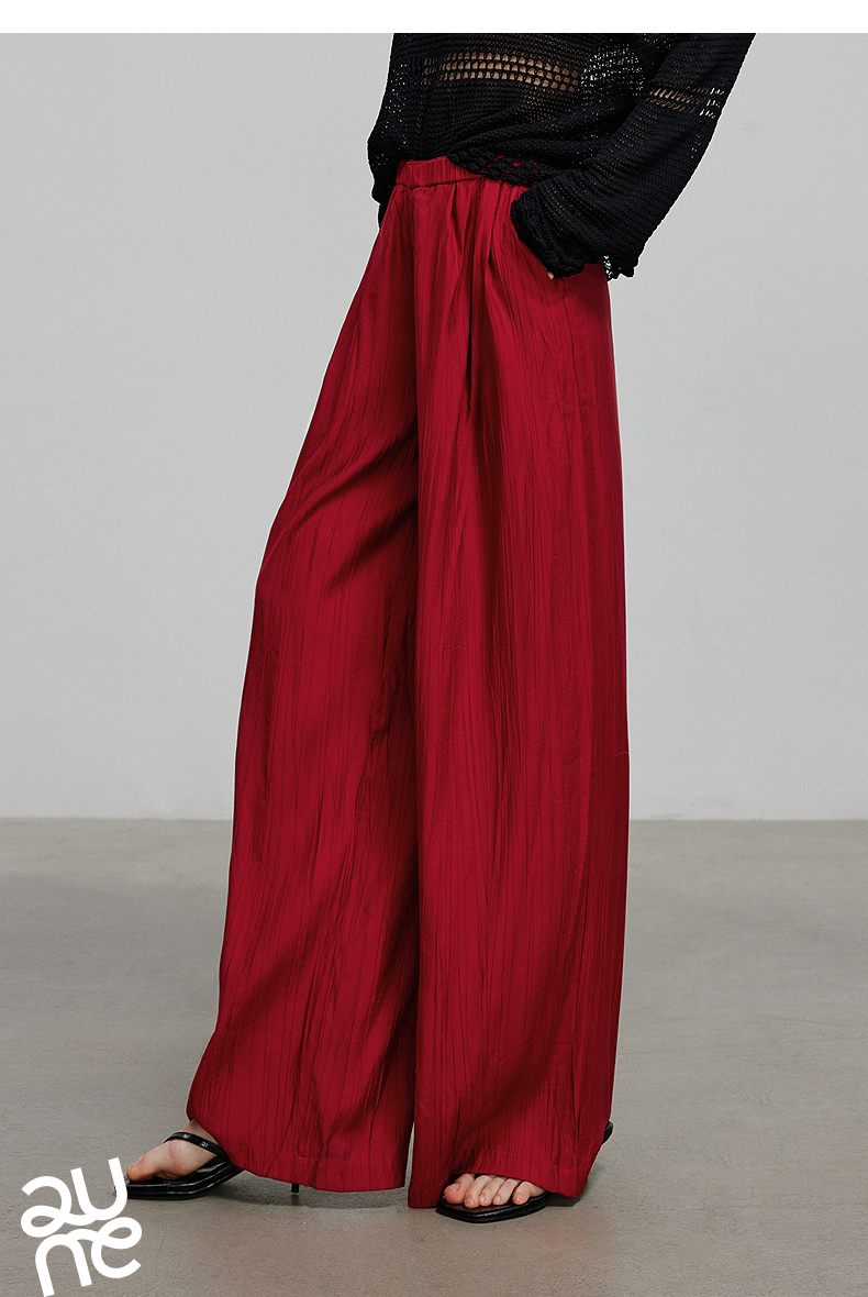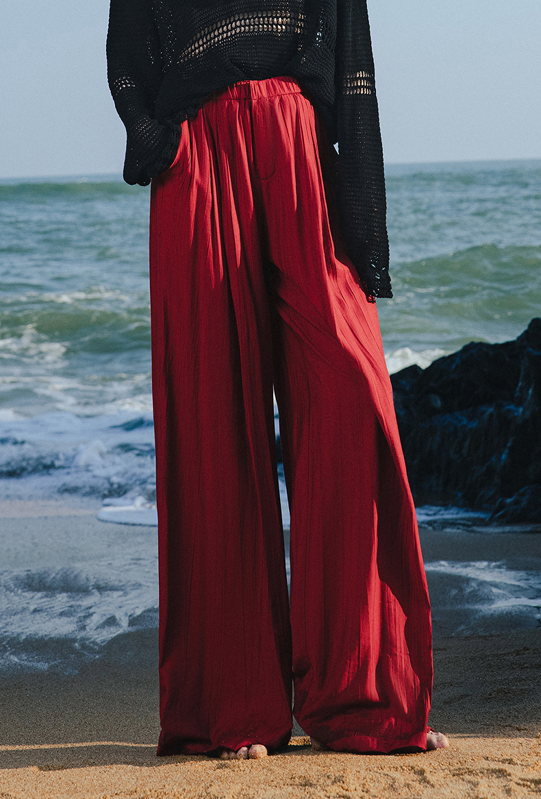 初语褶皱肌理山本裤女松紧腰宽松阔腿慵懒感休闲裤