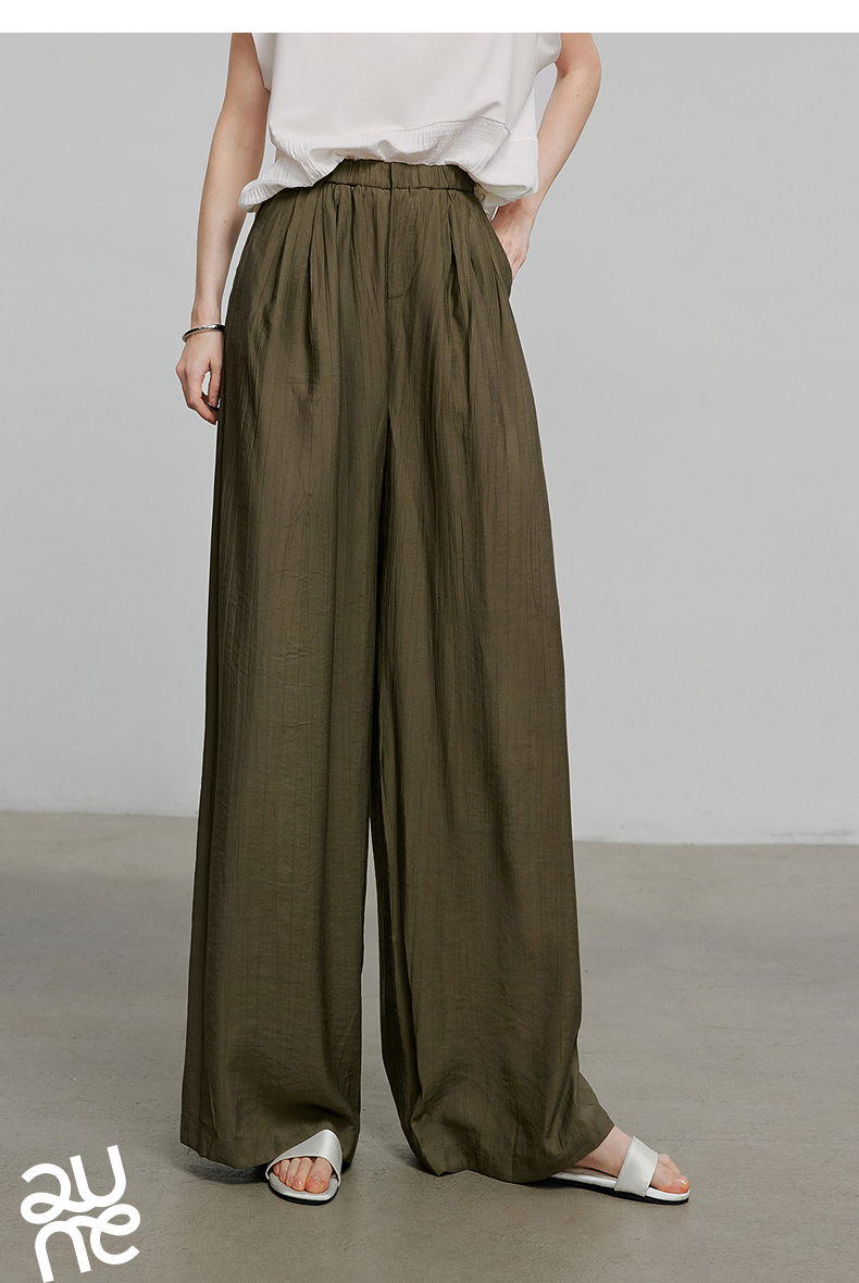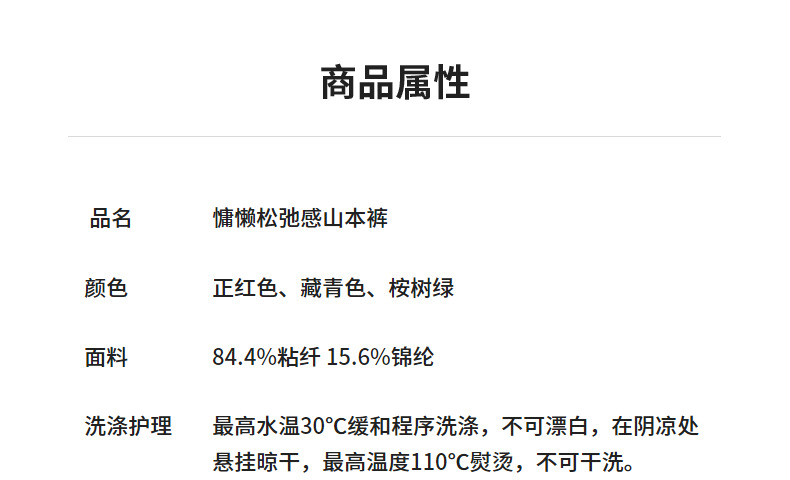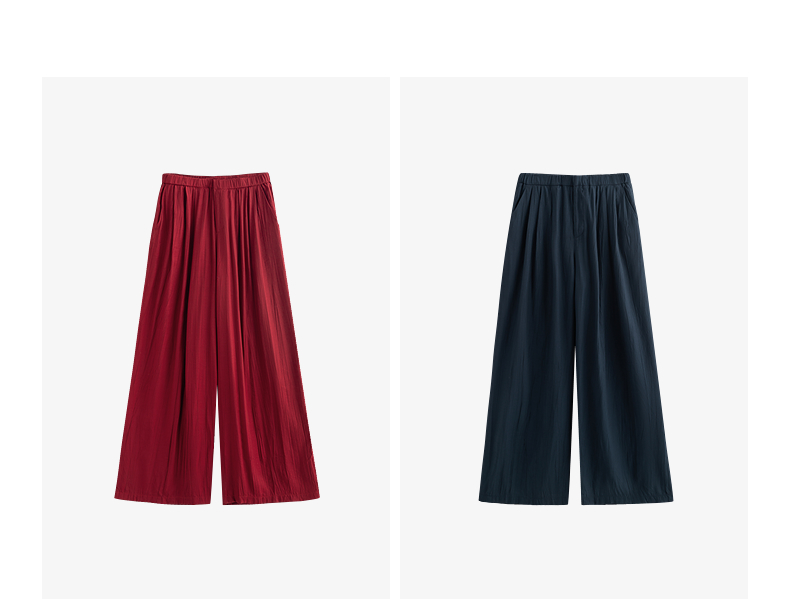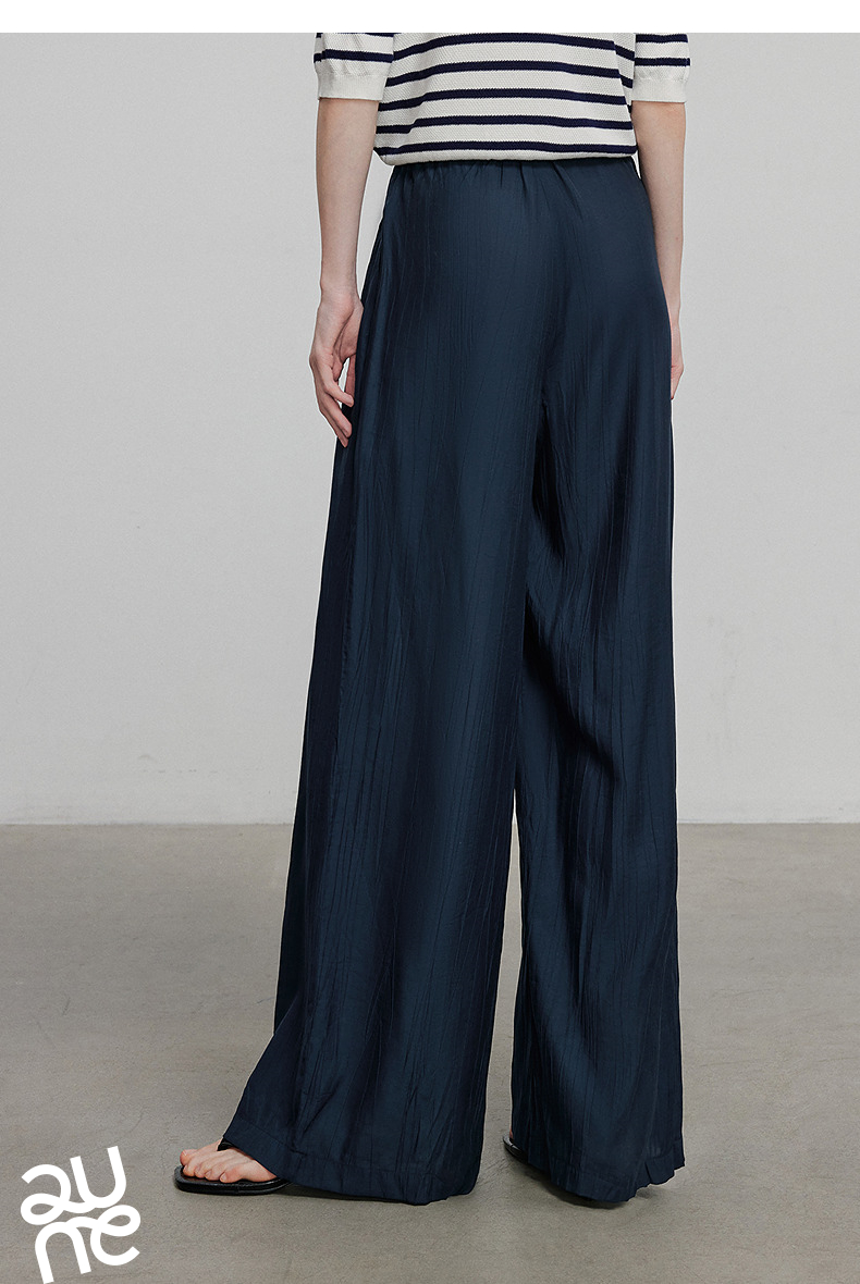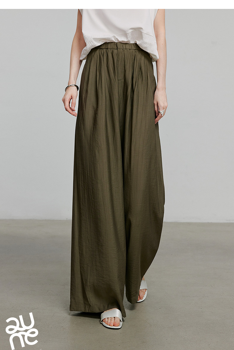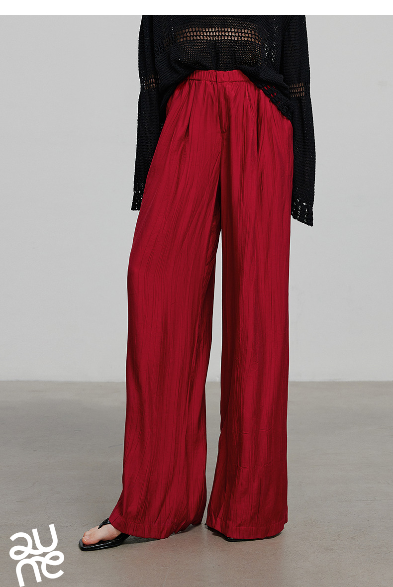 初语褶皱肌理山本裤女松紧腰宽松阔腿慵懒感休闲裤