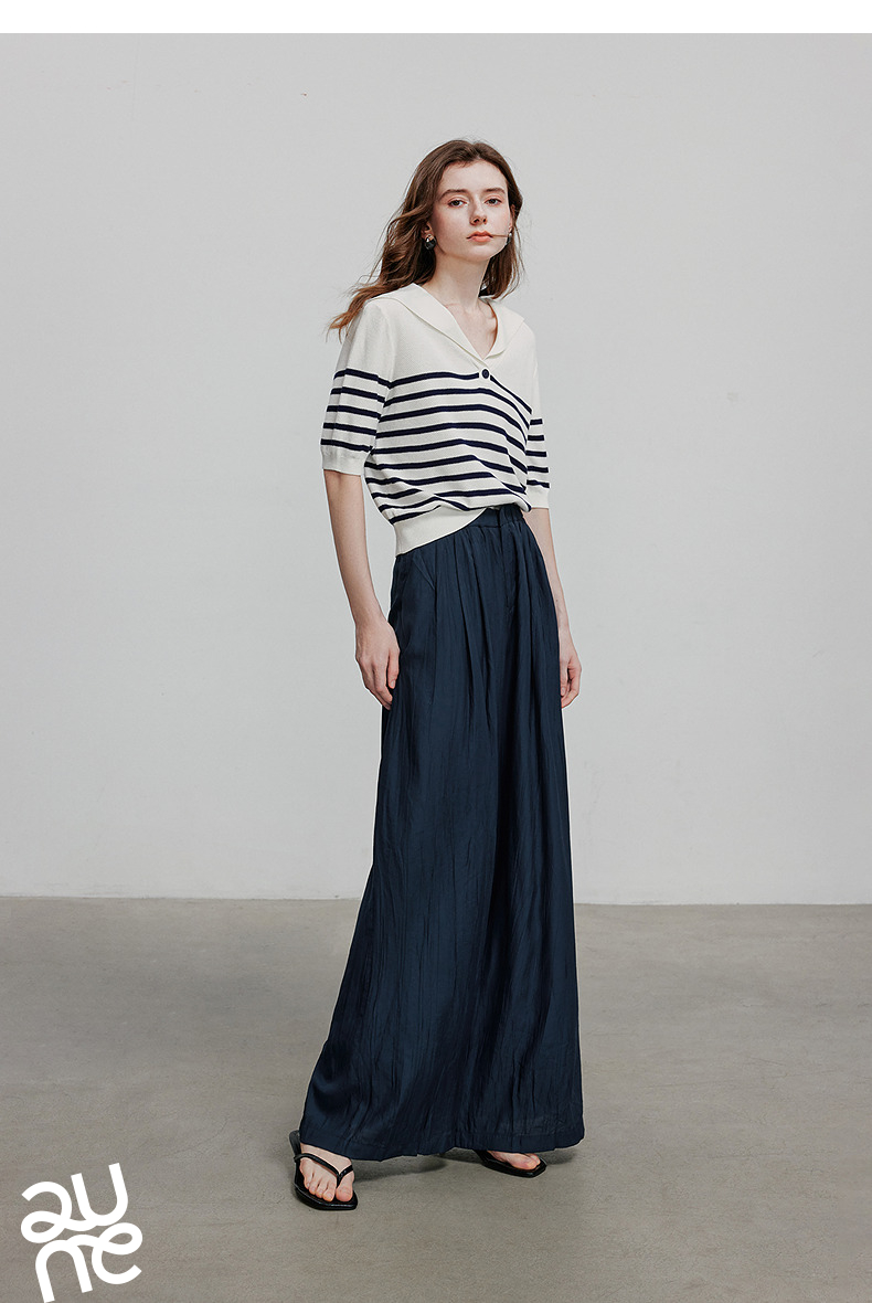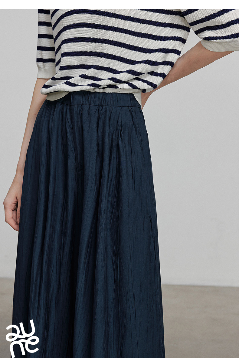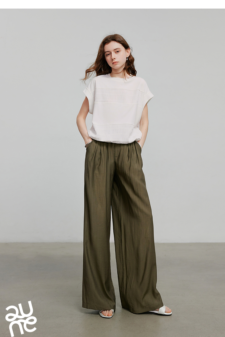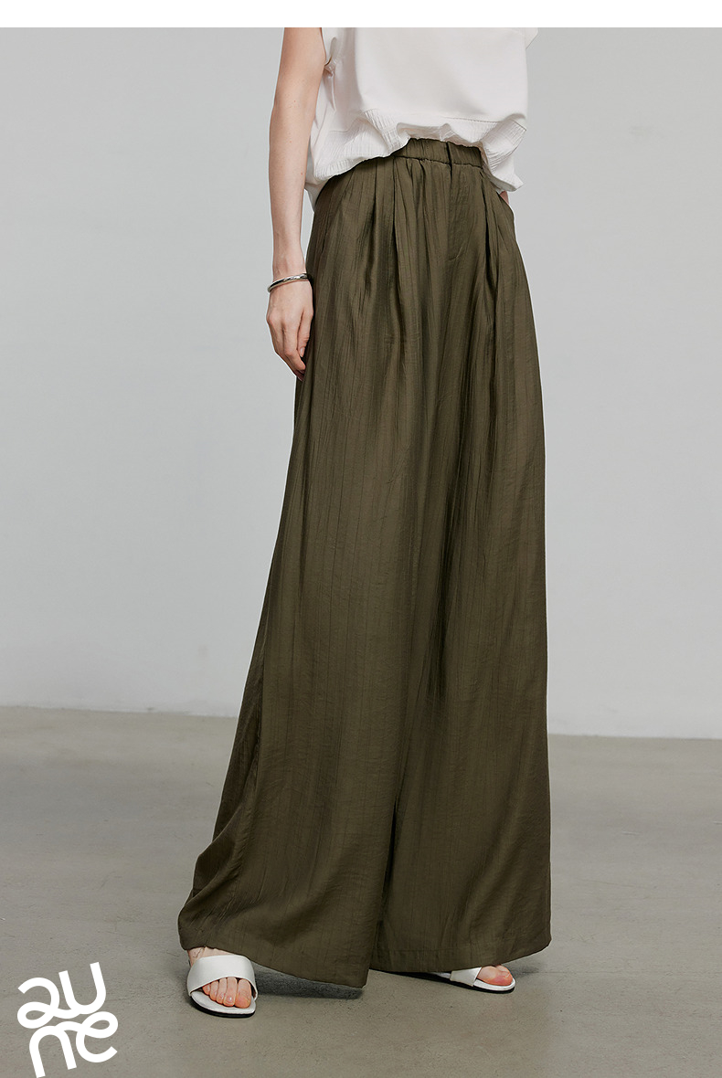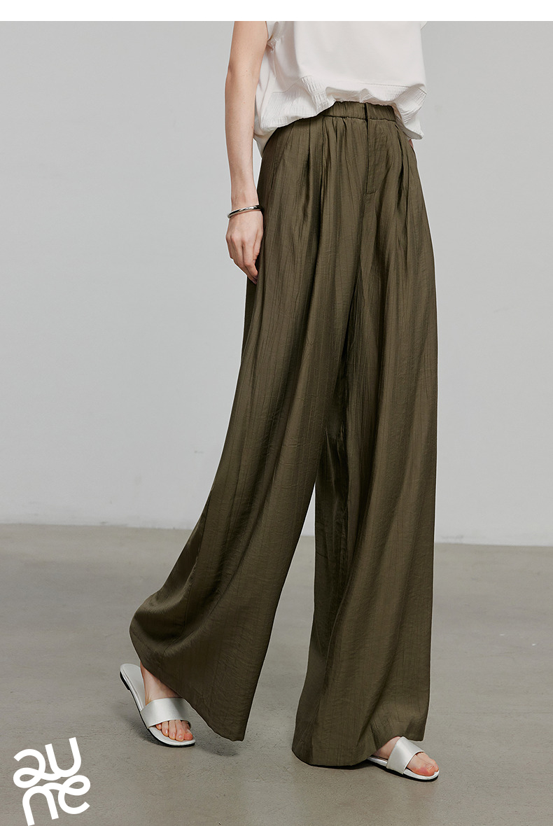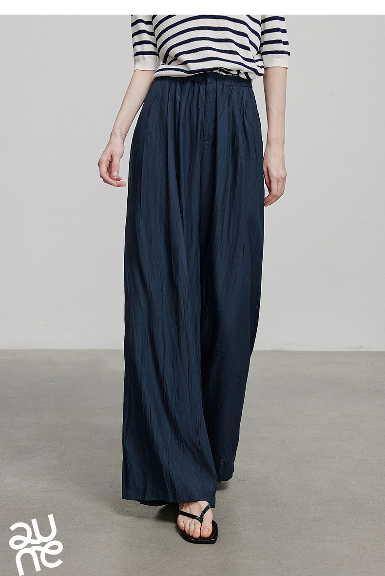 初语褶皱肌理山本裤女松紧腰宽松阔腿慵懒感休闲裤