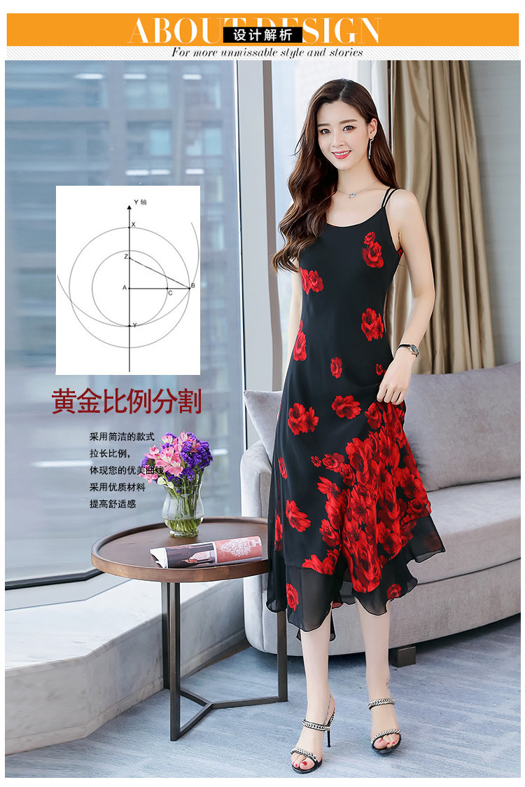 WZNH-OXN1812-1中长款H型 中腰圆领大花连衣裙套头两件套