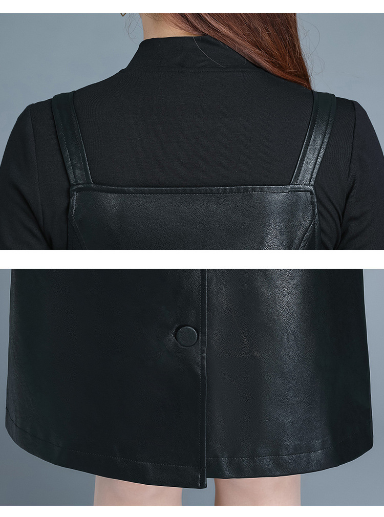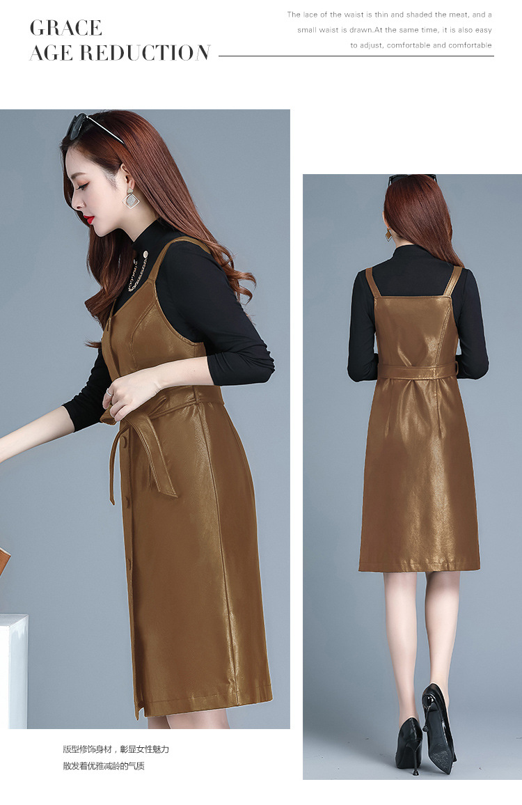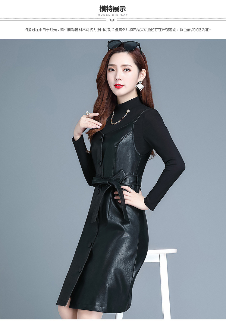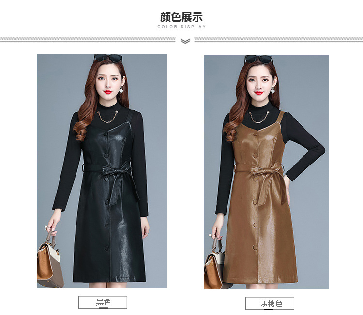 QYM-ZQ-ZSFQ2022-Y新款时尚气质中长款针织打底裙PU皮背带裙两件套