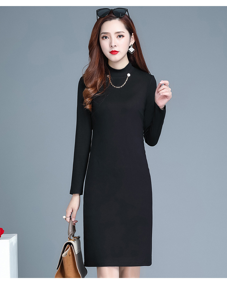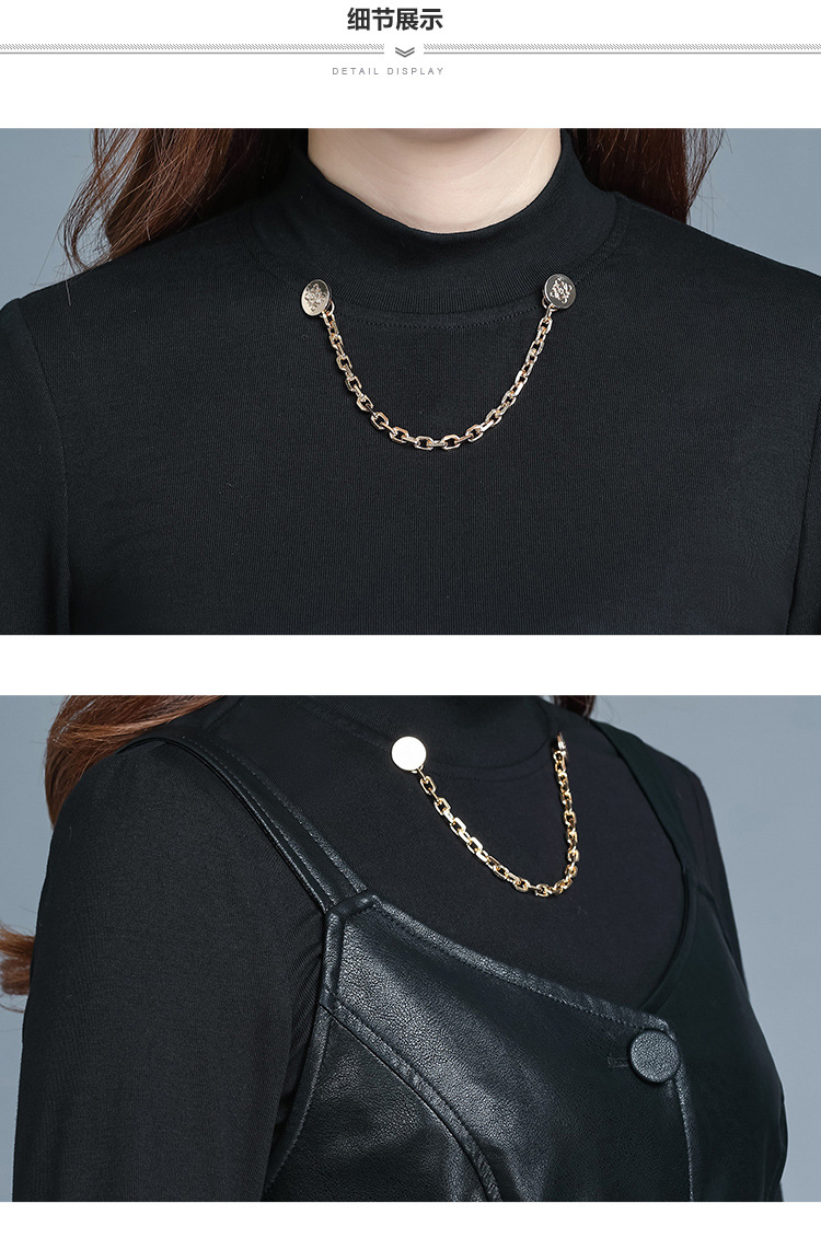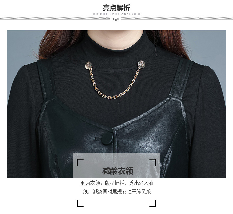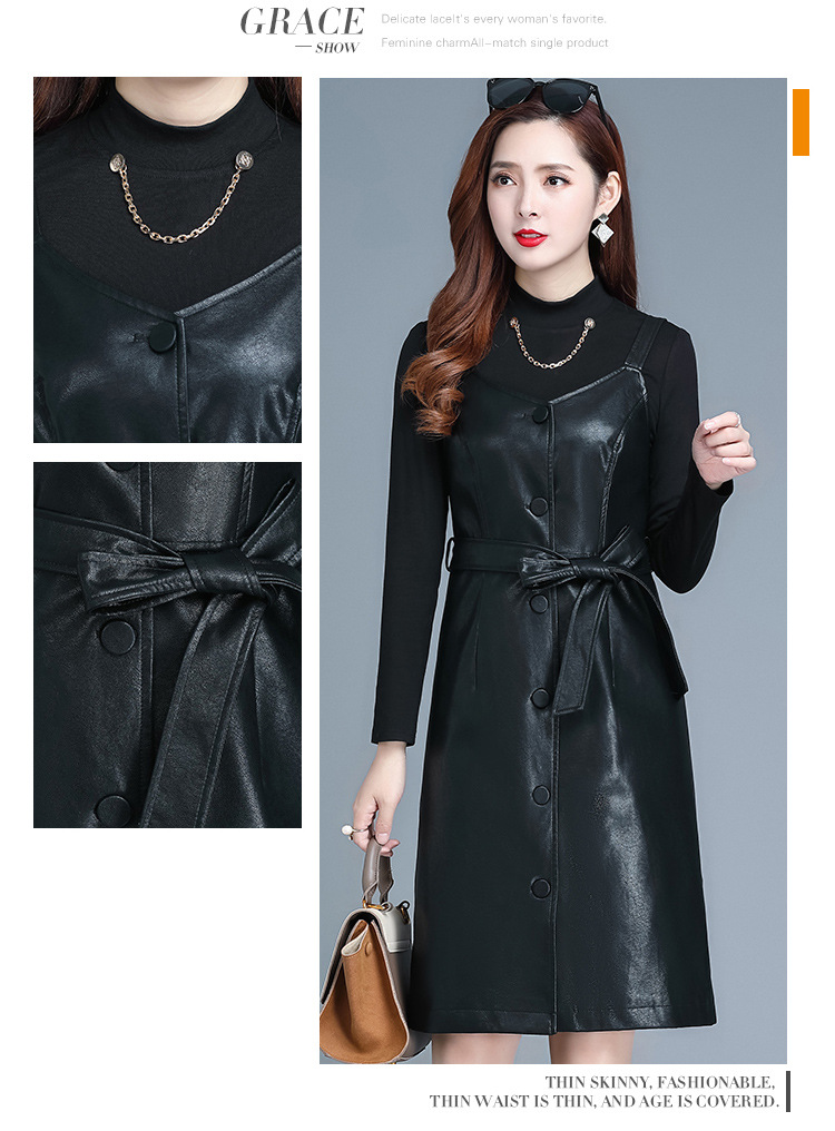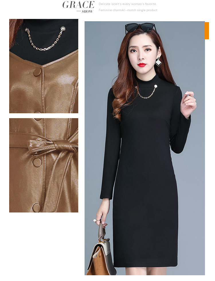 QYM-ZQ-ZSFQ2022-Y新款时尚气质中长款针织打底裙PU皮背带裙两件套