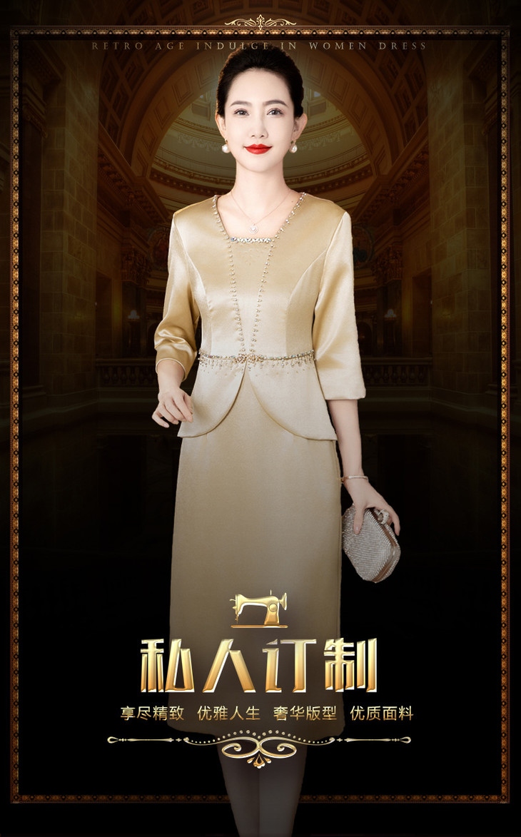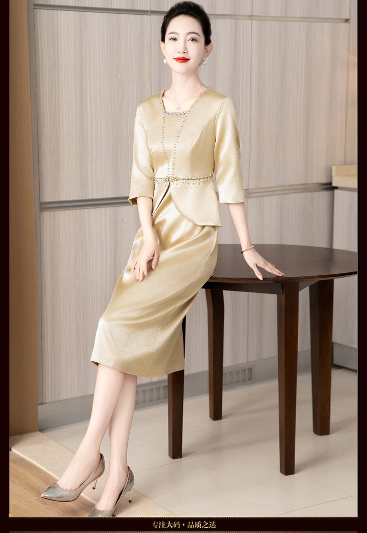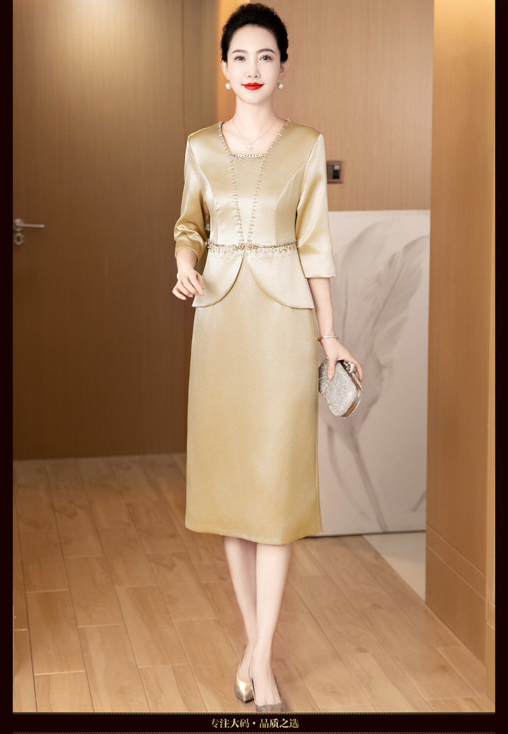 新娘妈妈时尚钉珠假两件礼服,春秋季喜婆婆宴会敬酒服LC2465
