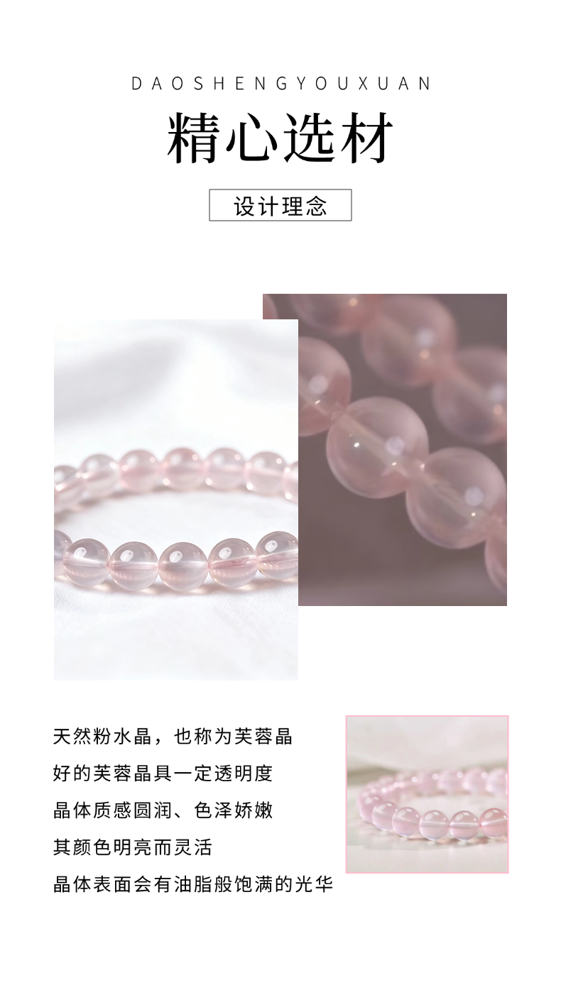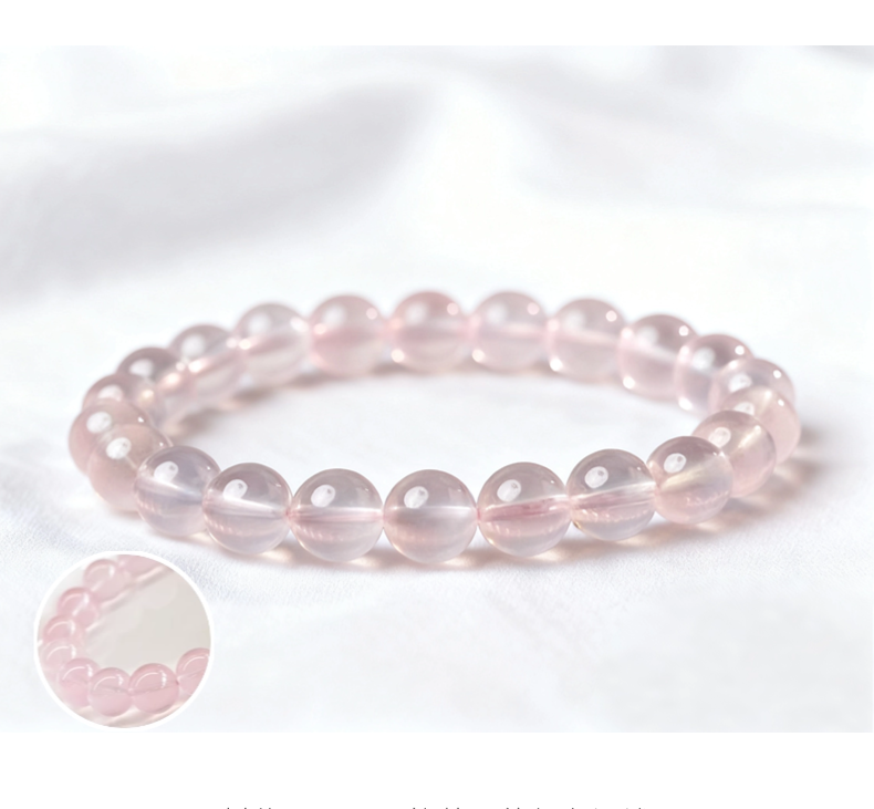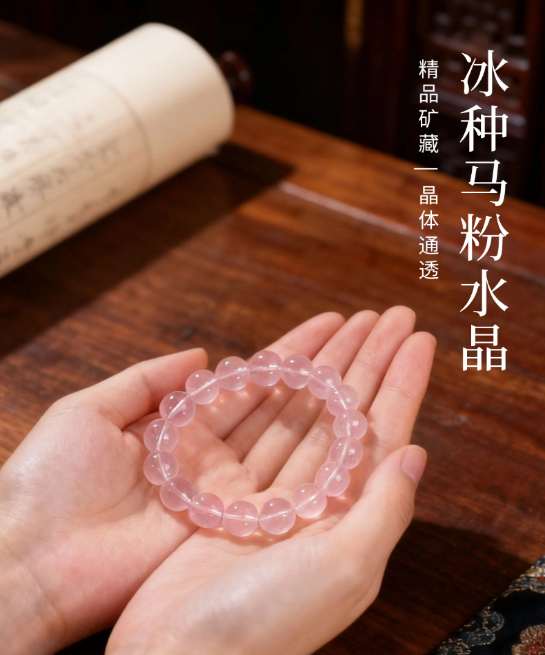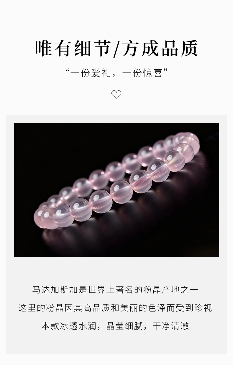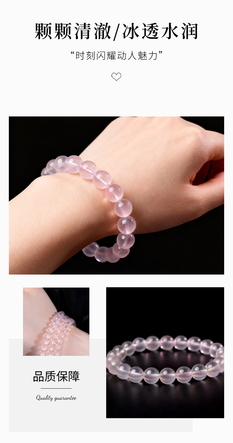 收藏级冰种马粉水晶手串 自然剔透 颗颗精选