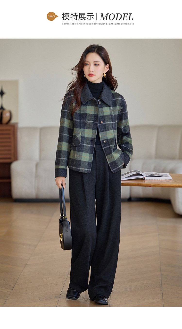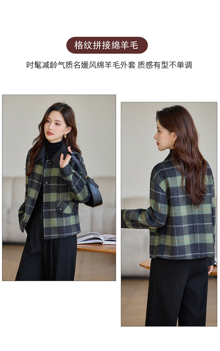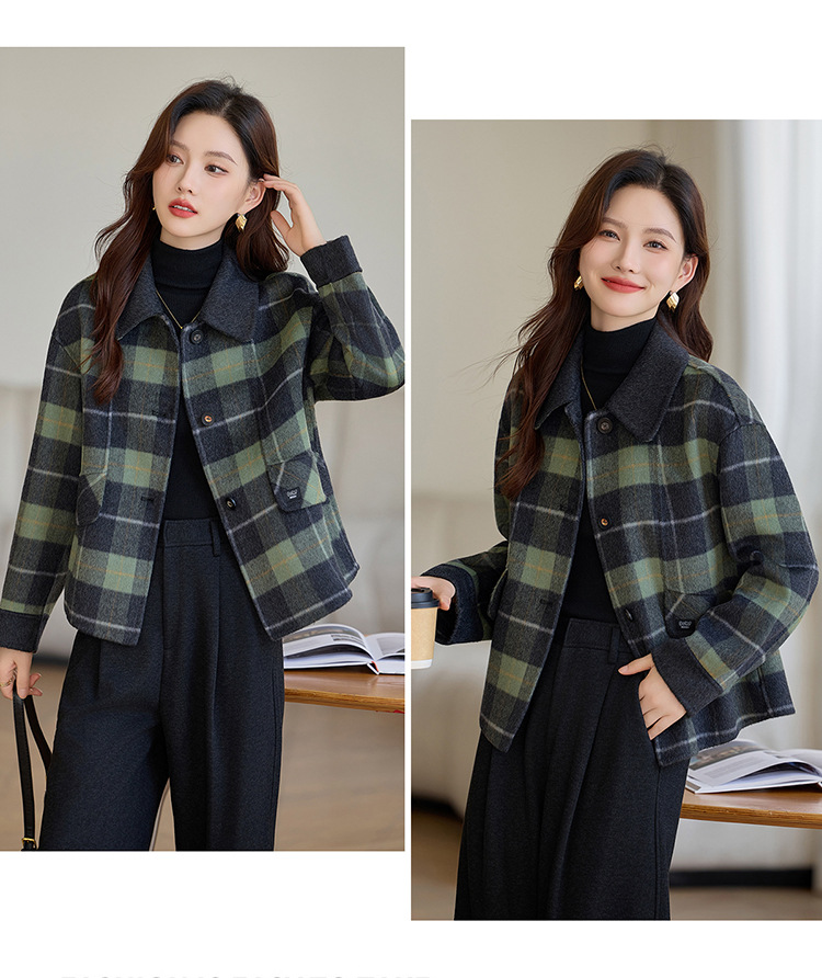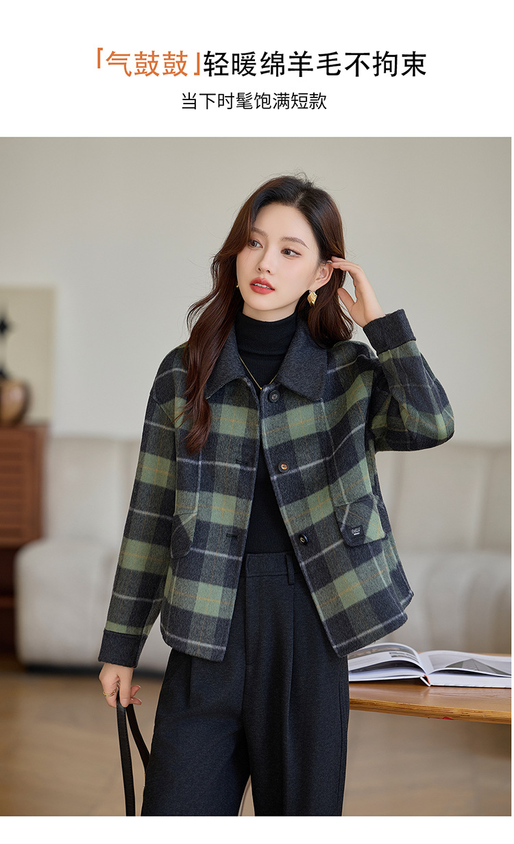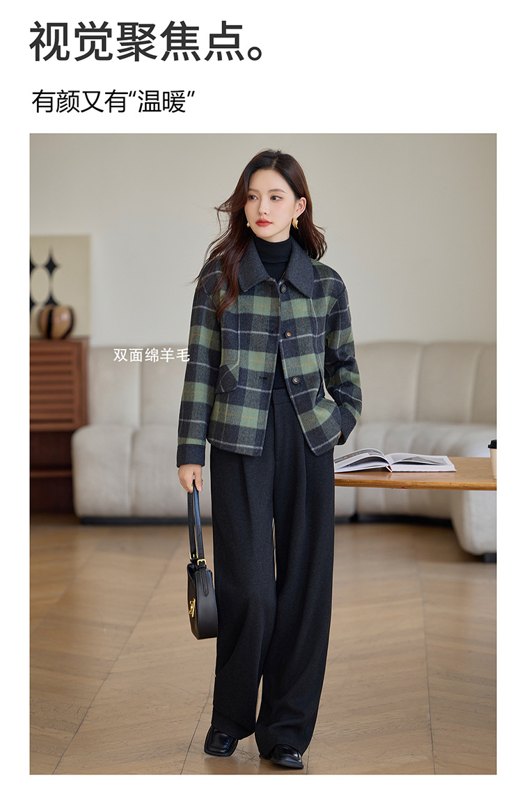 丁摩 羊毛呢外套女新款流行爆款秋冬小香风短款双面呢羊毛大衣5ZF-6658