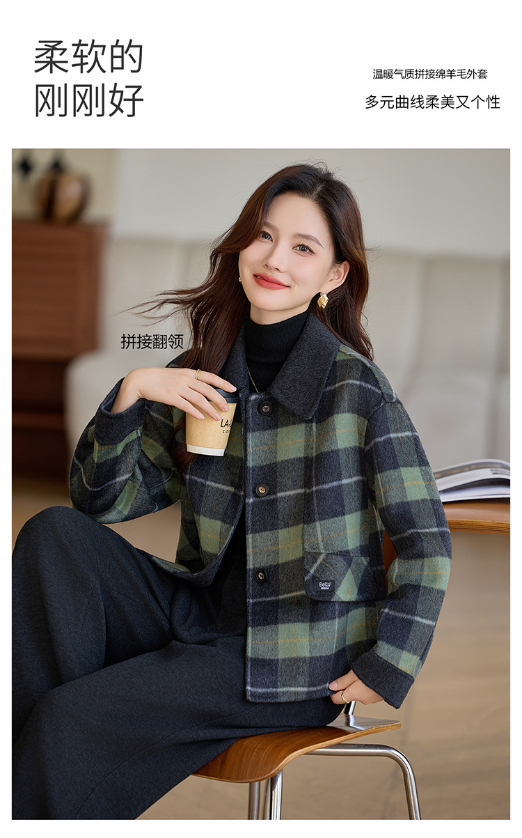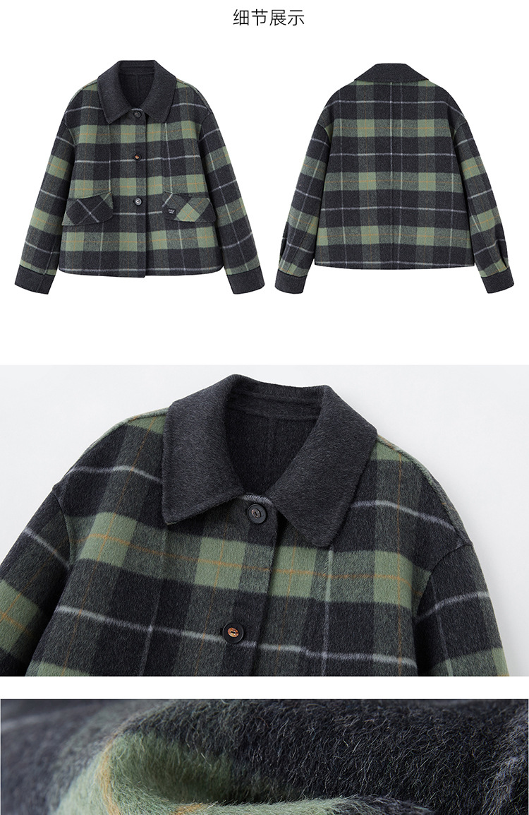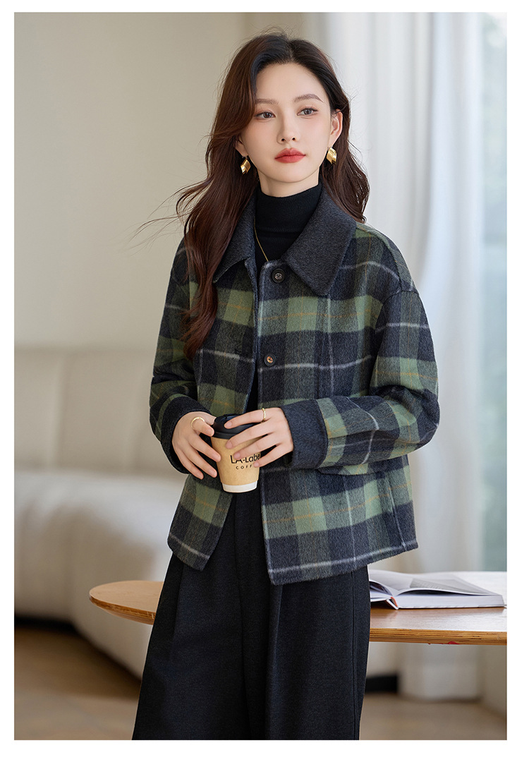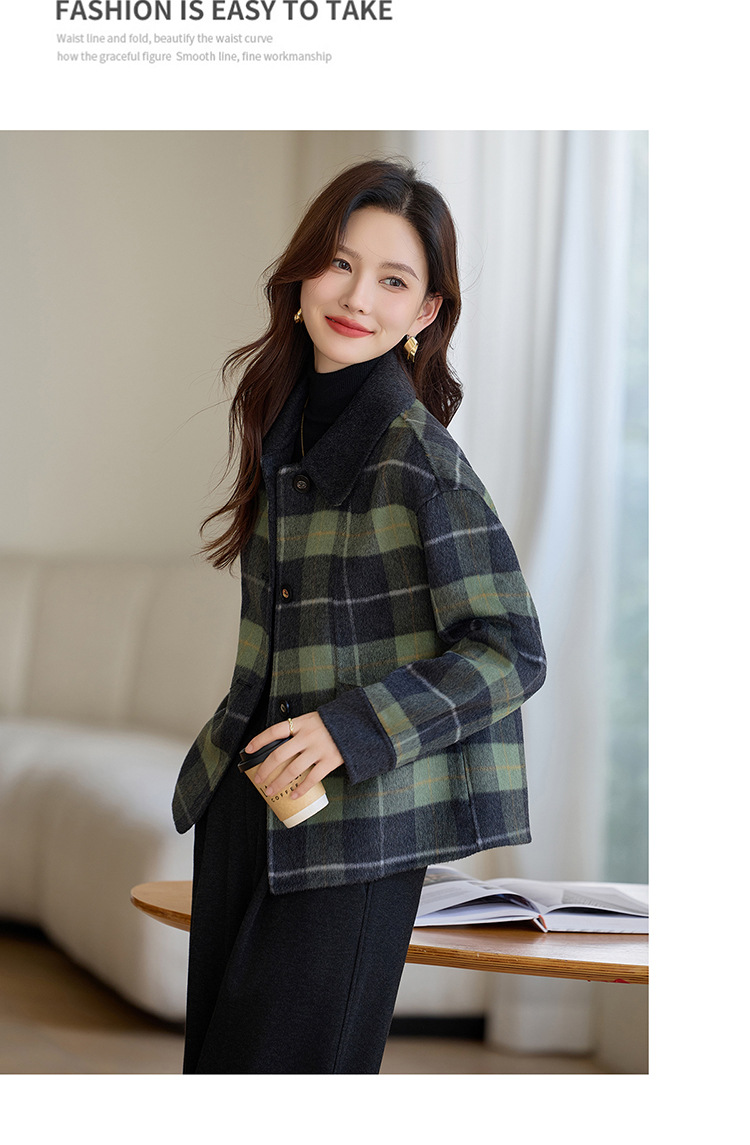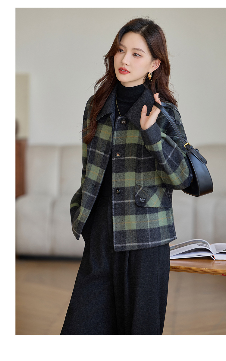 丁摩 羊毛呢外套女新款流行爆款秋冬小香风短款双面呢羊毛大衣5ZF-6658