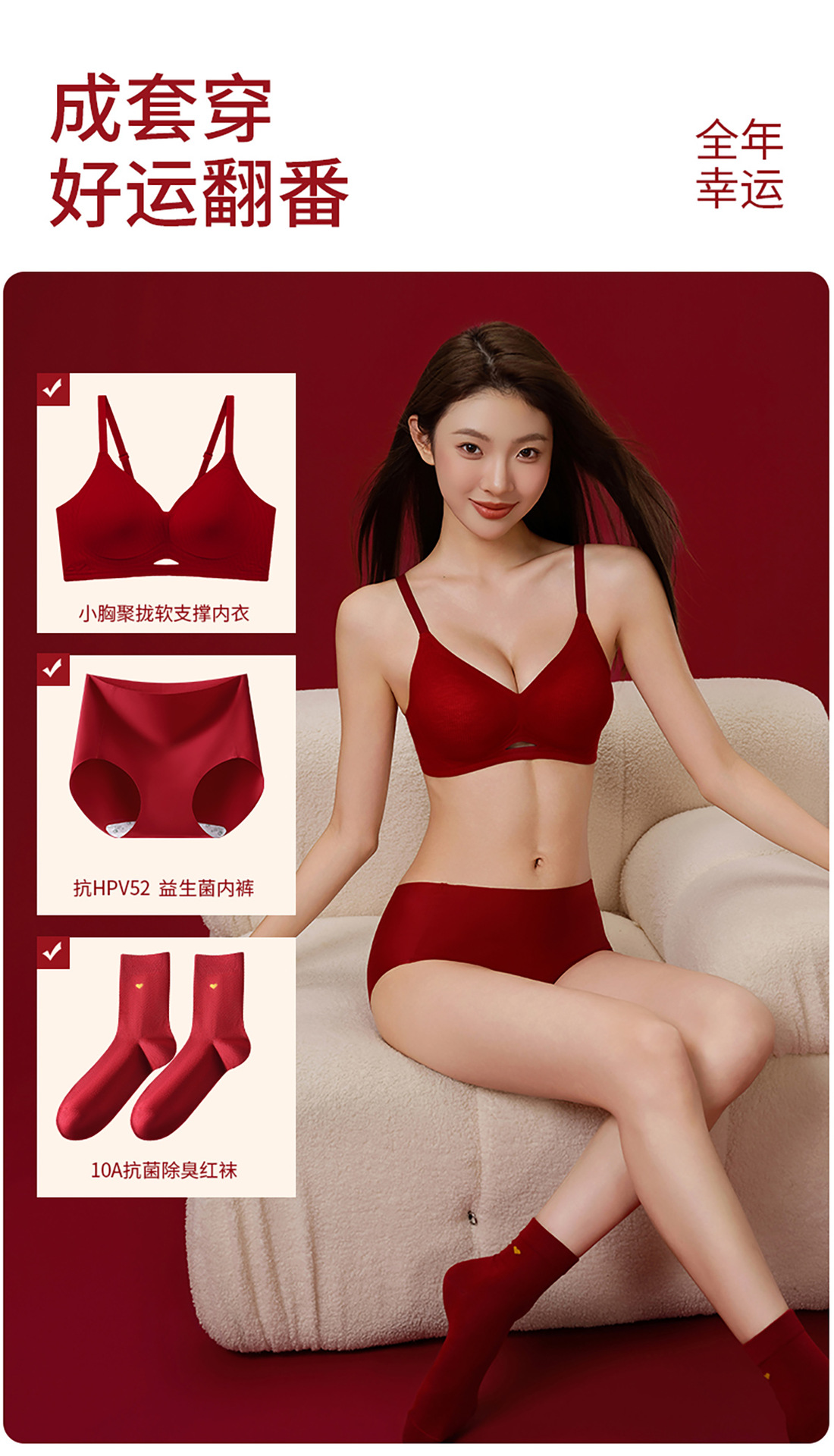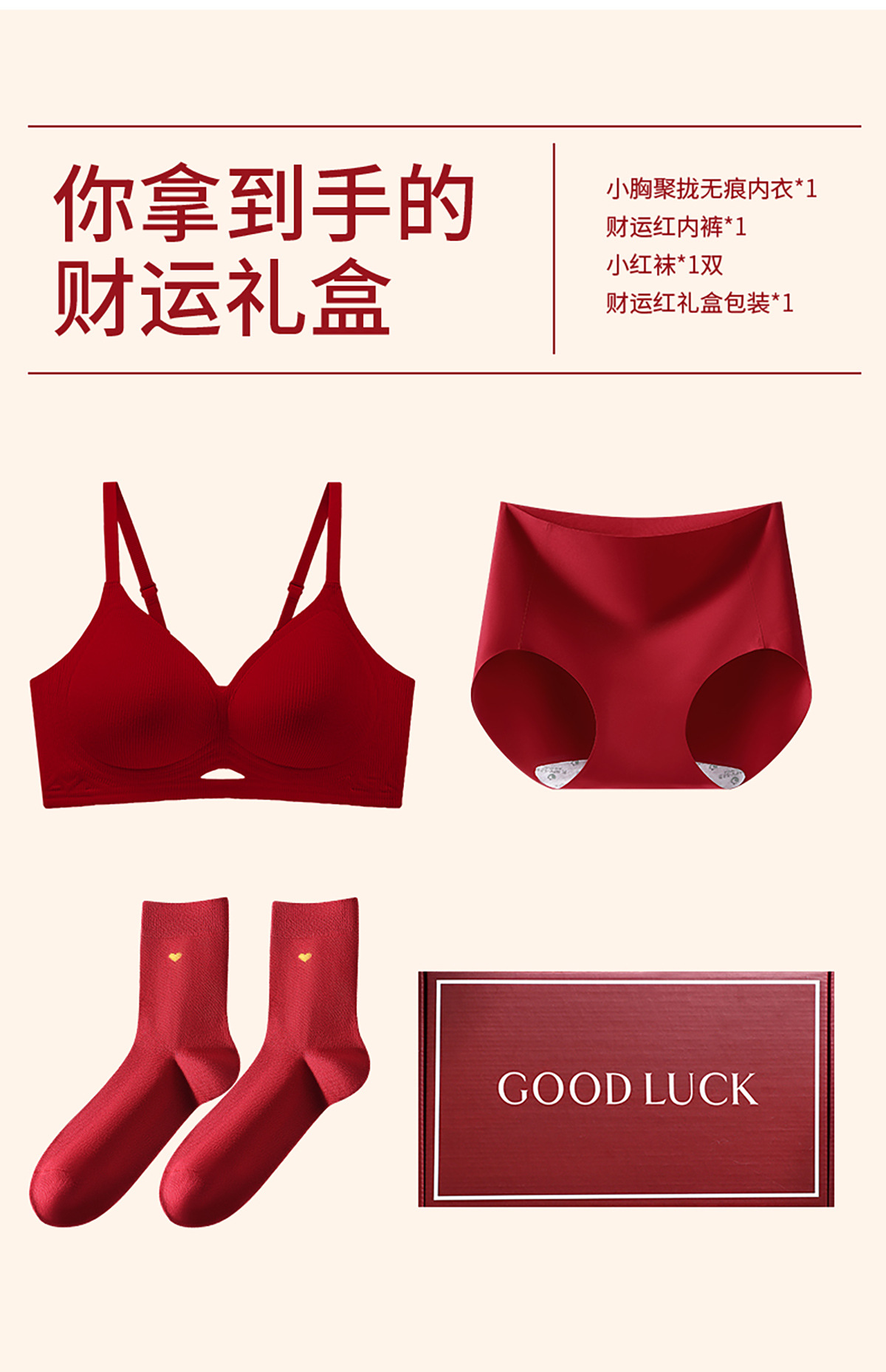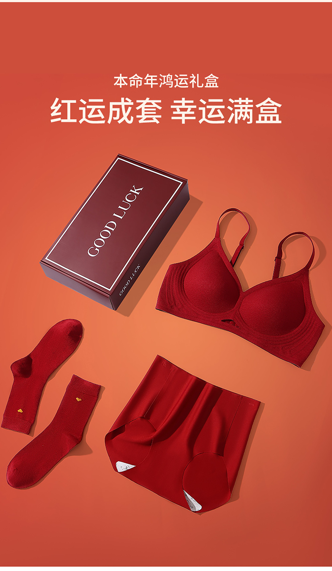 本命年鸿运礼盒【舒适承托圆挺有型❗️亲肤细腻顺滑】草本邂逅红色内衣结婚文胸内裤喜袜礼盒新娘喜庆女士内衣套装。jb