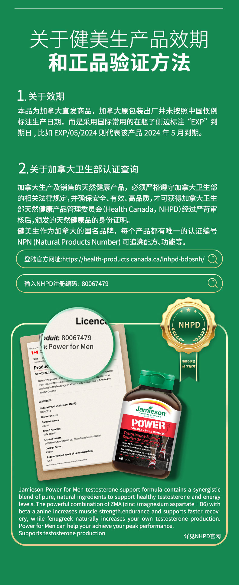 jamieson健美生男士能量片60片睾丸素补睾丸激发男士能量