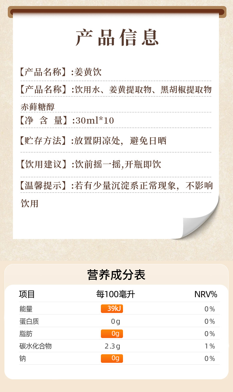 姜黄饮 | 10瓶/盒 姜黄提取物 植物饮品