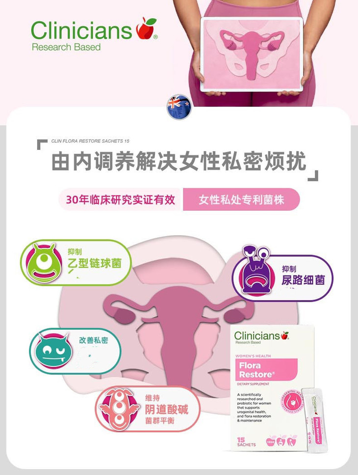 现货~科立纯Clinicians女性妇科益生菌粉胶囊/盒