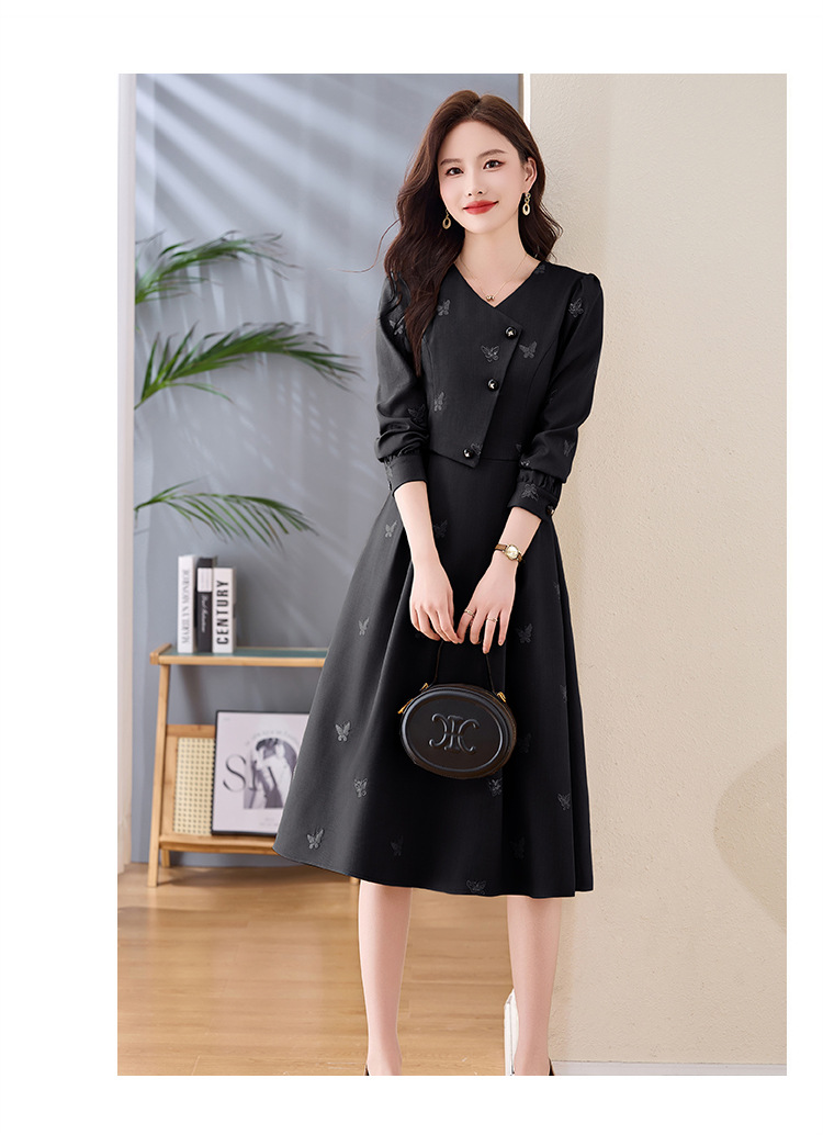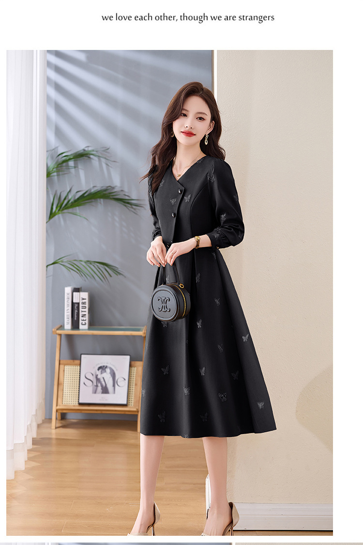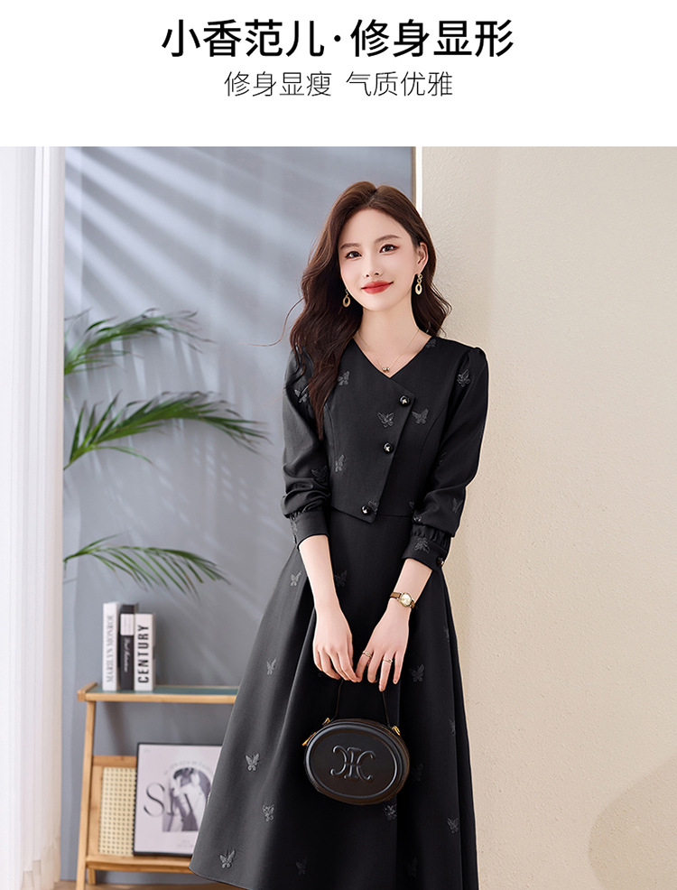 HR-LSNY2554名媛高级感穿搭裙子女装2025新款春秋装中长款减龄大衣内搭连衣裙