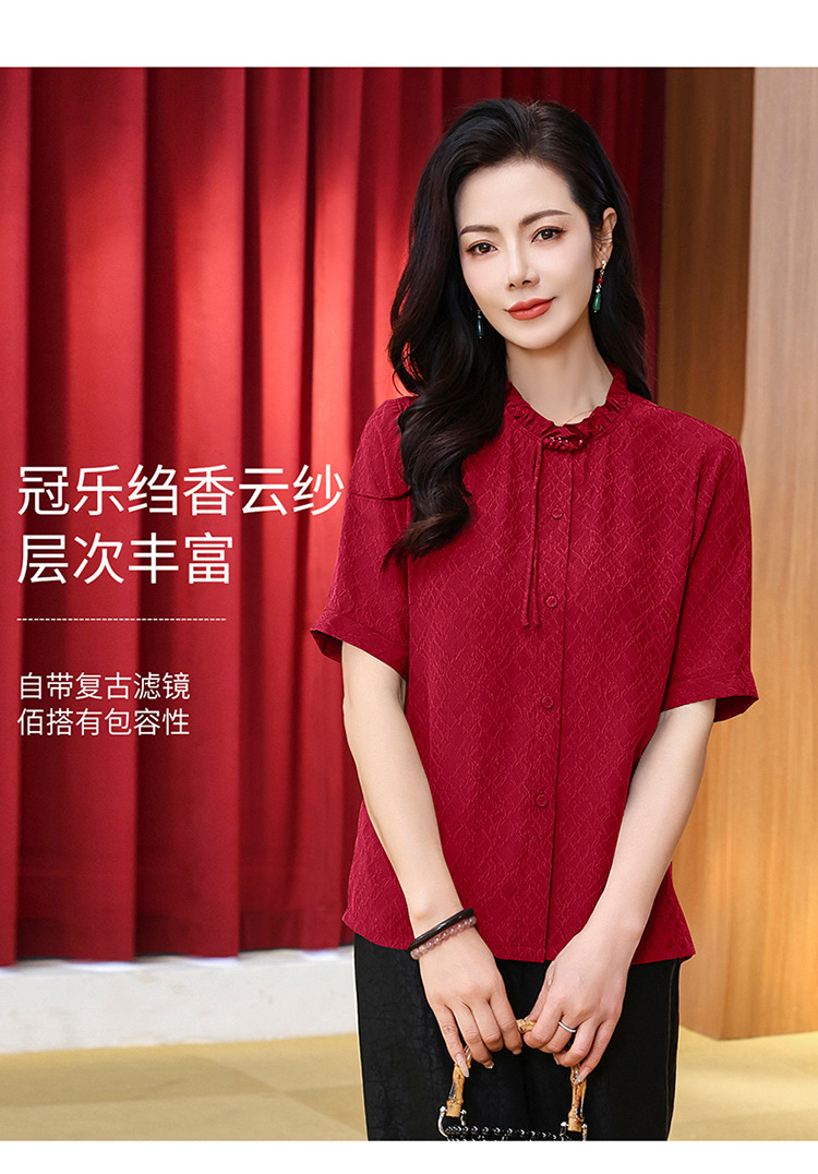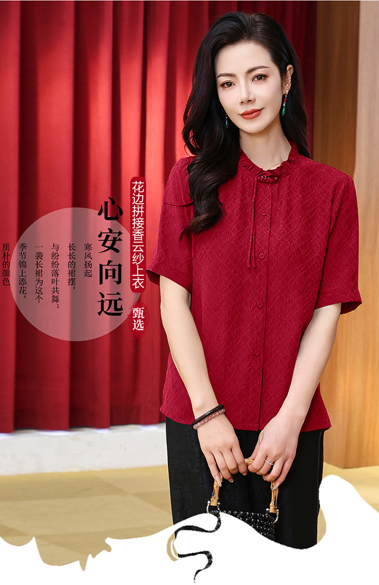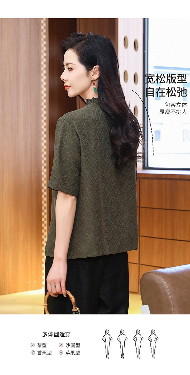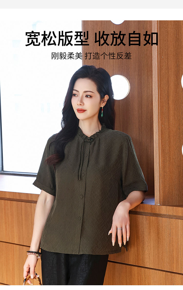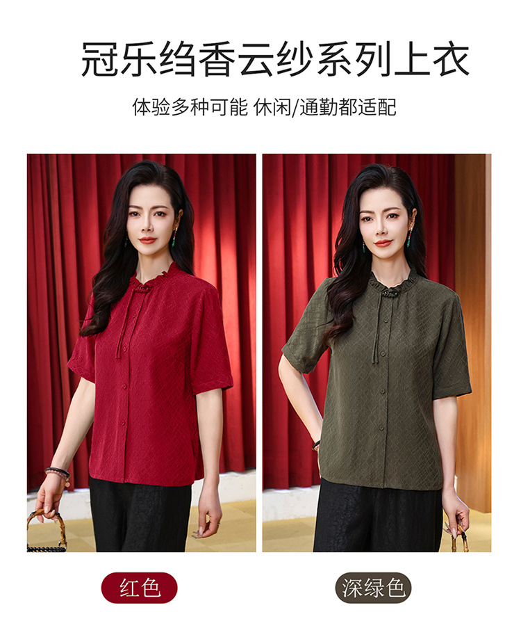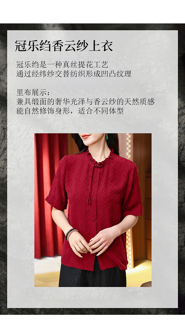 LS-LX2826冠乐绉香云纱上衣女2025夏装新款新中式短袖阔太太桑蚕丝真丝衬衫