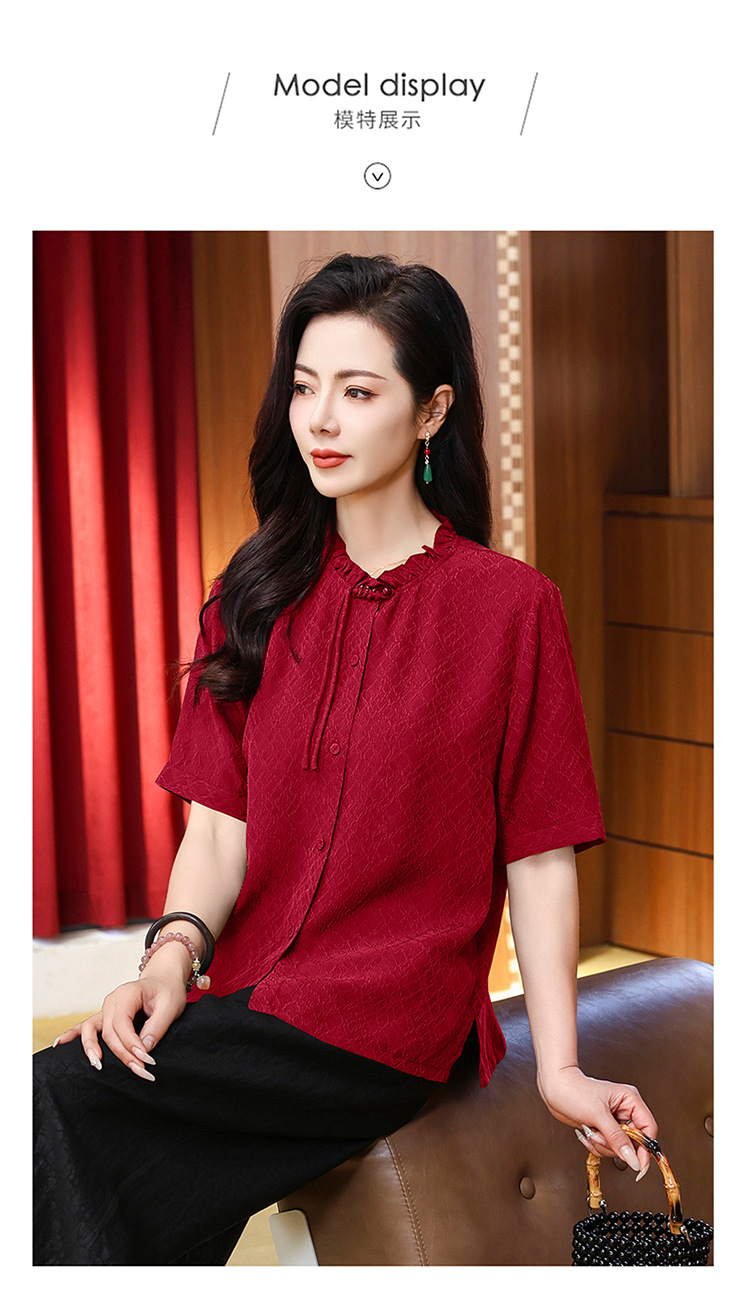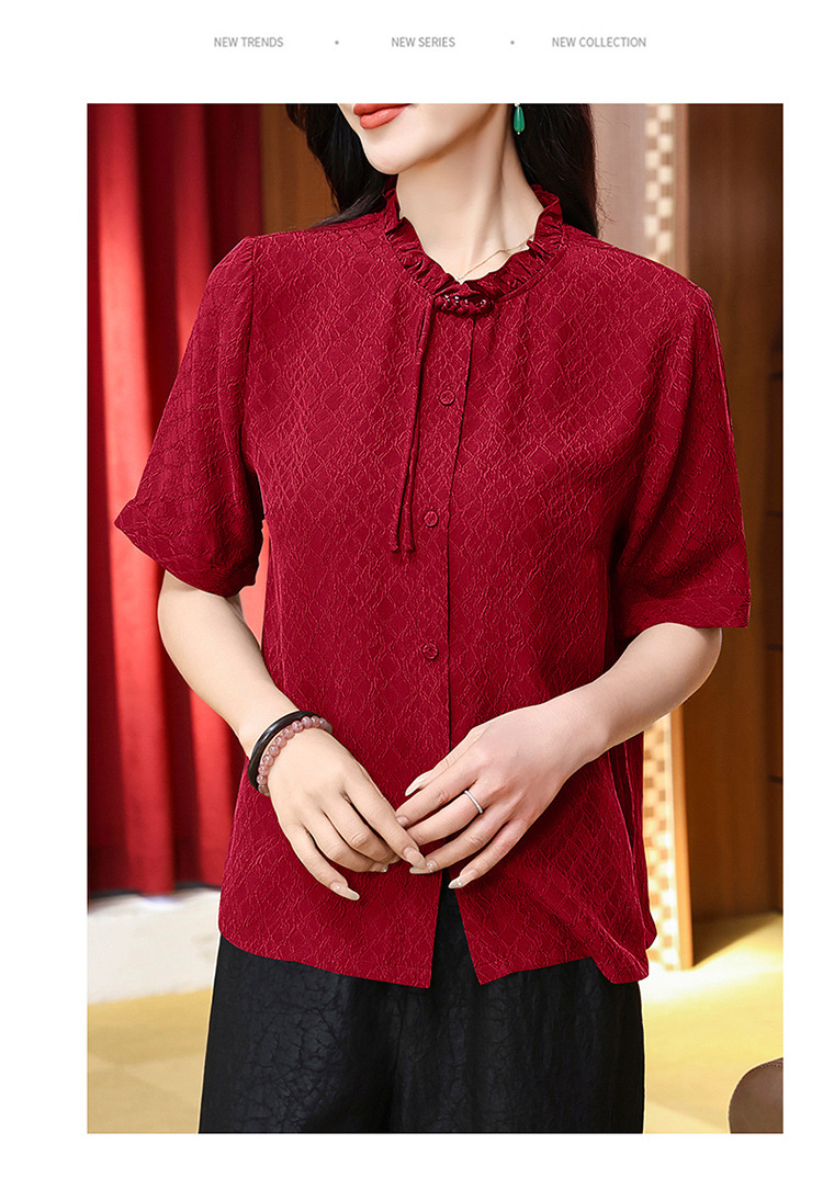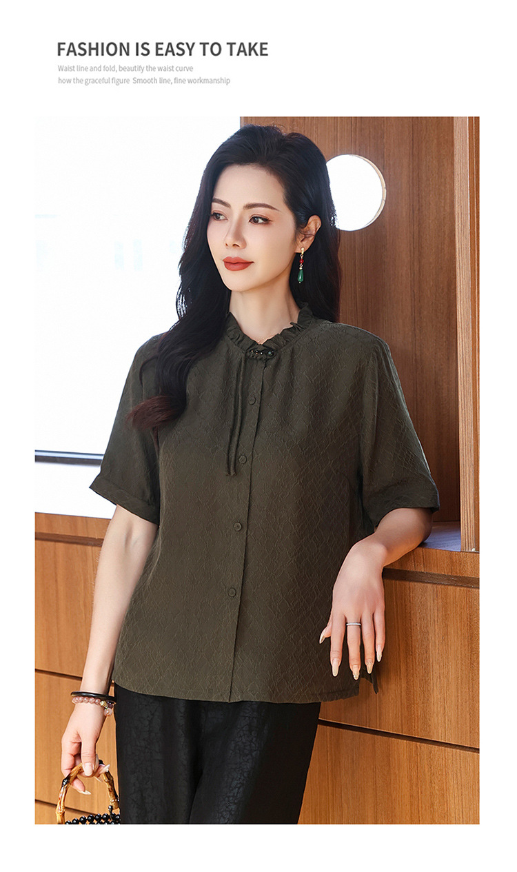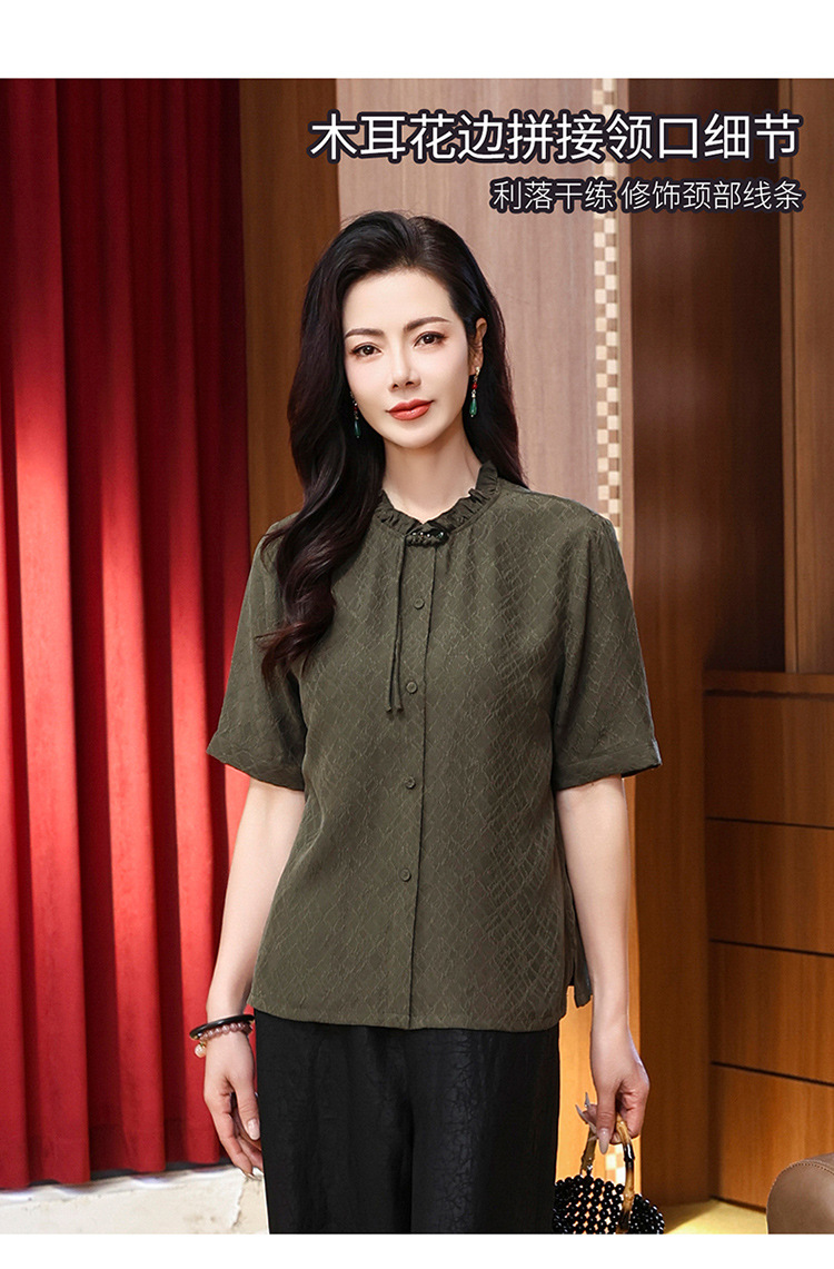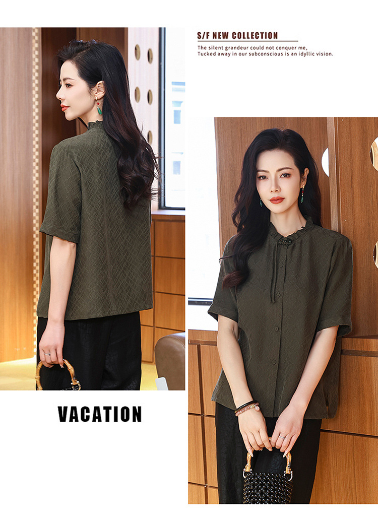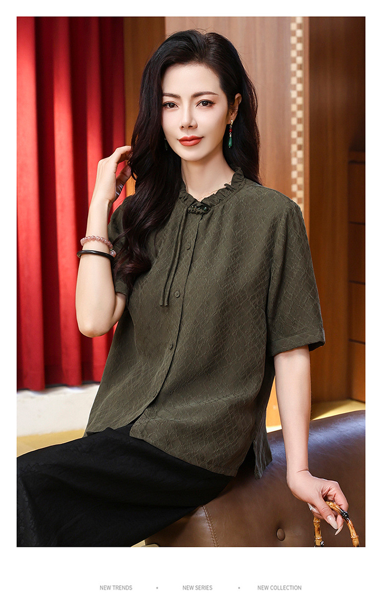 LS-LX2826冠乐绉香云纱上衣女2025夏装新款新中式短袖阔太太桑蚕丝真丝衬衫