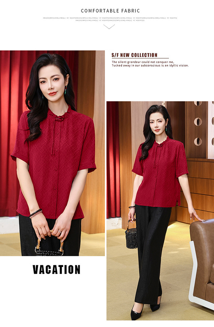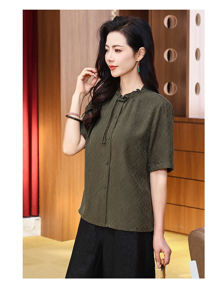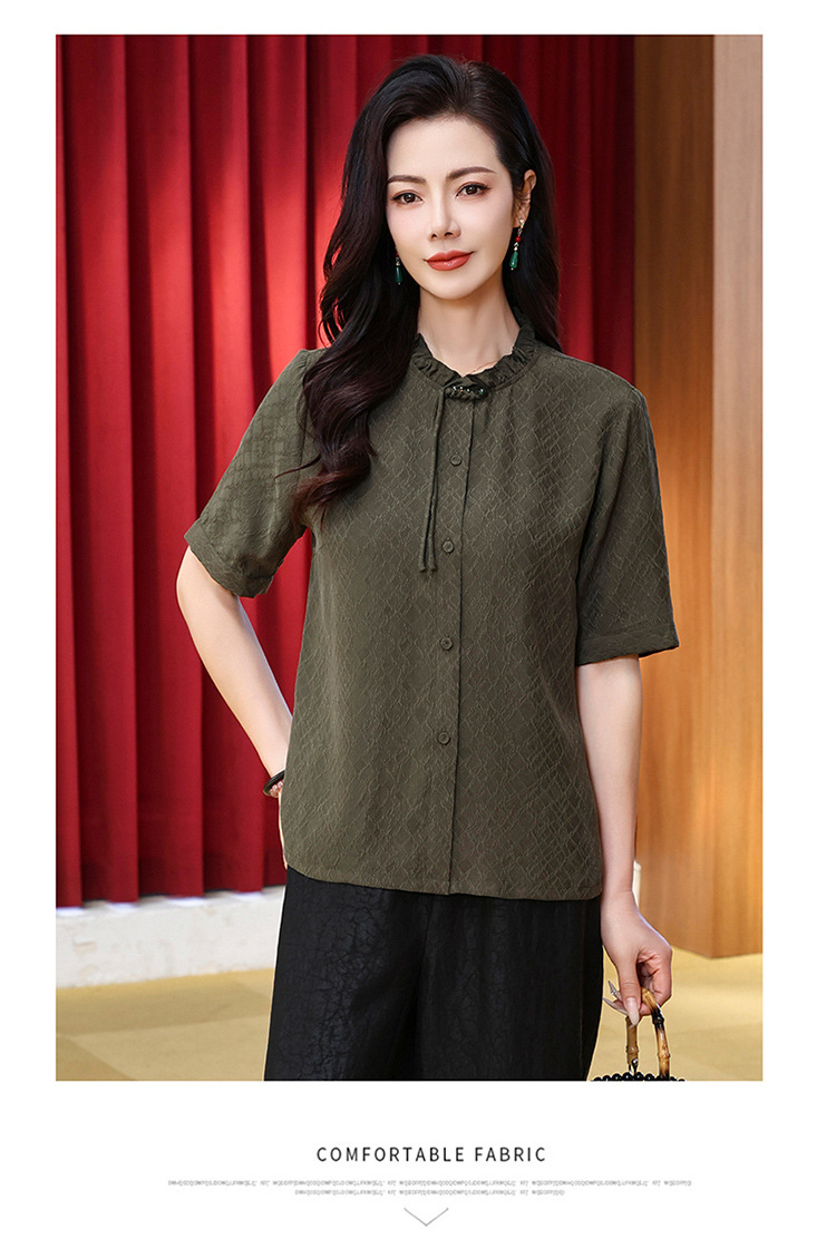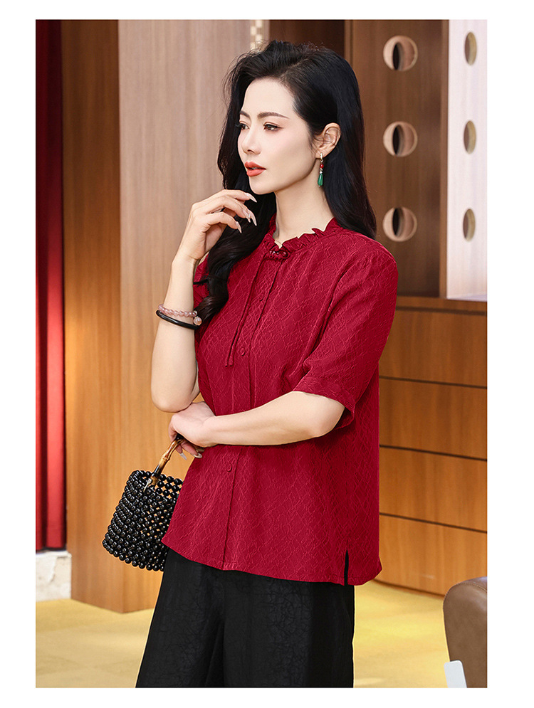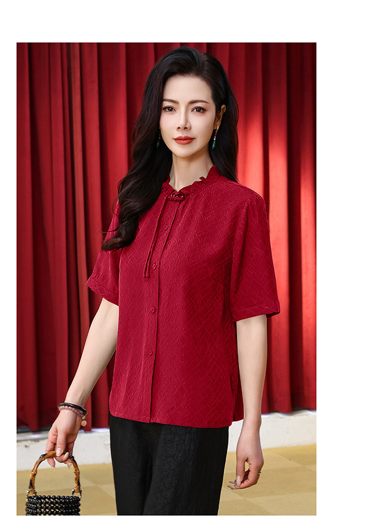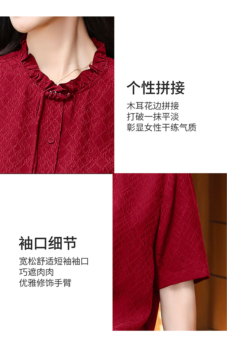 LS-LX2826冠乐绉香云纱上衣女2025夏装新款新中式短袖阔太太桑蚕丝真丝衬衫