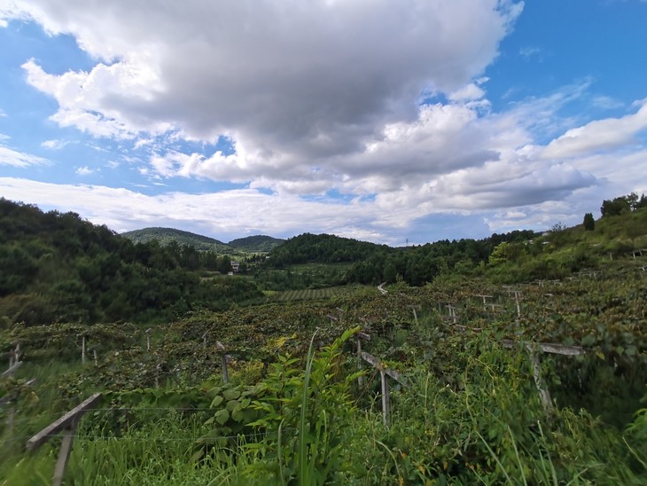 猕猴桃13年开始,用本地的野生猕猴桃育苗,次年开始一移栽,15年开始使用健康优良的贵长猕猴桃枝条嫁接,除了修枝整形外,尽量让猕猴桃自然生长。