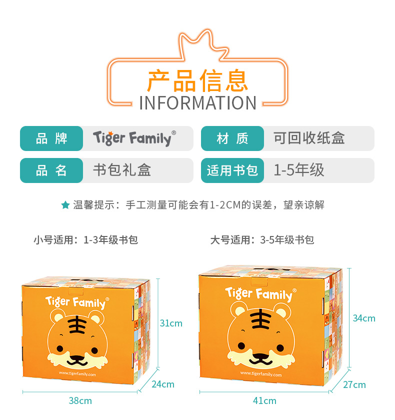 tigerfamily虎米 书包礼品盒 送礼高档体面 儿童开学礼物 可手提