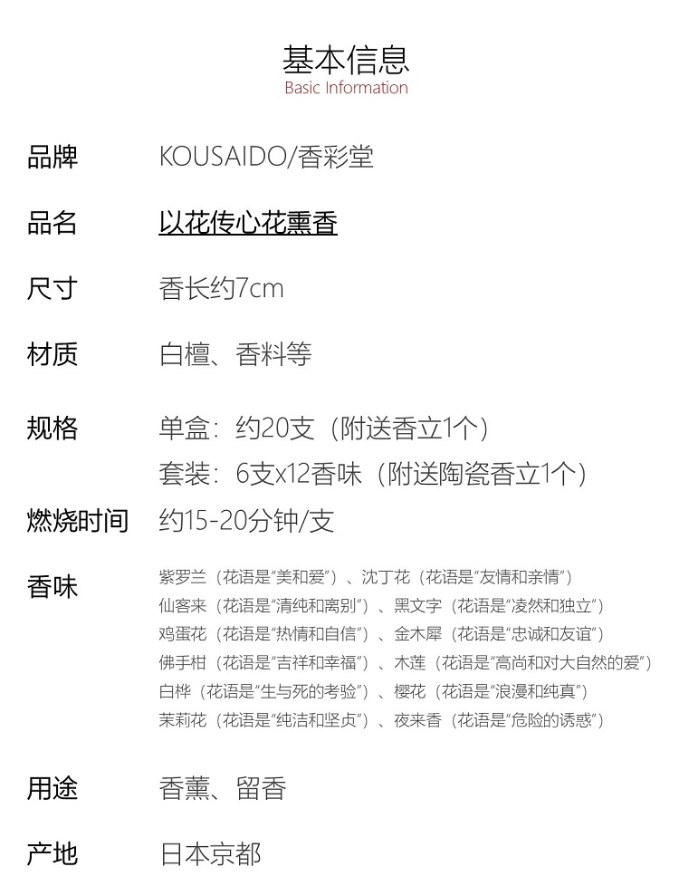 【KOUSAIDO】香彩堂花熏香系列(20支 含香立)