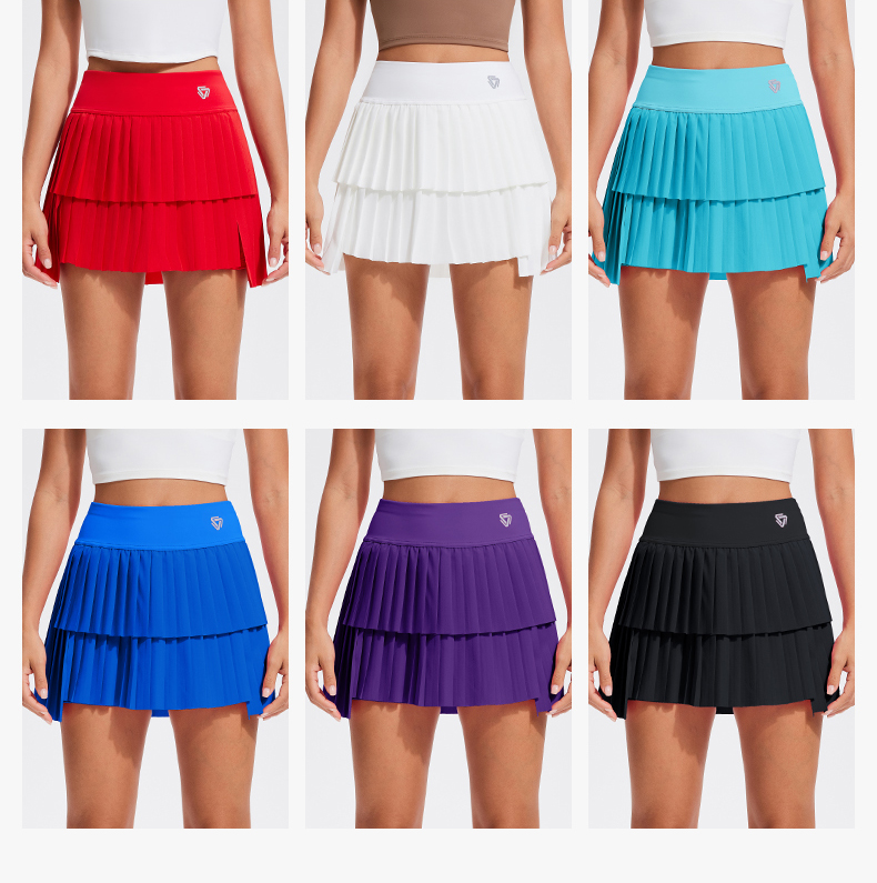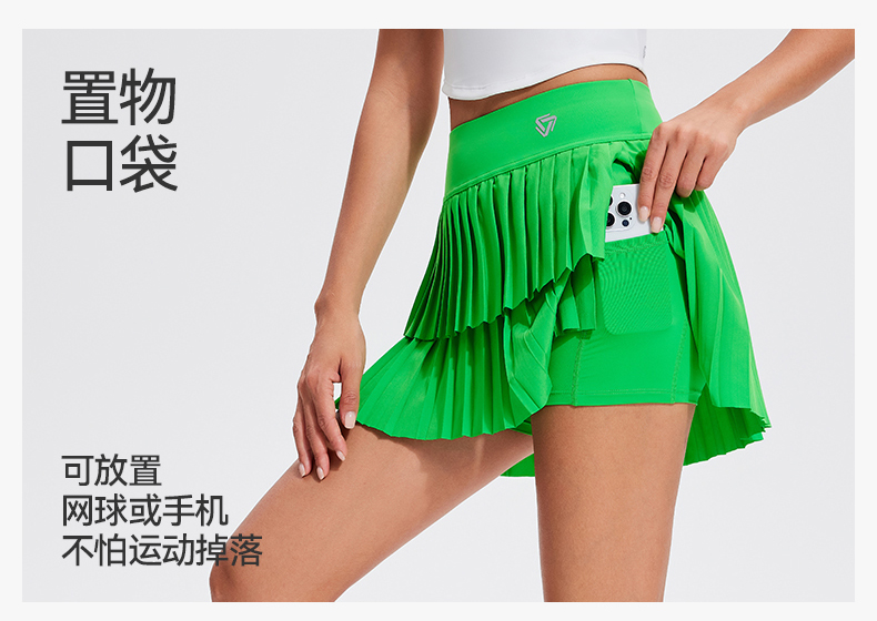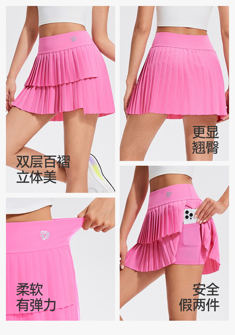 【热销】科里芙假两件速干跑步运动健身瑜伽高腰灵动百褶蛋糕裙
