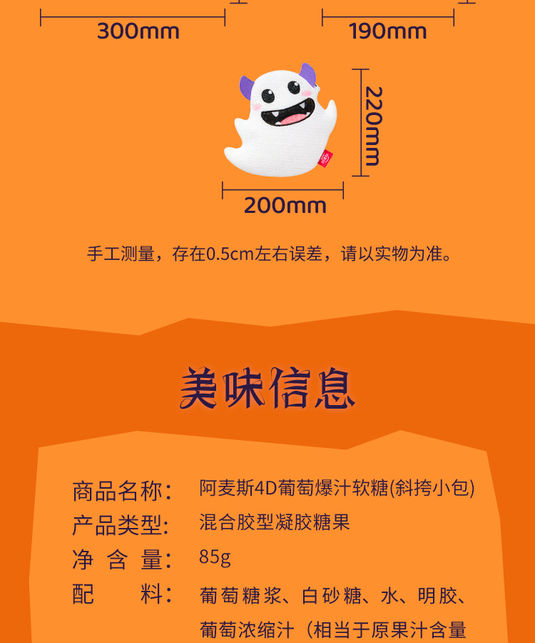 【万圣节】中国阿麦斯4D葡萄爆汁软糖(万圣节小包)85g