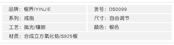YJ-DS0099925纯银戒指简约锆石手饰仿真钻戒