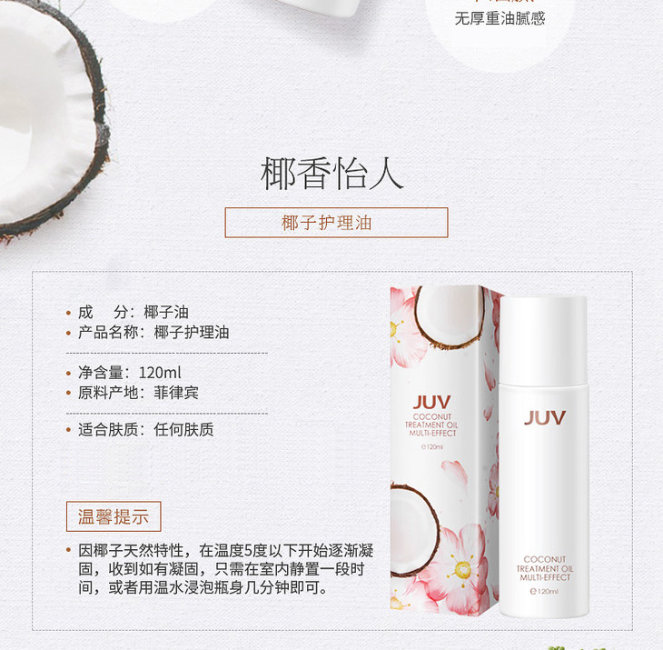 【JUV觉芙】菲律宾进口原料 椰子护理油120ml
