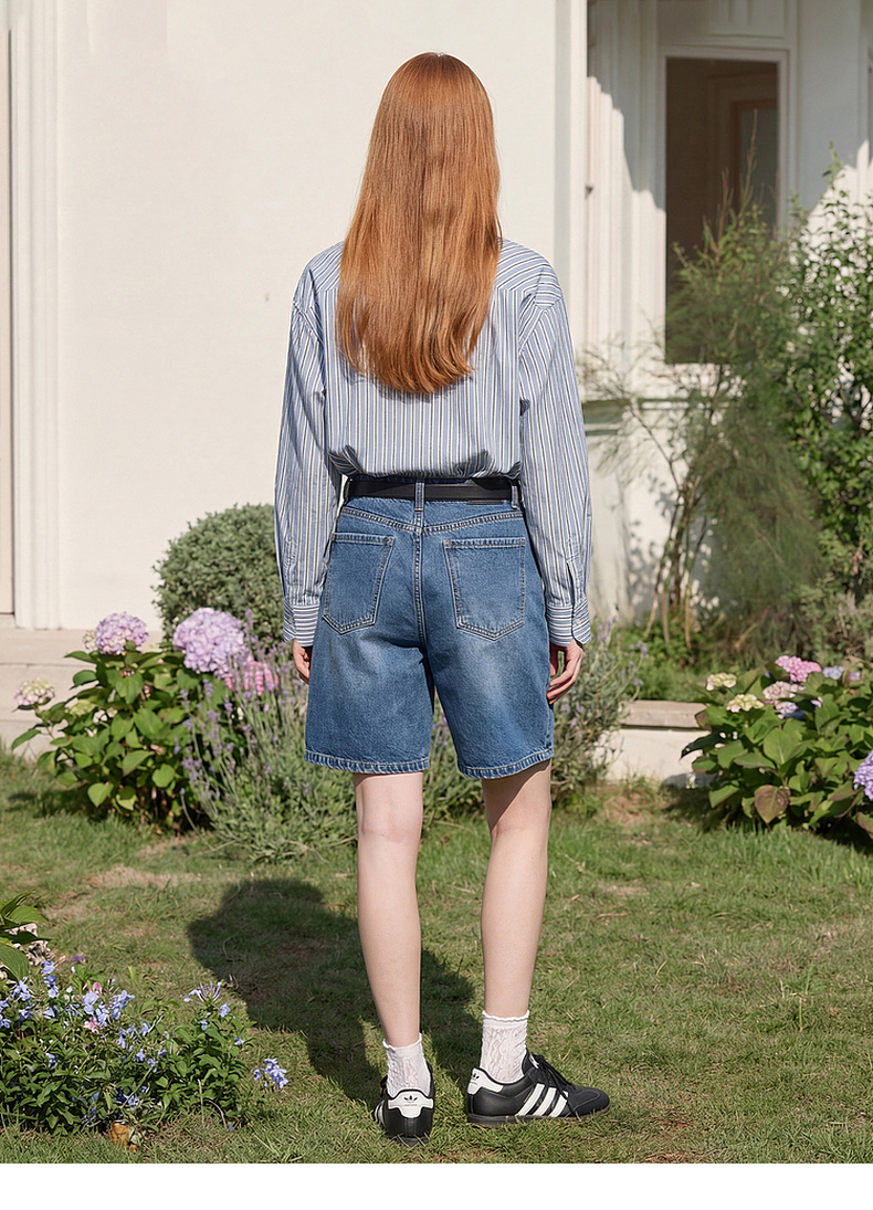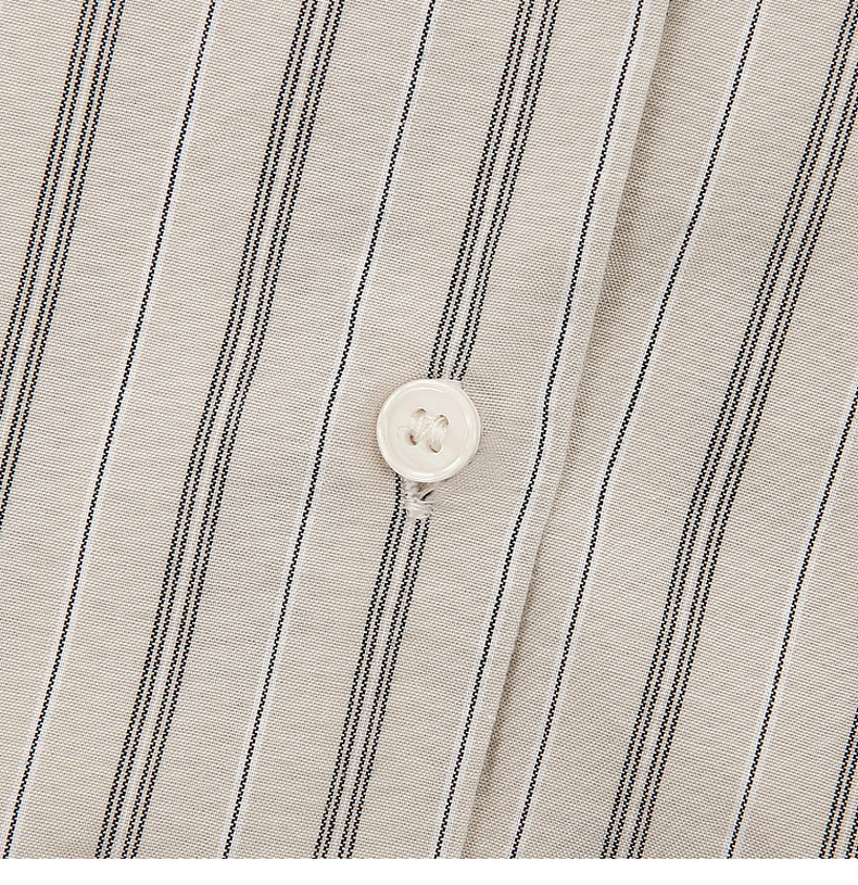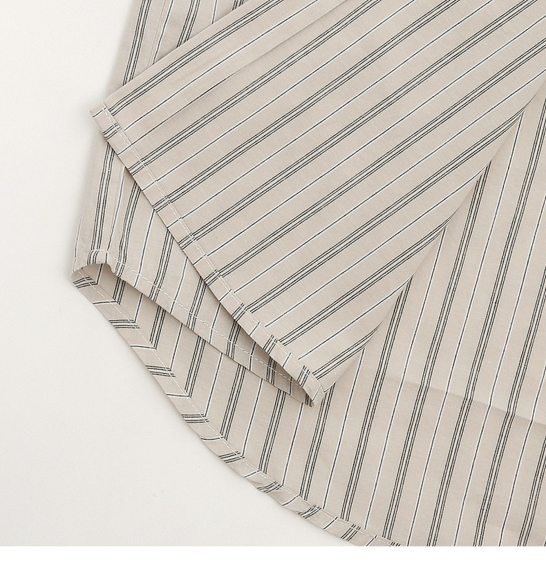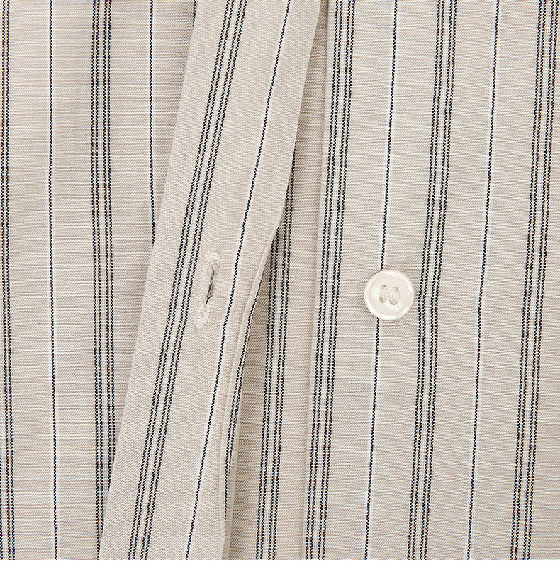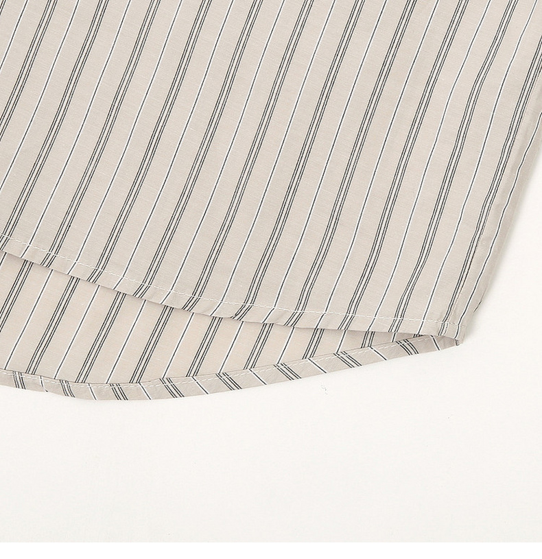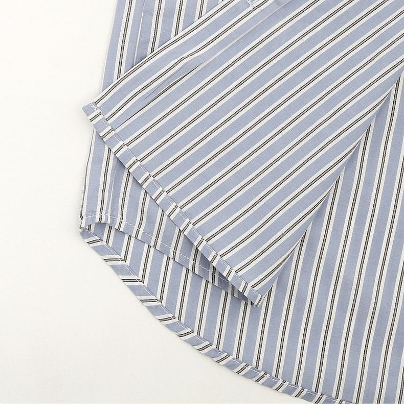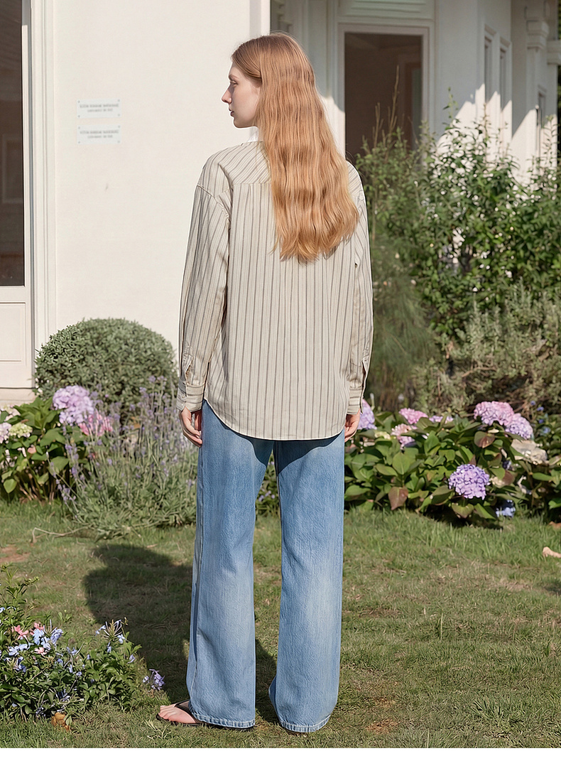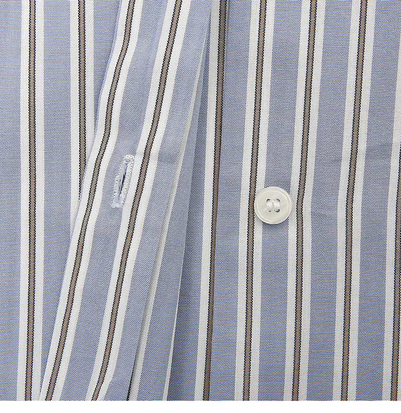 天猫同步【慵懒气质~】拉夏贝尔/La Chapelle撞色翻领竖条纹设计单口袋纯棉刺绣衬衫百搭通勤风上衣