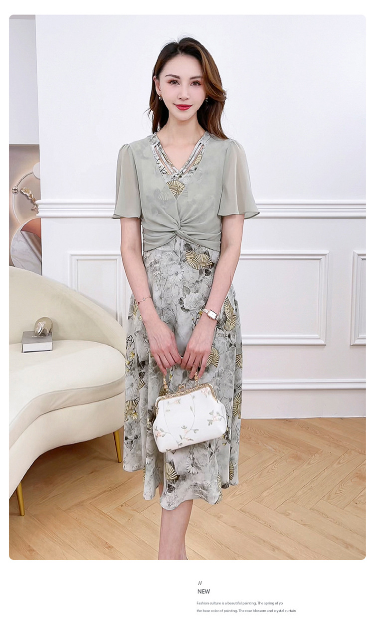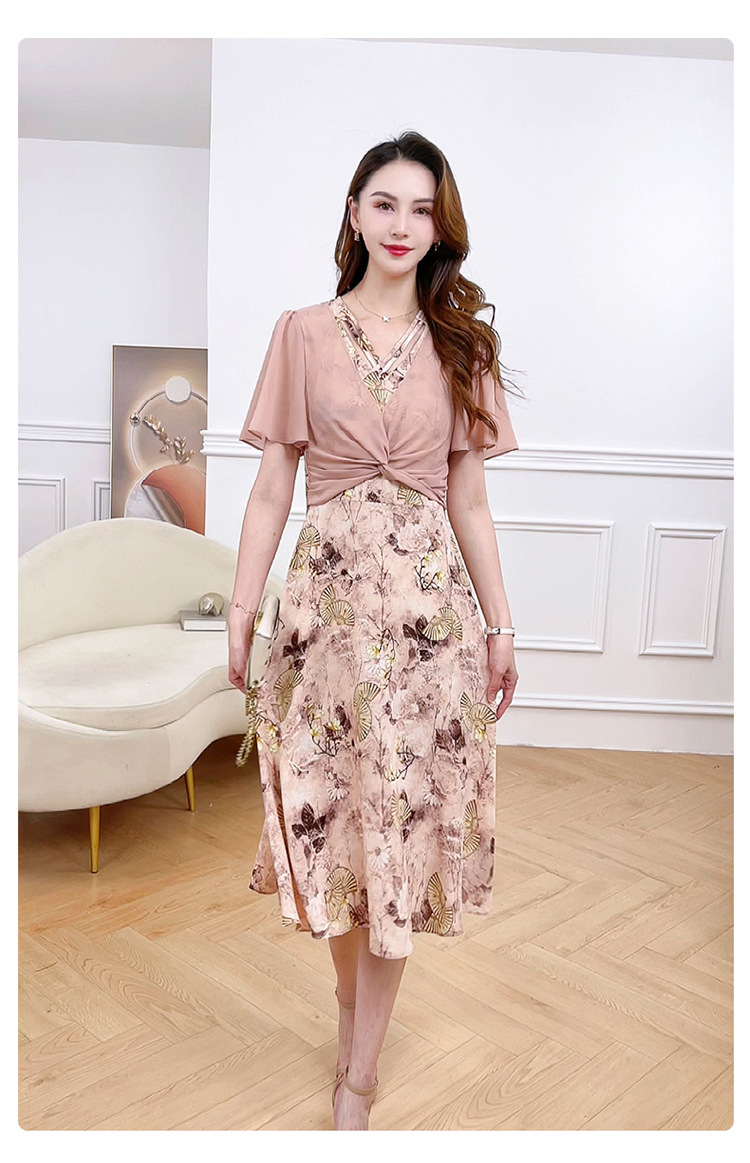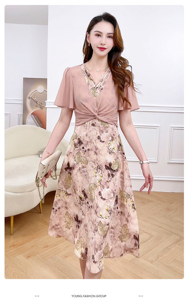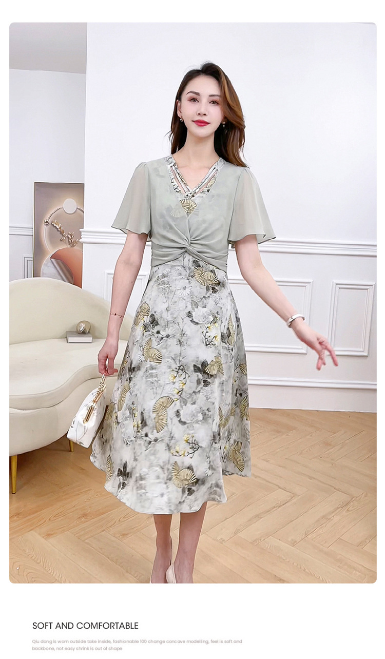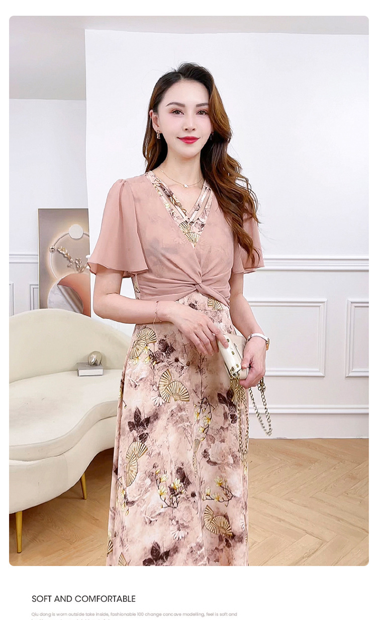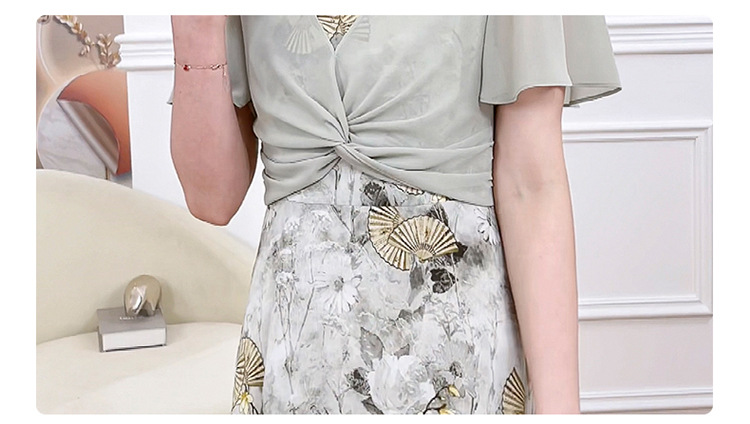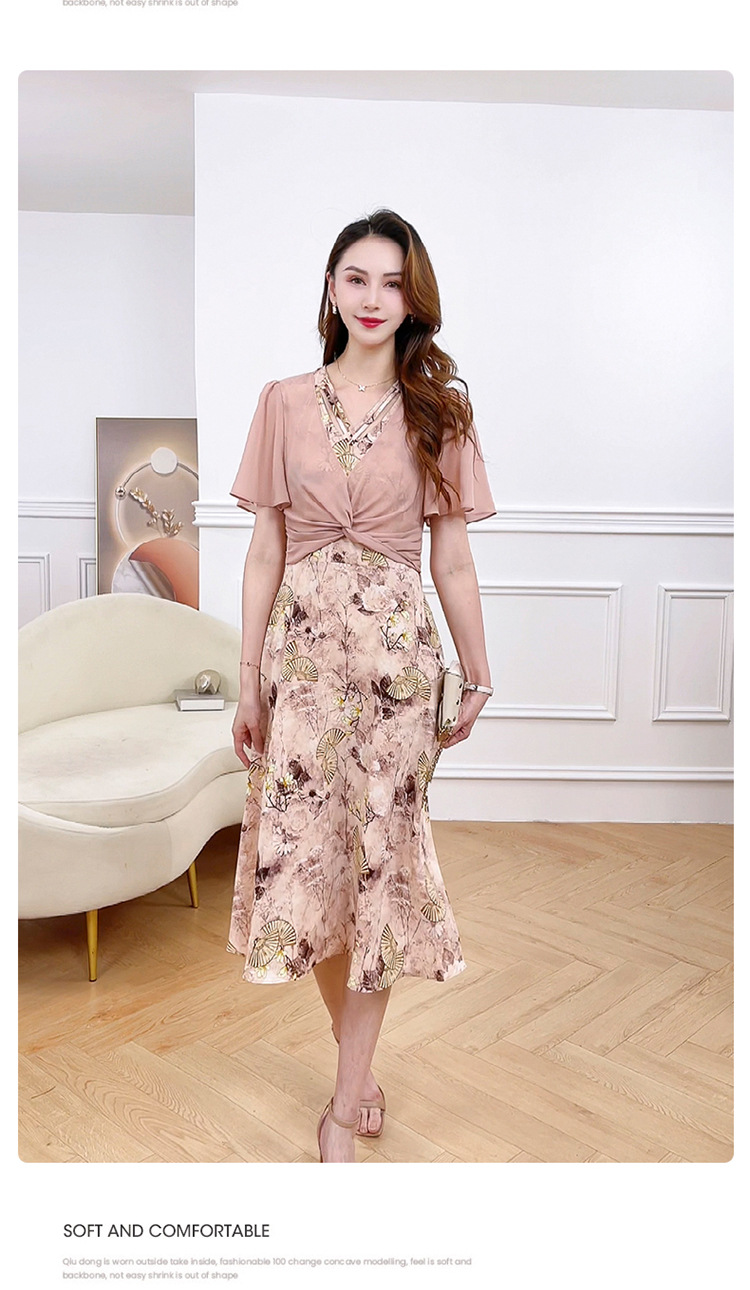 修身时尚雪纺裙,荷叶袖通勤洋气假两件连衣裙QYM-XQD-53A2449-L