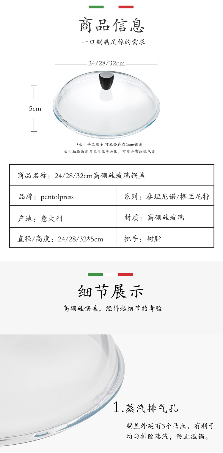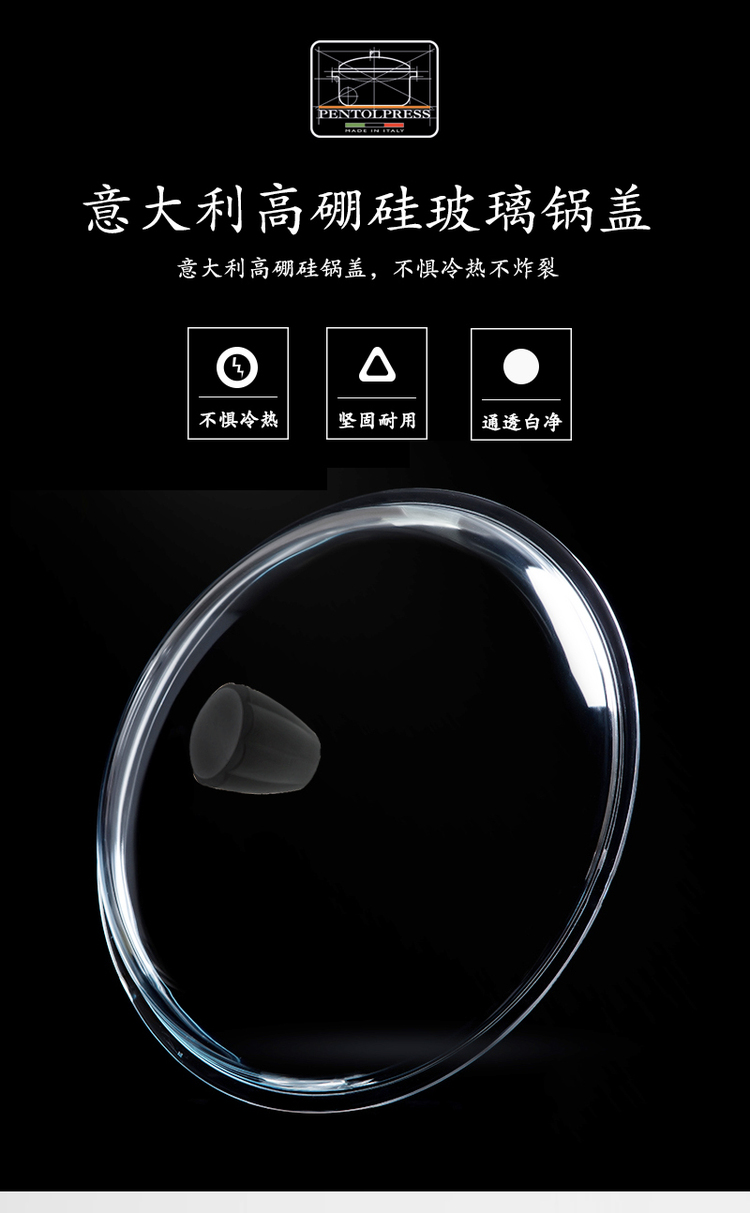 意大利PENTOLPRESS高硼硅玻璃锅盖树脂款24/28/32cm