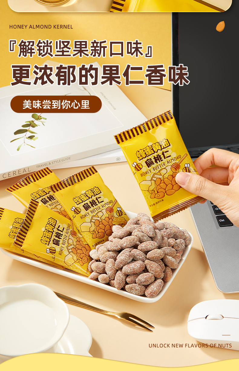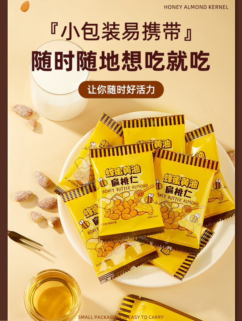 【清甜不腻,酥脆营养!】蜂蜜黄油扁桃杏仁巴旦木 汤姆农场芭蜂同款 非进口韩国坚果休闲零食-QQ