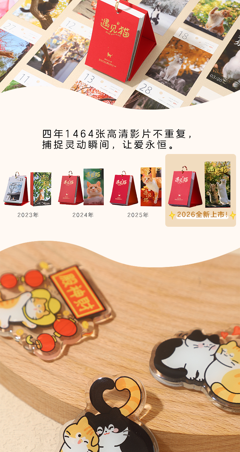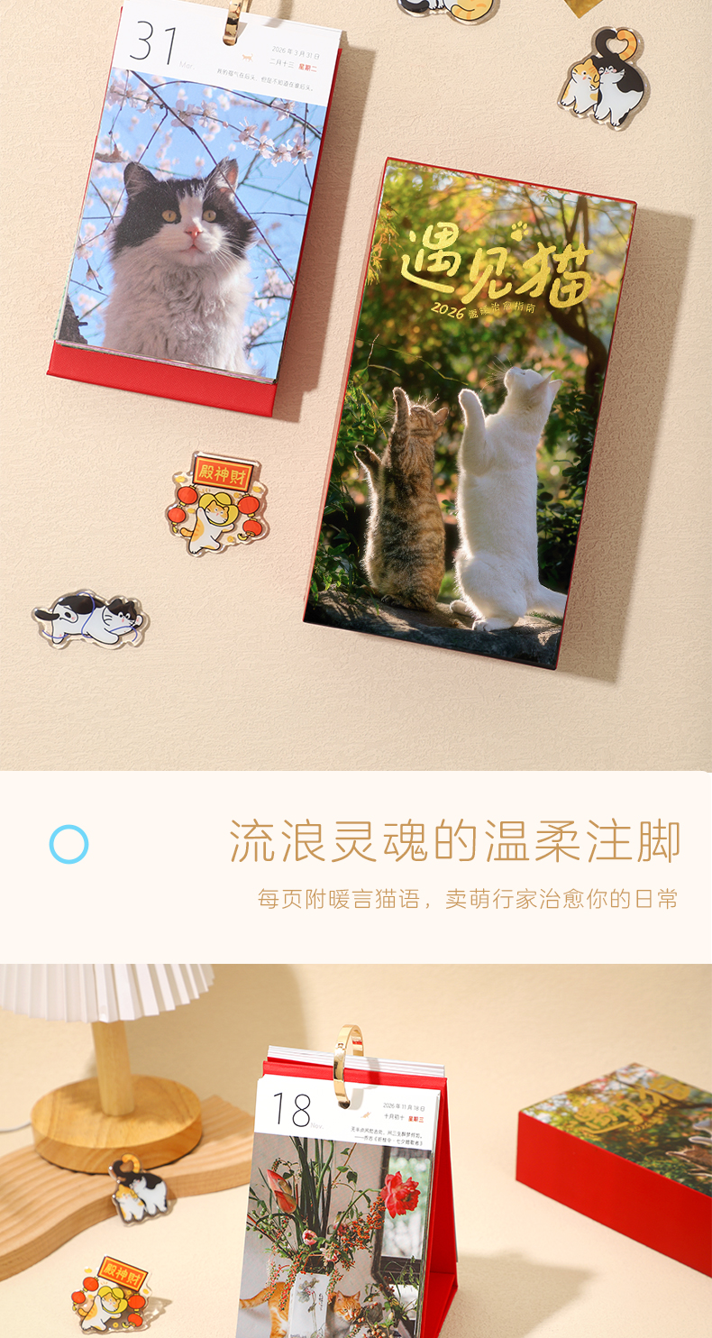 《遇见猫——2026猫日历温暖治愈指南》赠:随机款冰箱贴一个,