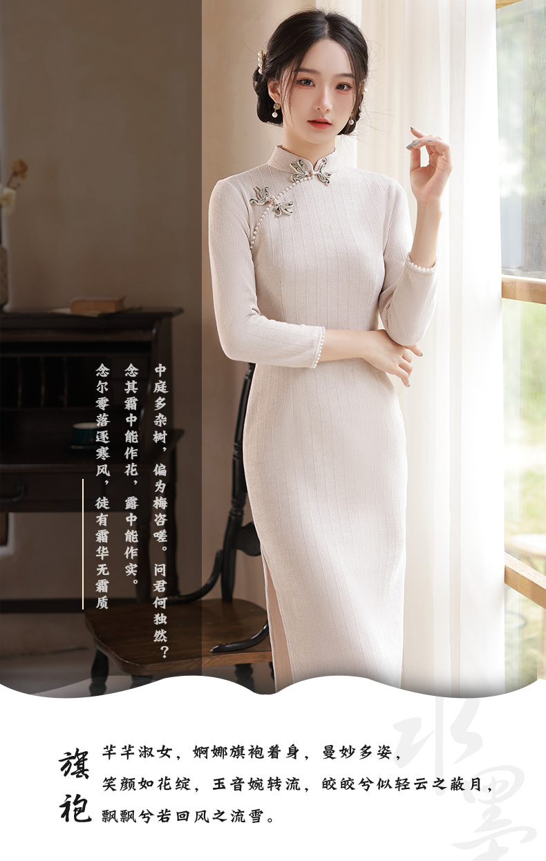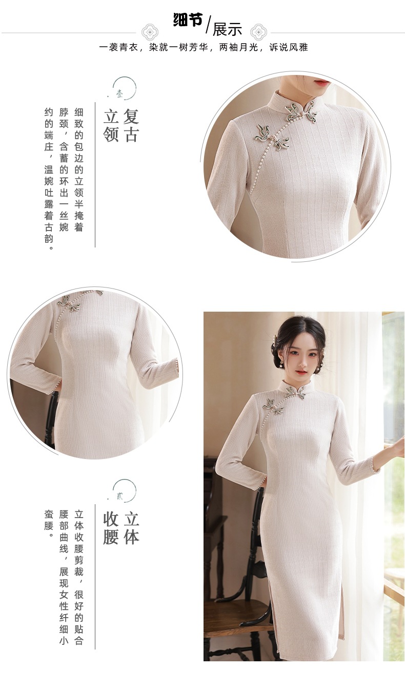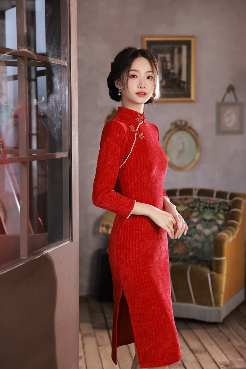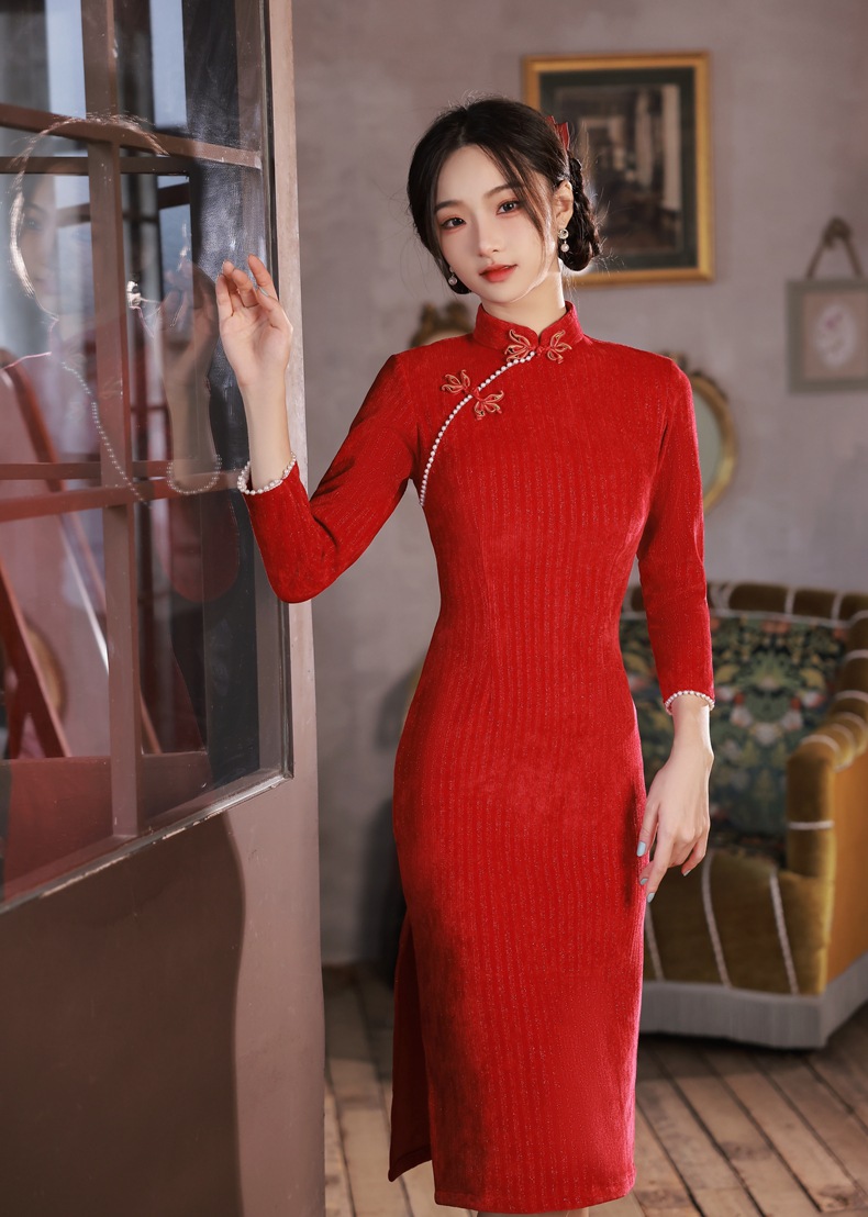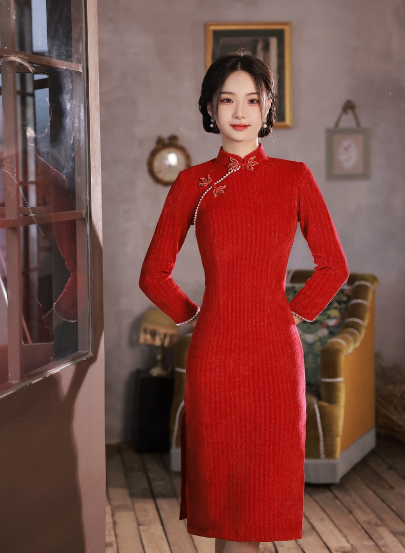 BJS-200改良复古气质少女旗袍年轻款 冬季新款优雅民国风雪尼尔旗袍裙