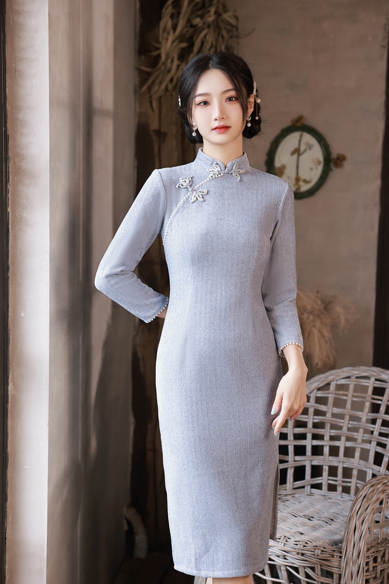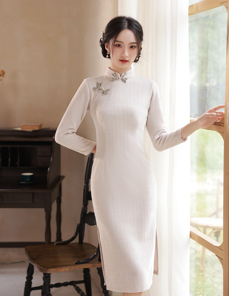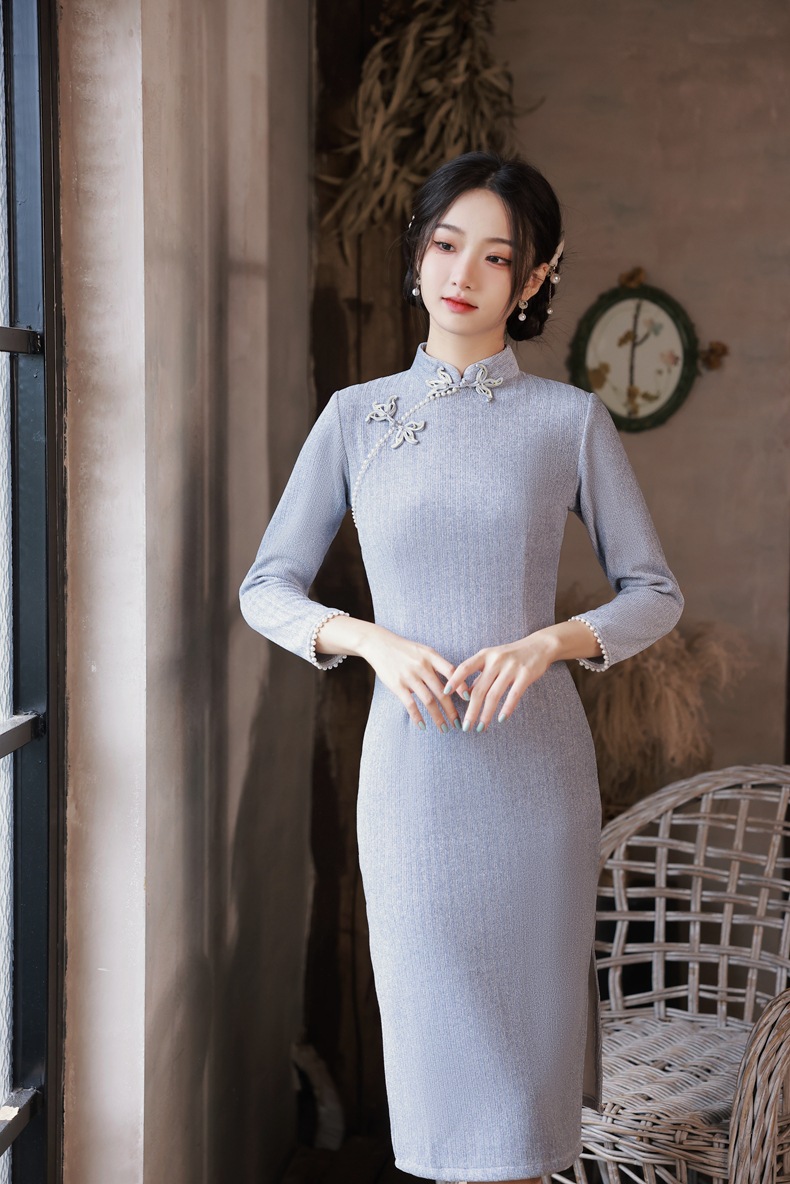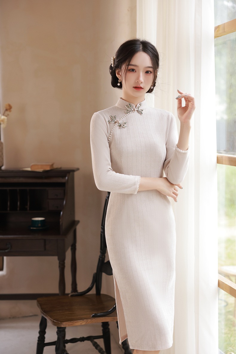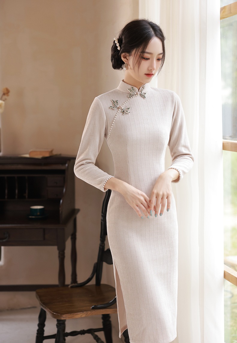 BJS-200改良复古气质少女旗袍年轻款 冬季新款优雅民国风雪尼尔旗袍裙