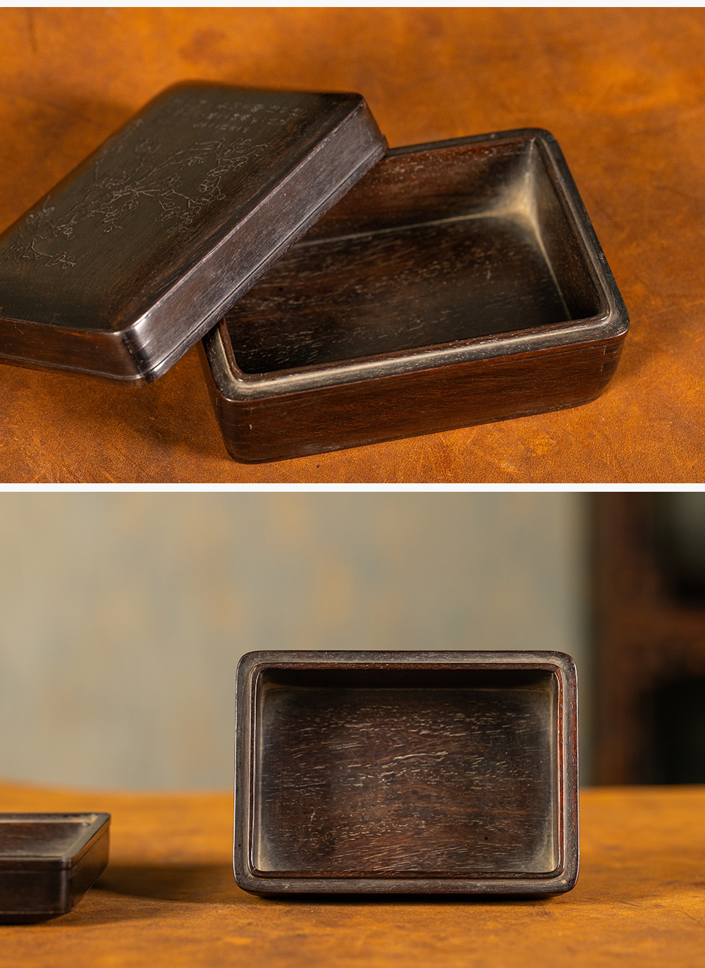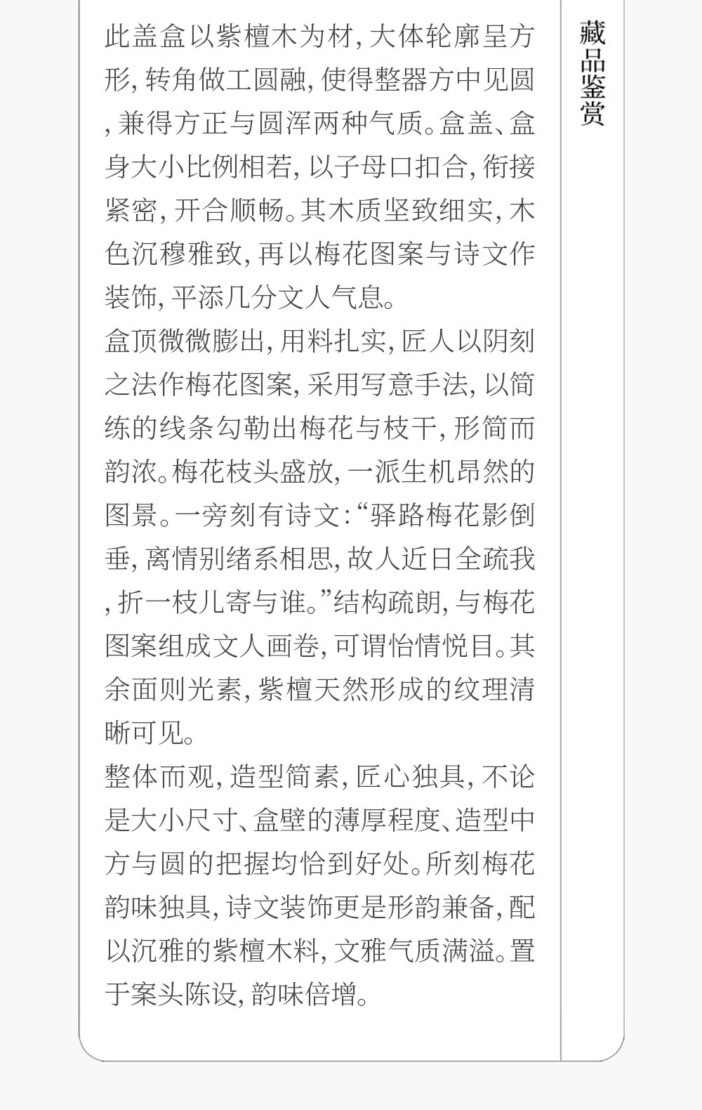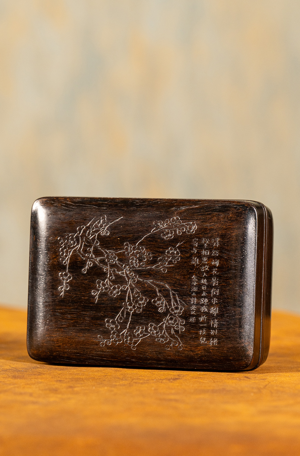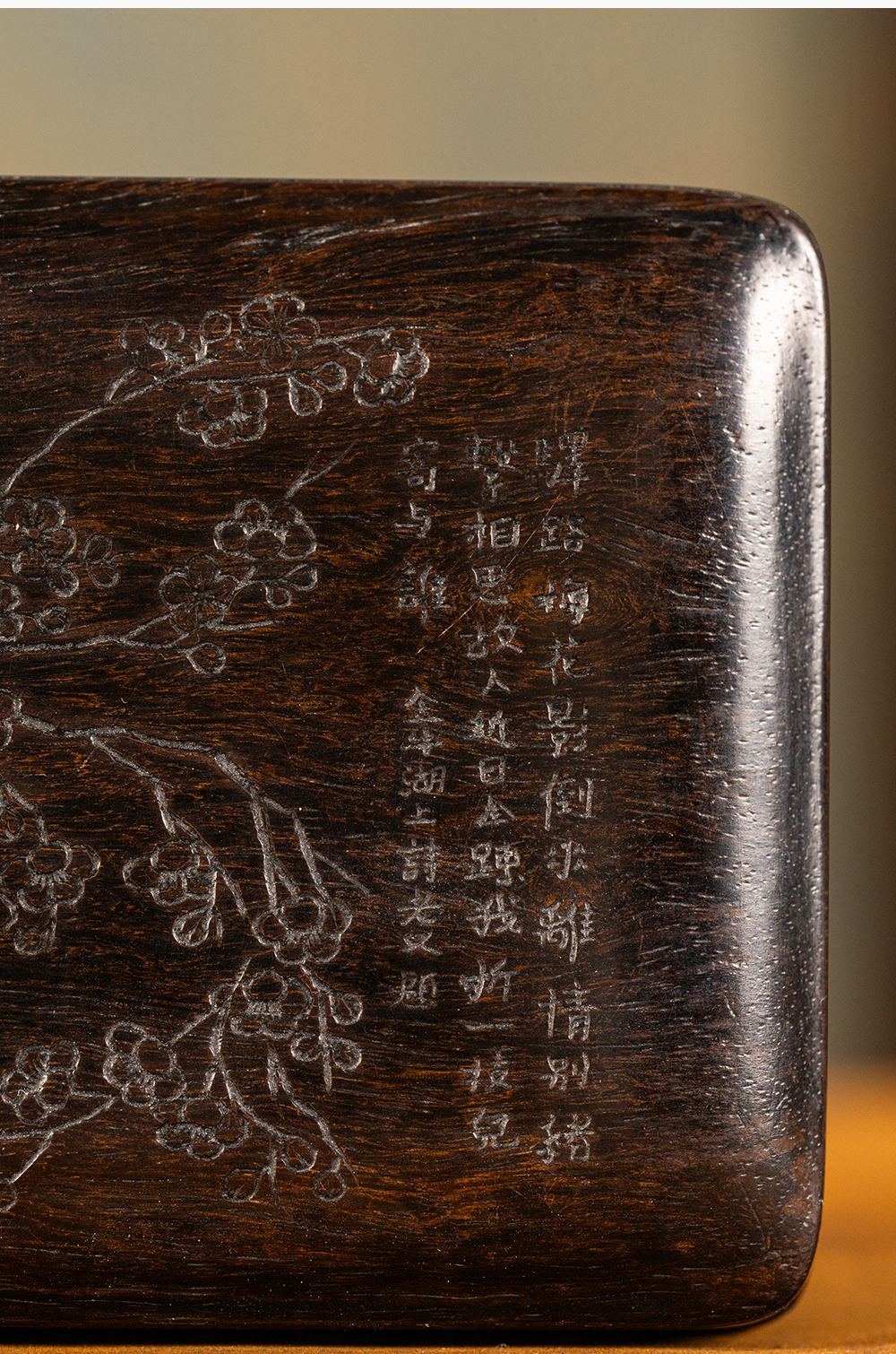清 紫檀阴刻梅花诗文盖盒