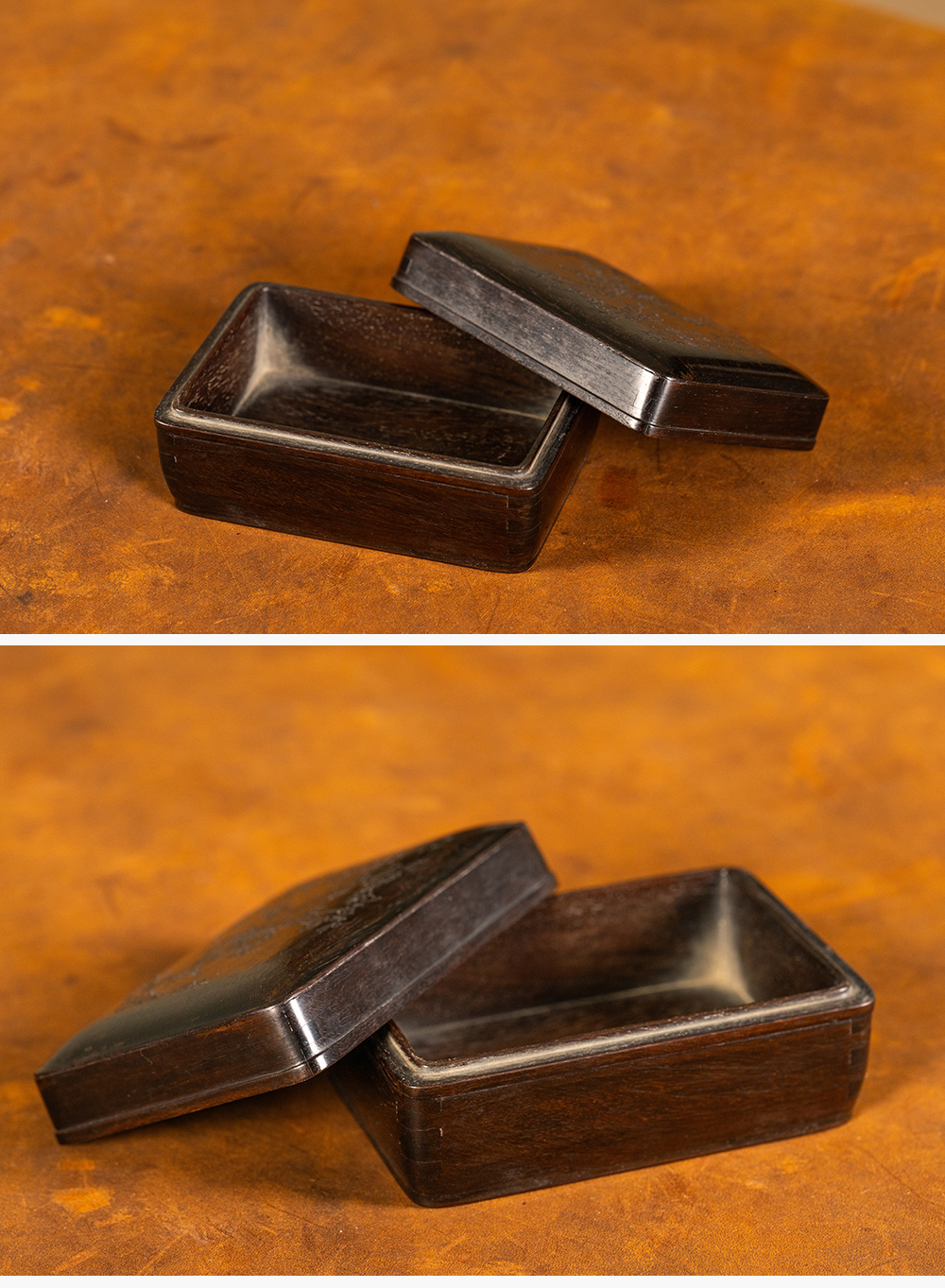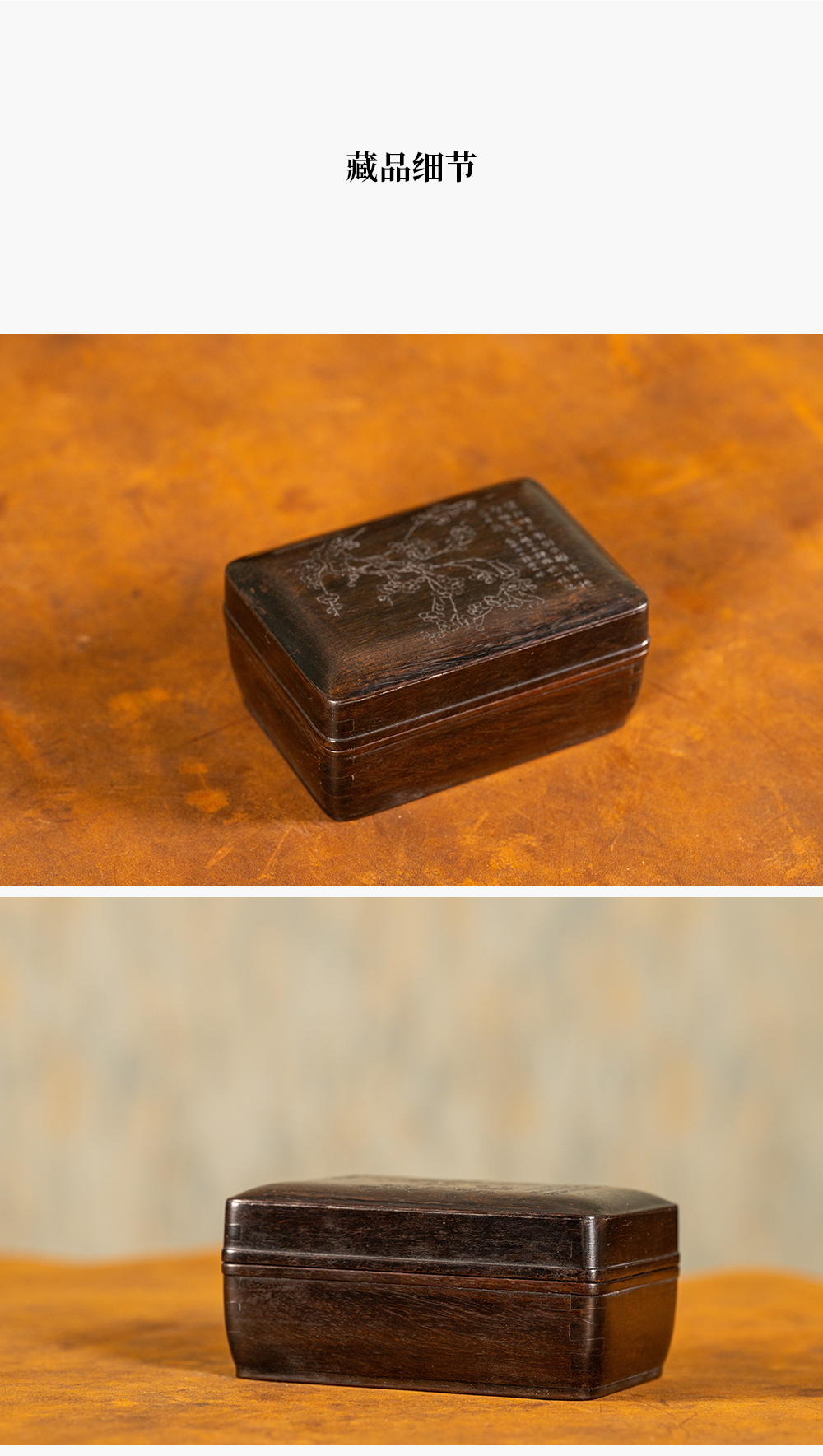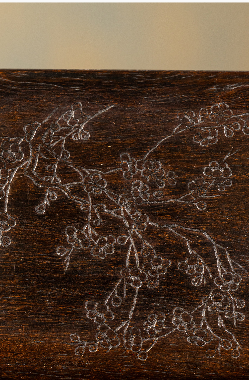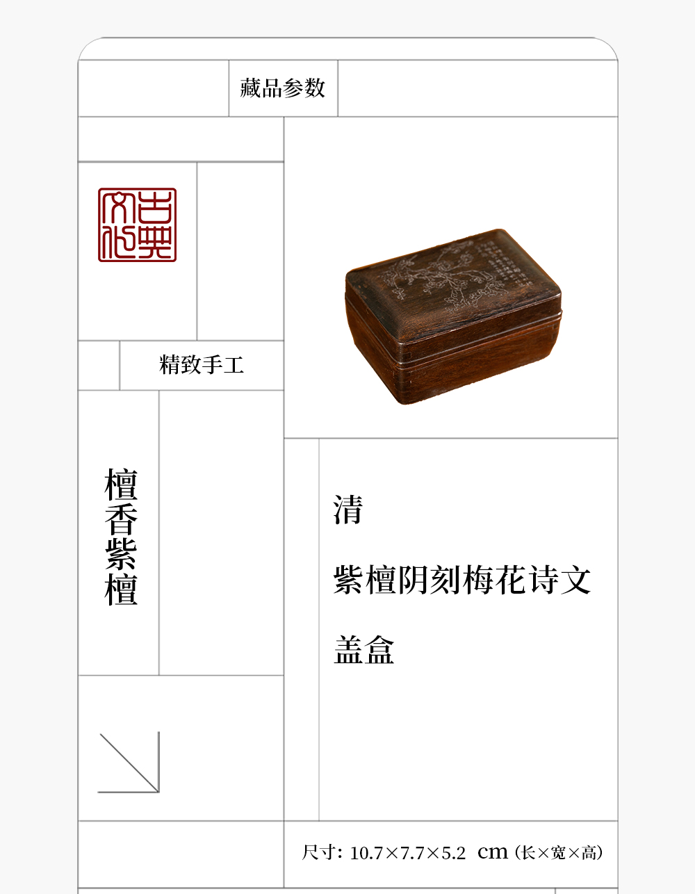 清 紫檀阴刻梅花诗文盖盒