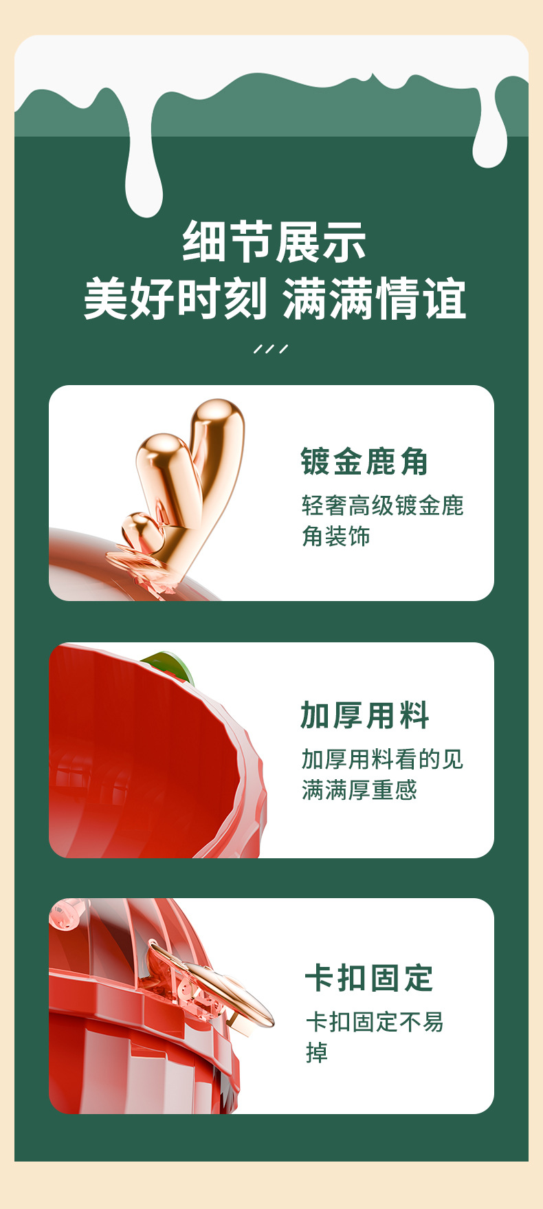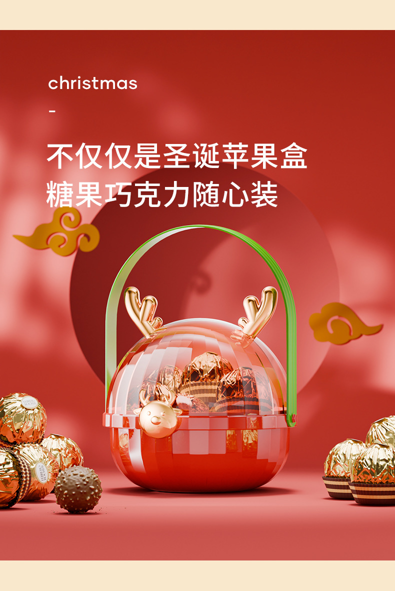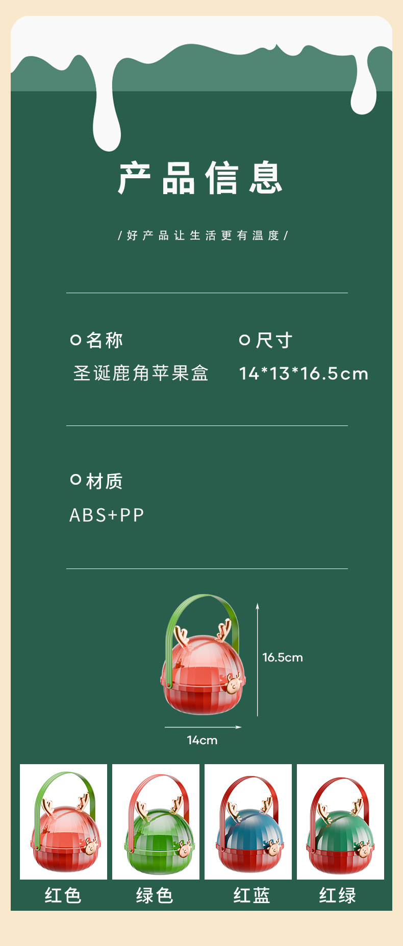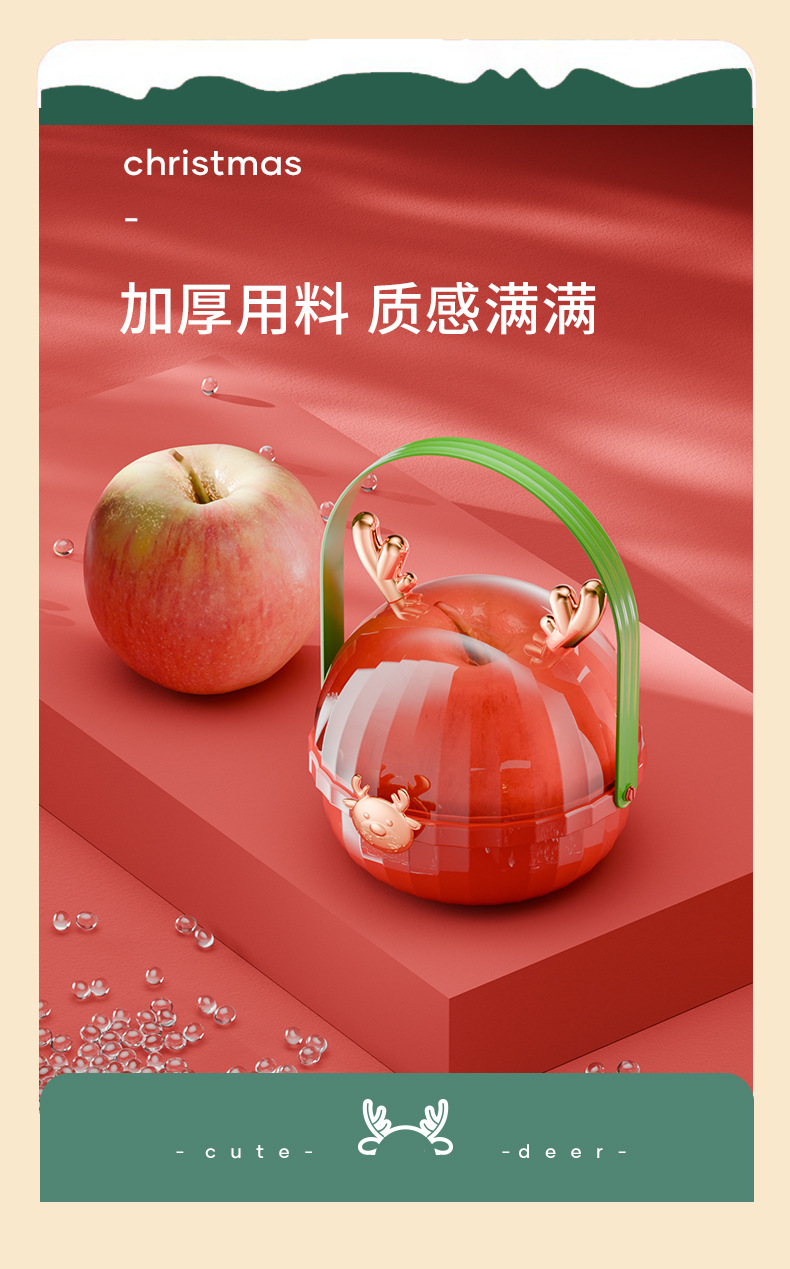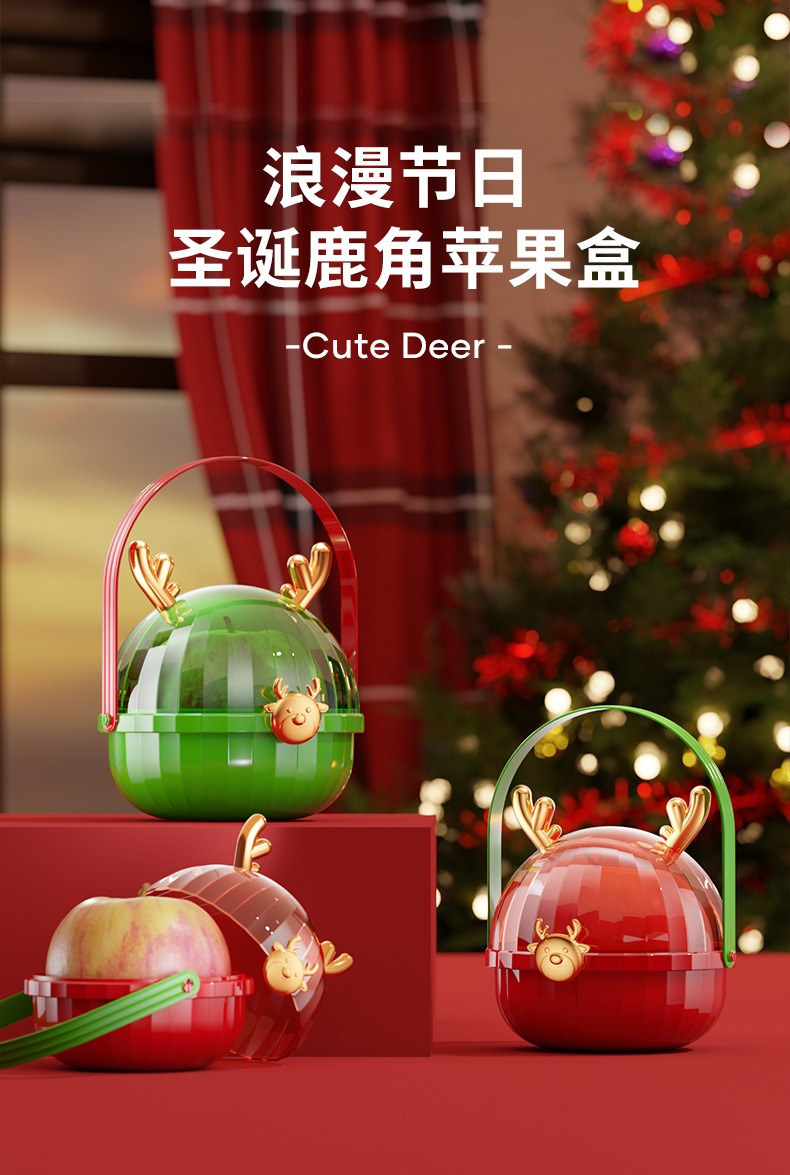 喜多屋圣诞鹿角苹果盒(红色)/ 1件(14*16.5cm)