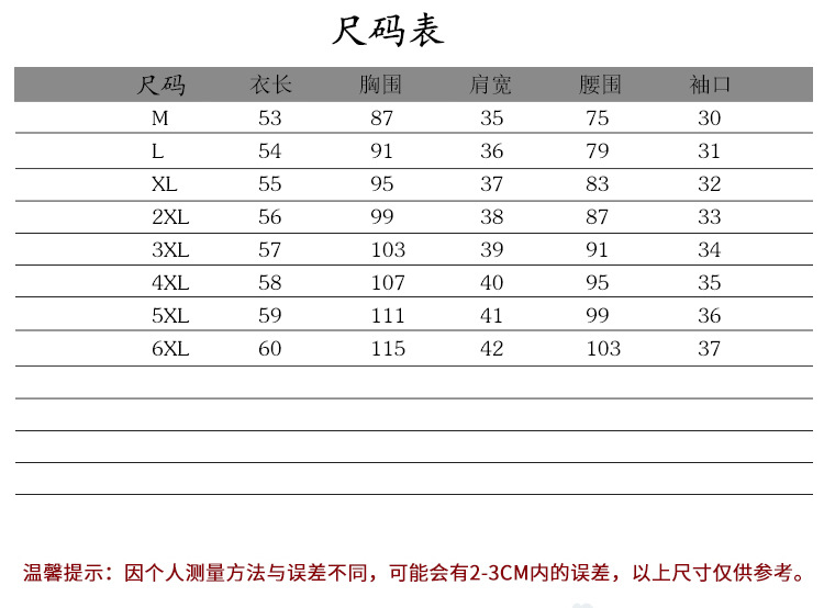 ※以上尺寸为实物人工测量,因测量工具和测量方法不同等因素,会存在1-3cm误差,请根据您平时穿着习惯参考尺码表自主购物。