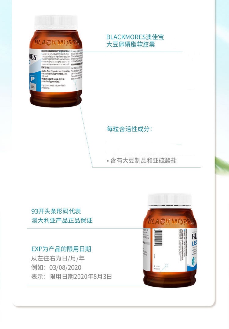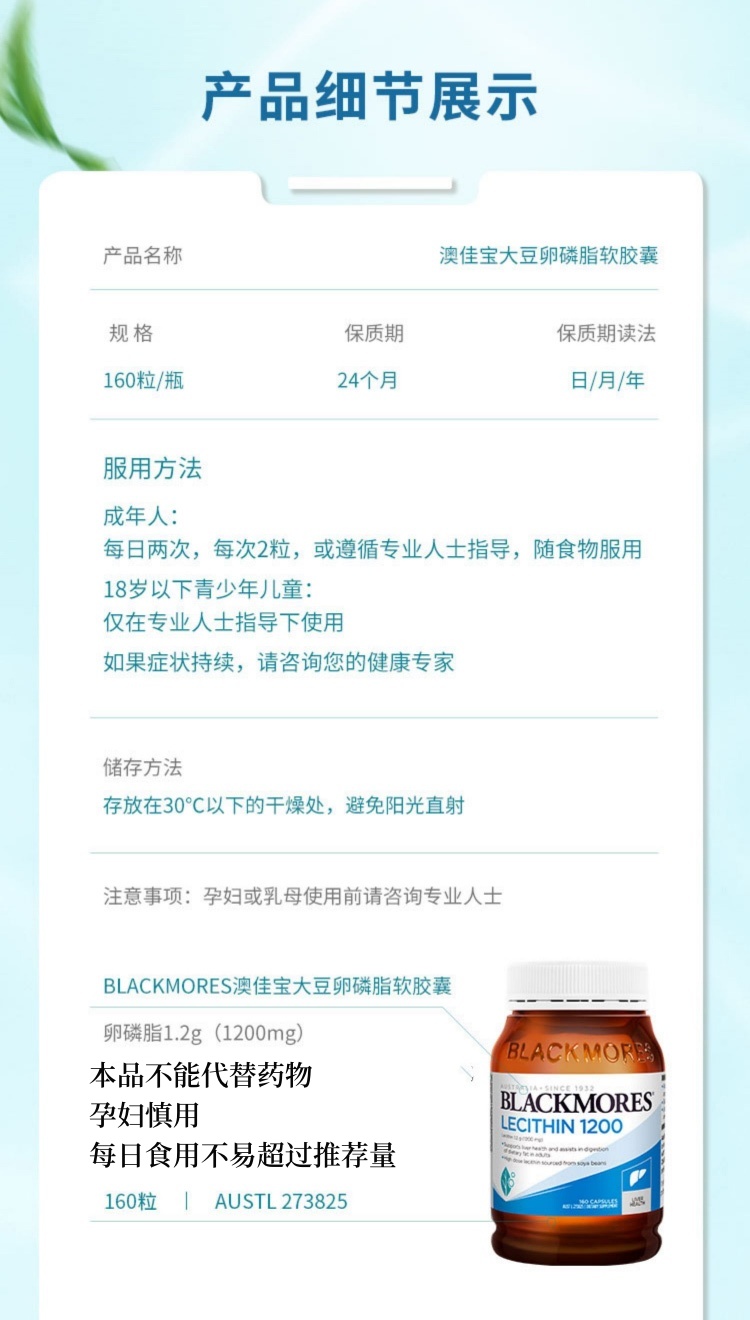 【跨境】澳佳宝Blackmores大豆卵磷脂软胶囊160粒/瓶 中老年