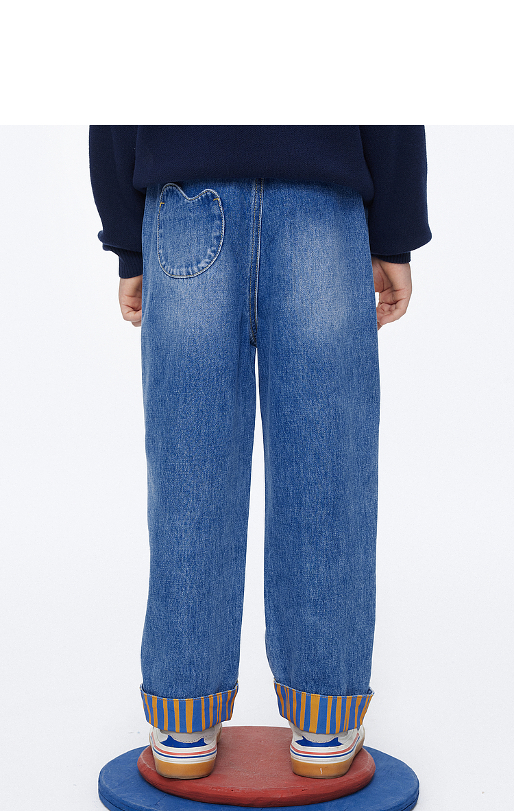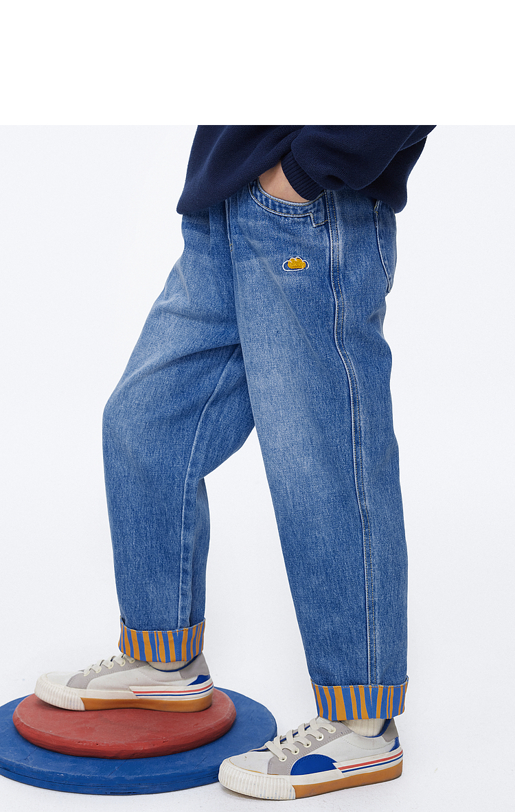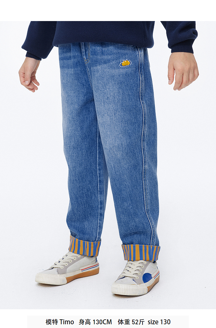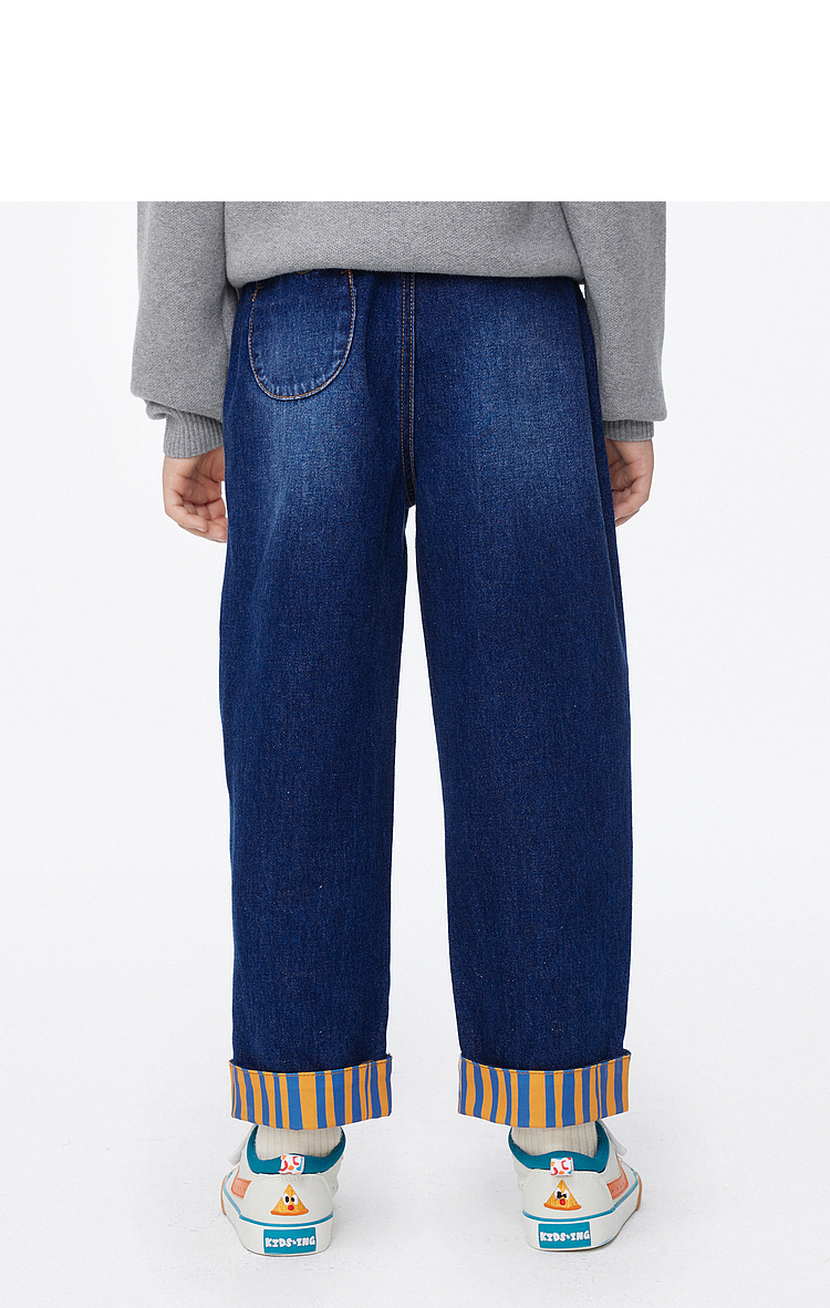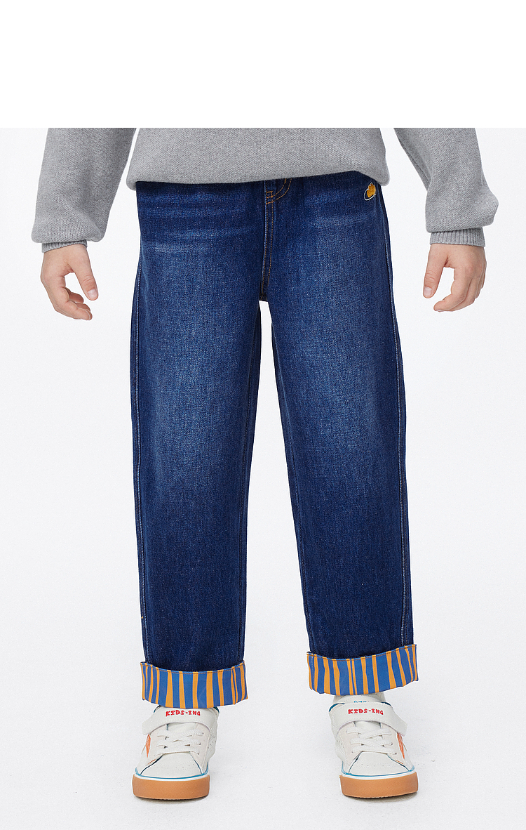 【秒】【MQD】童装秋冬季新款男童牛仔裤宽松直筒撞色翻边儿童长裤