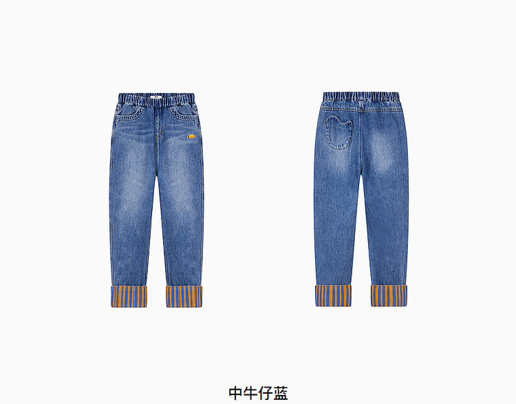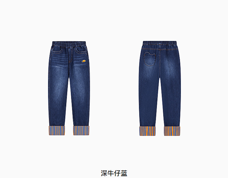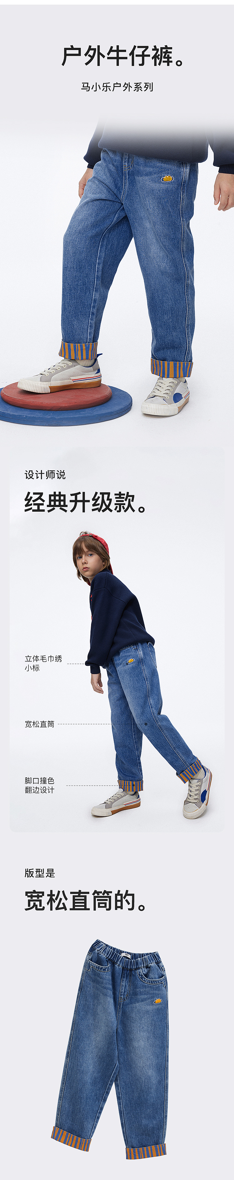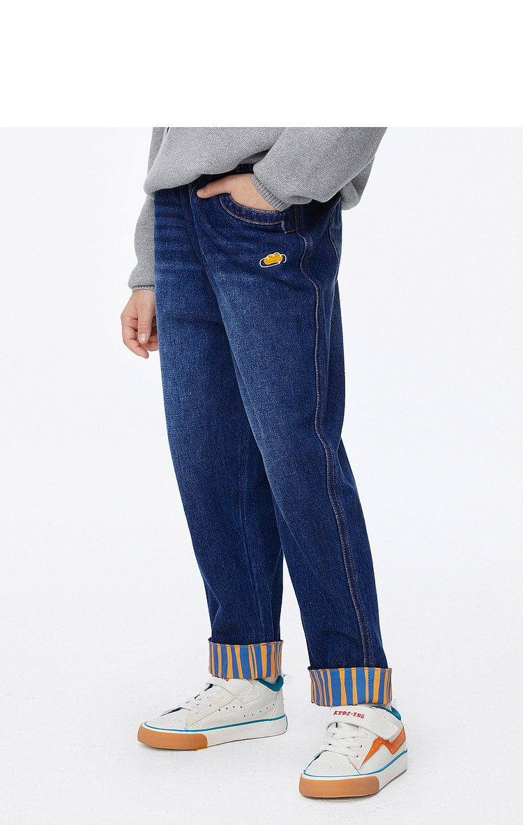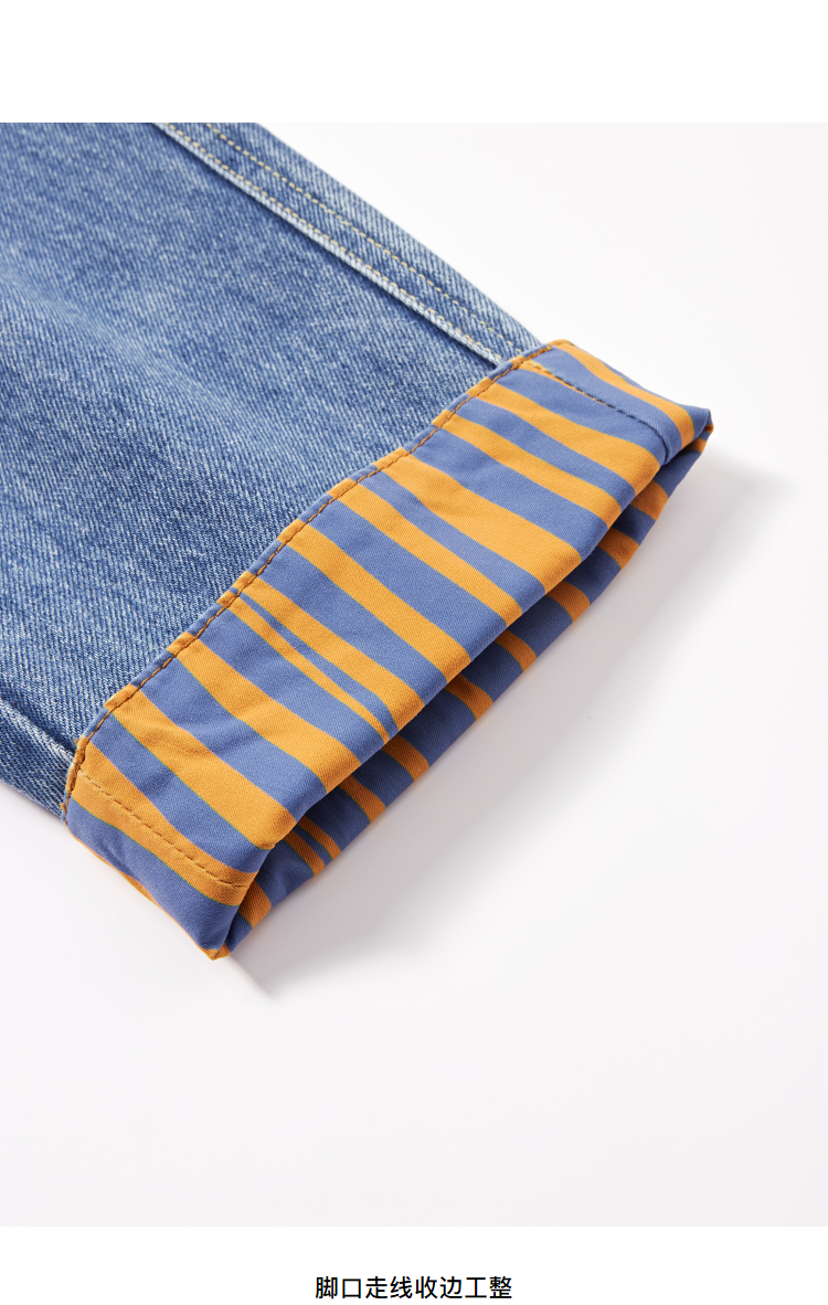 【秒】【MQD】童装秋冬季新款男童牛仔裤宽松直筒撞色翻边儿童长裤