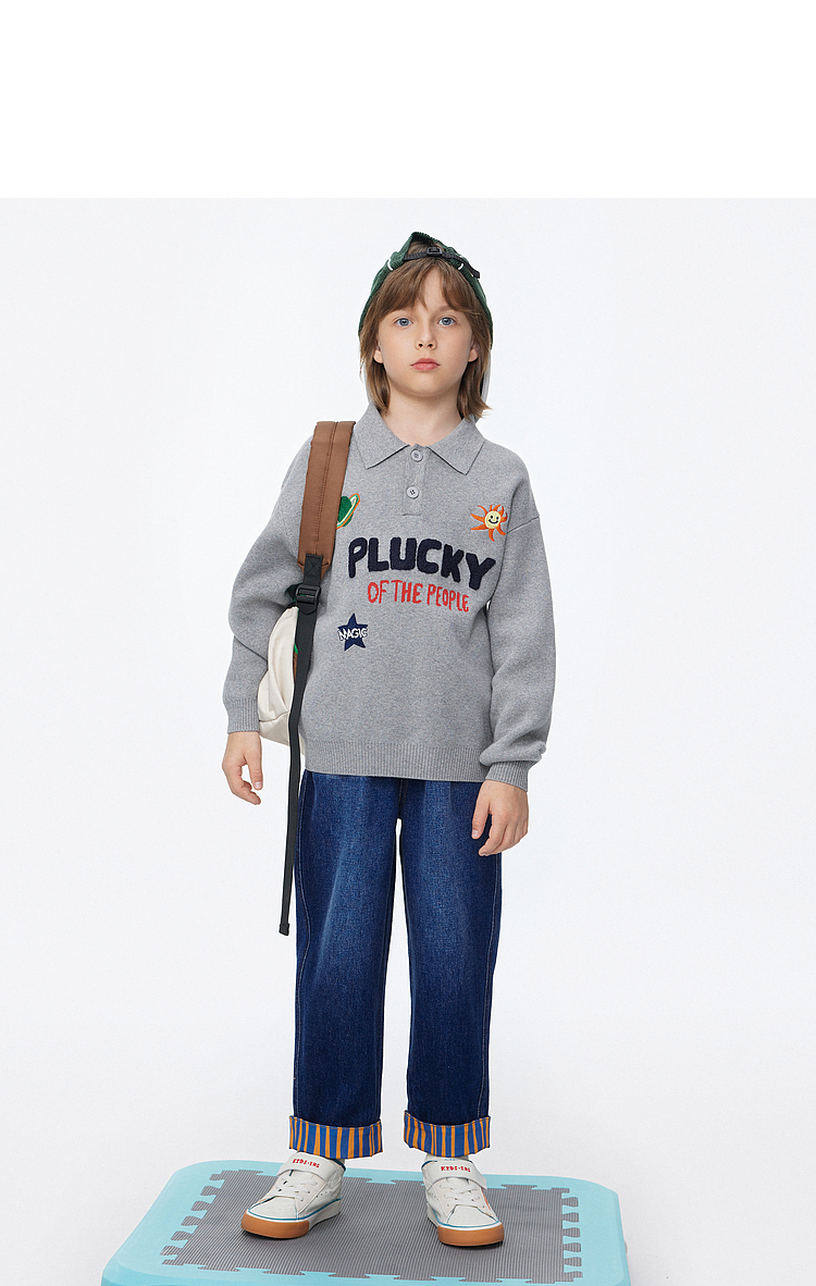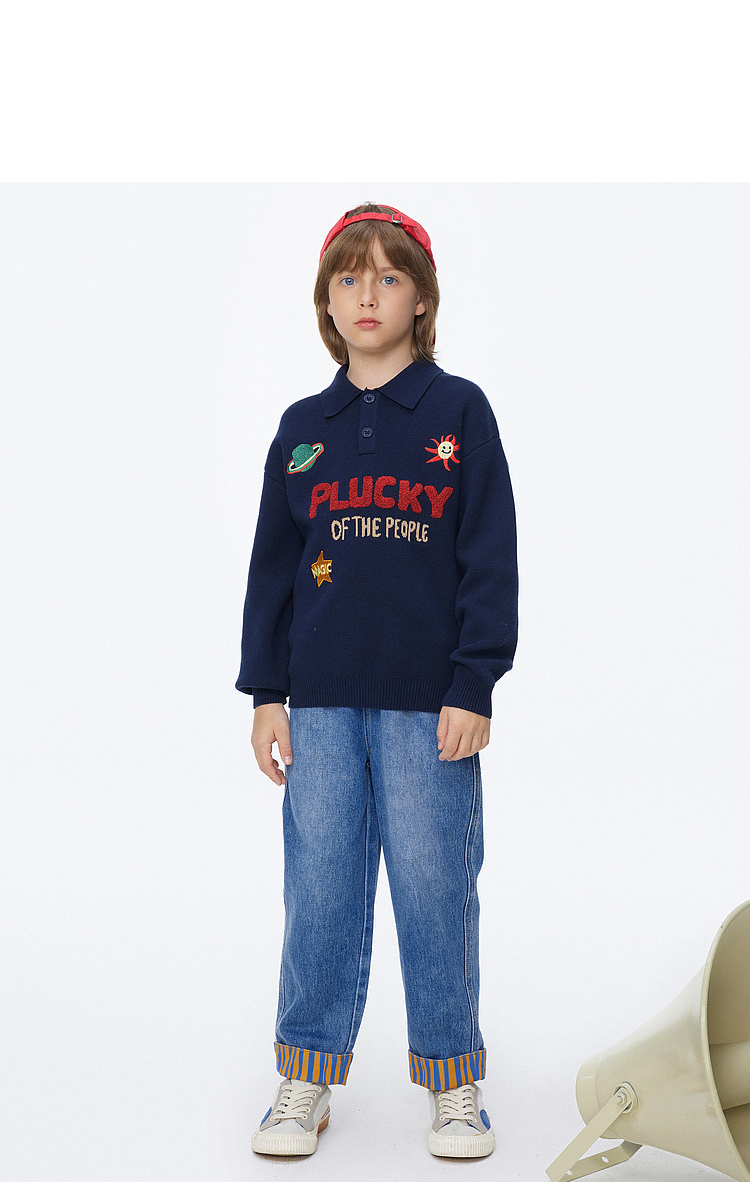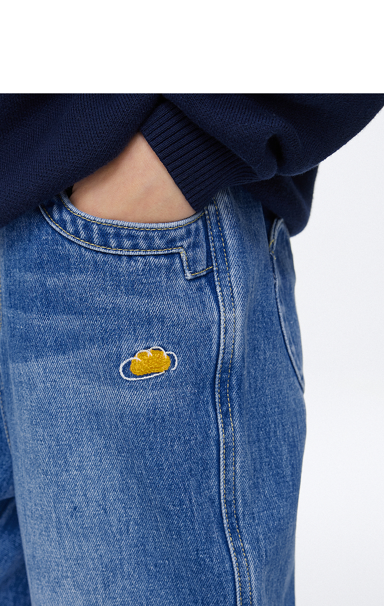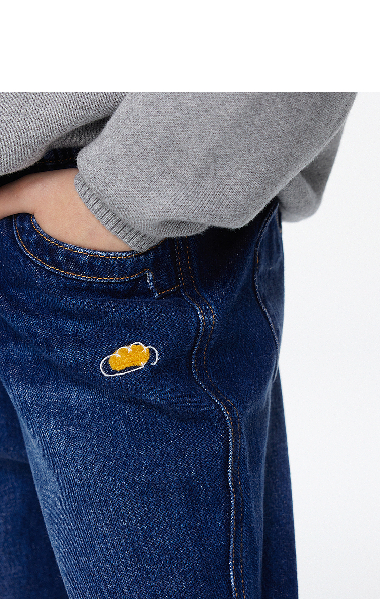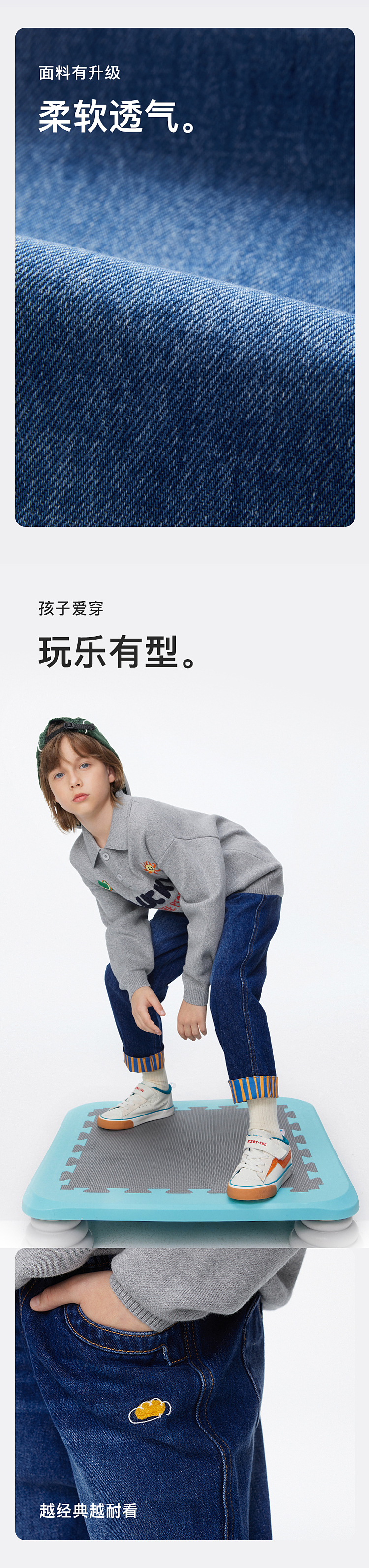 【秒】【MQD】童装秋冬季新款男童牛仔裤宽松直筒撞色翻边儿童长裤
