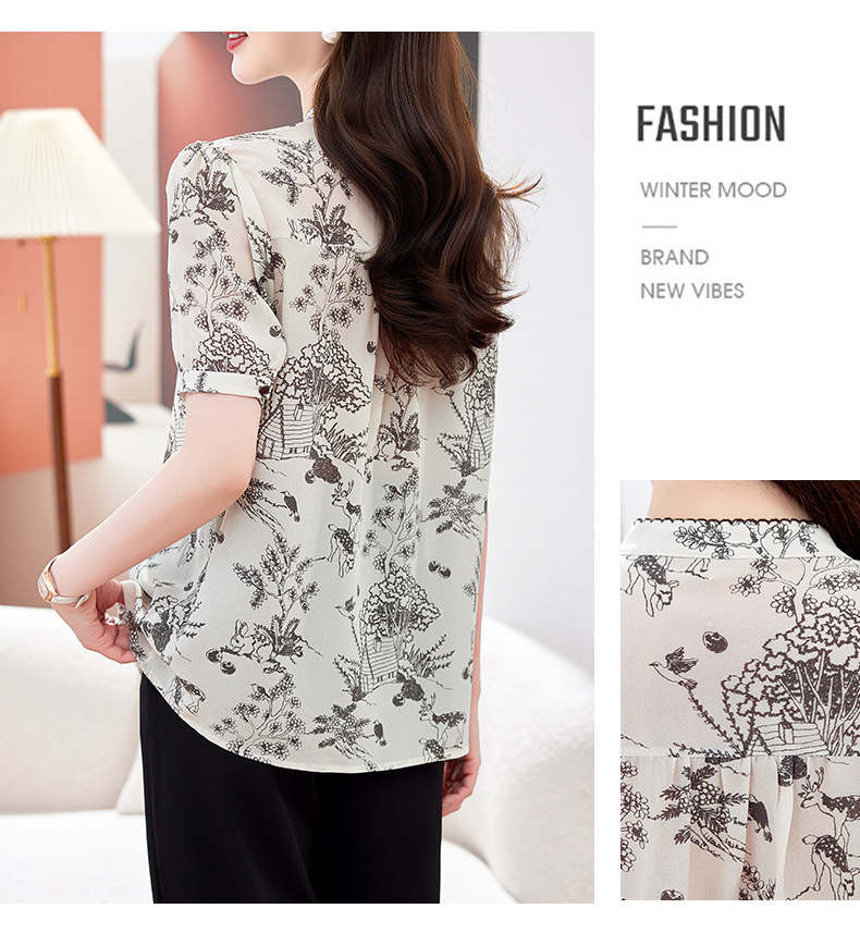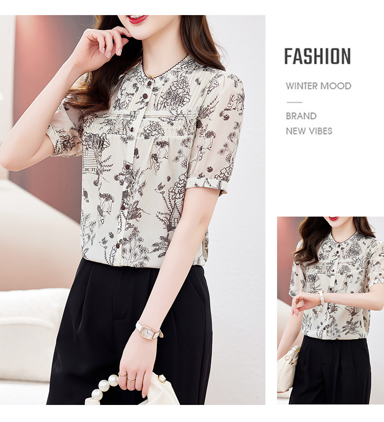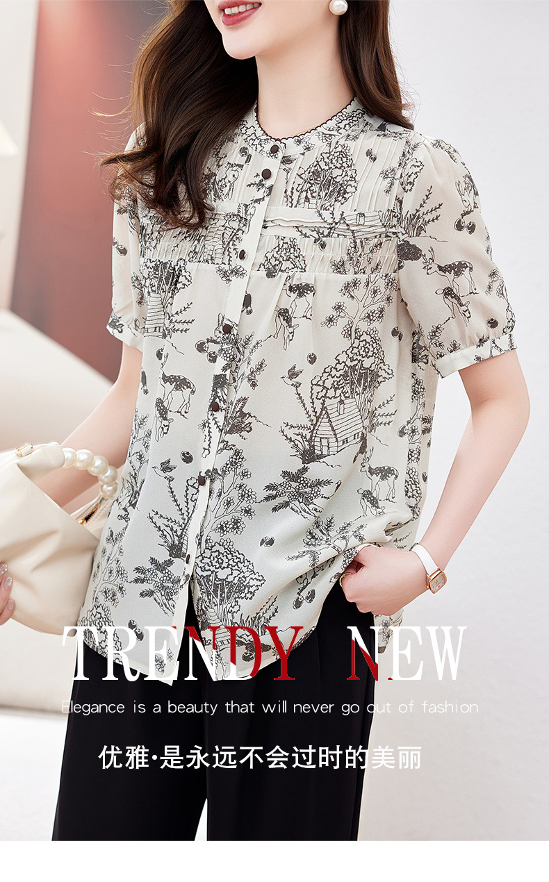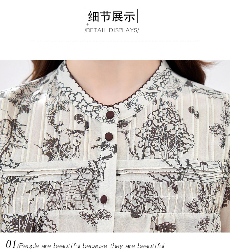 丁摩 100%桑蚕丝碎花轻奢高级感真丝上衣LQ9623