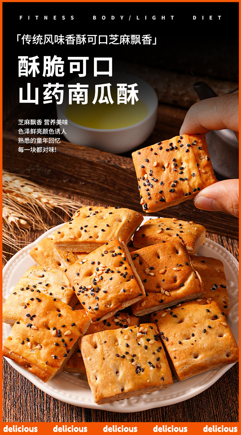 【中老年人的健康之选!手工制作的山药南瓜酥千层饼干】早餐儿童代餐食品中老年人零食特价整箱放心吃进口中老年健康