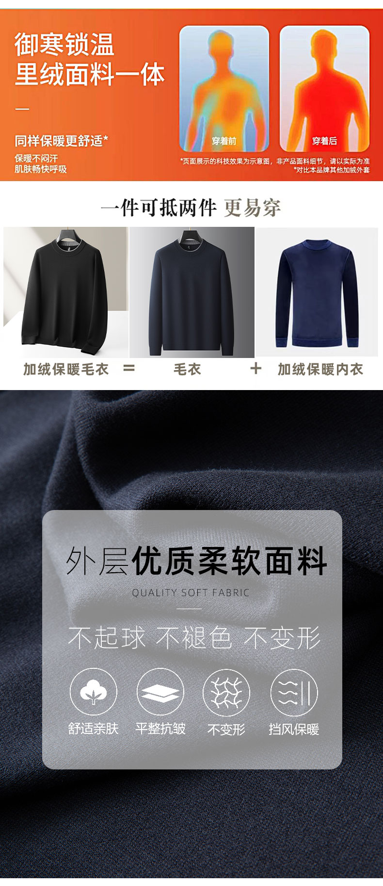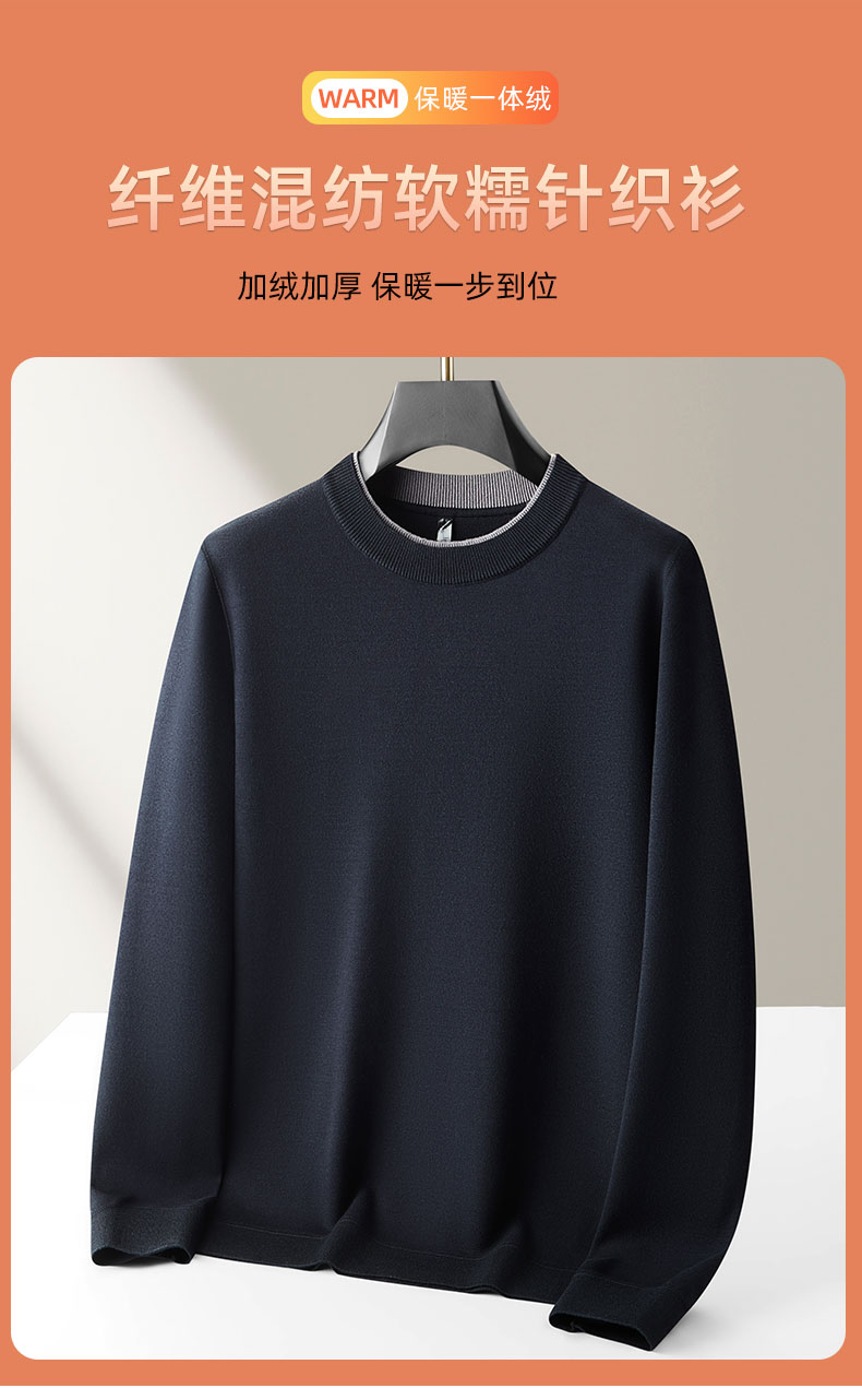 【DKP】大依优型大码男装加绒针织打底衫圆领加绒上衣休闲百搭加肥加大码