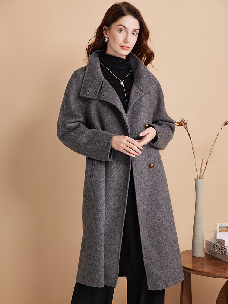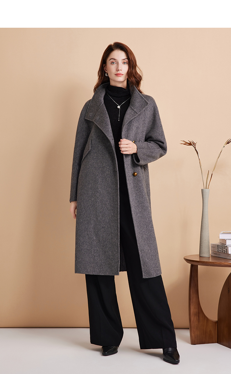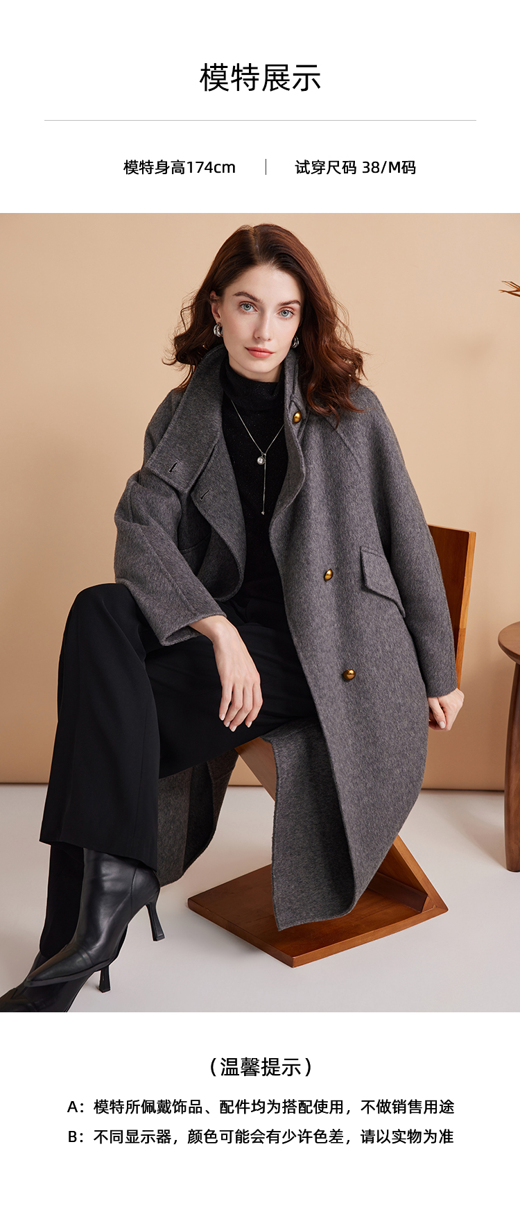 EITIE爱特爱冬季新款大气立领中长款收腰显瘦毛呢大衣外套D2414411