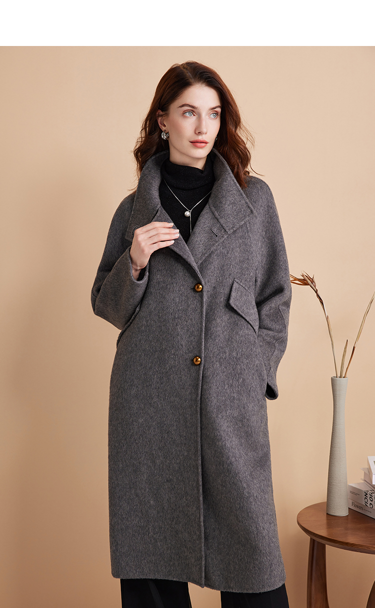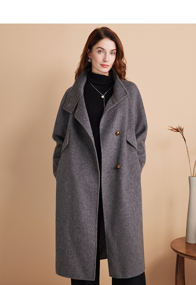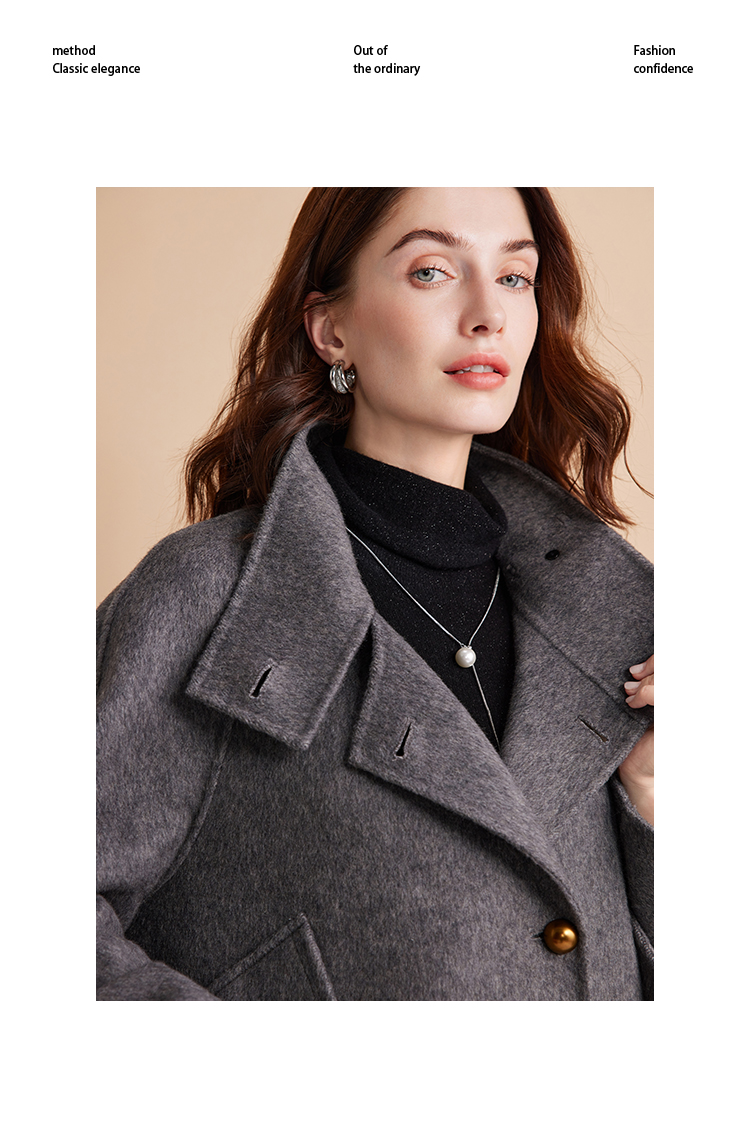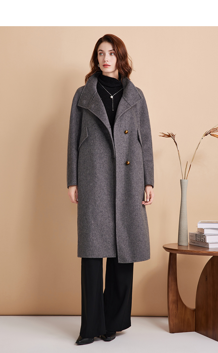 EITIE爱特爱冬季新款大气立领中长款收腰显瘦毛呢大衣外套D2414411