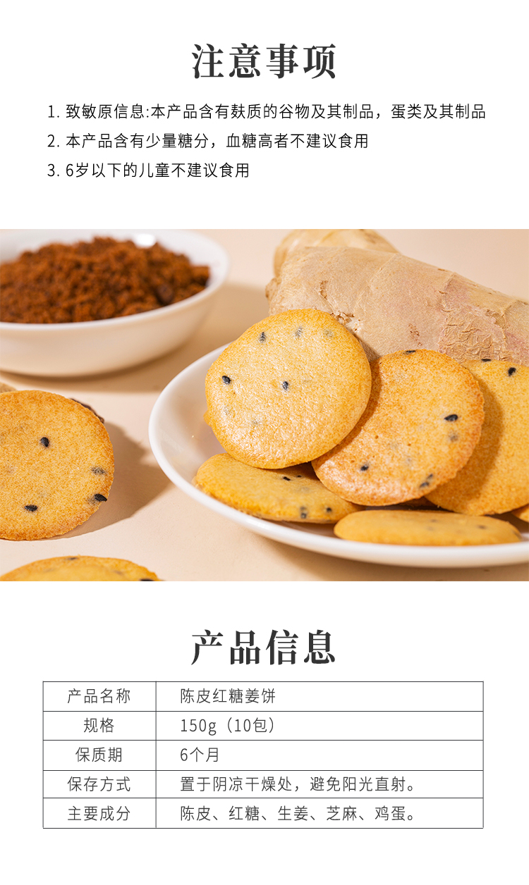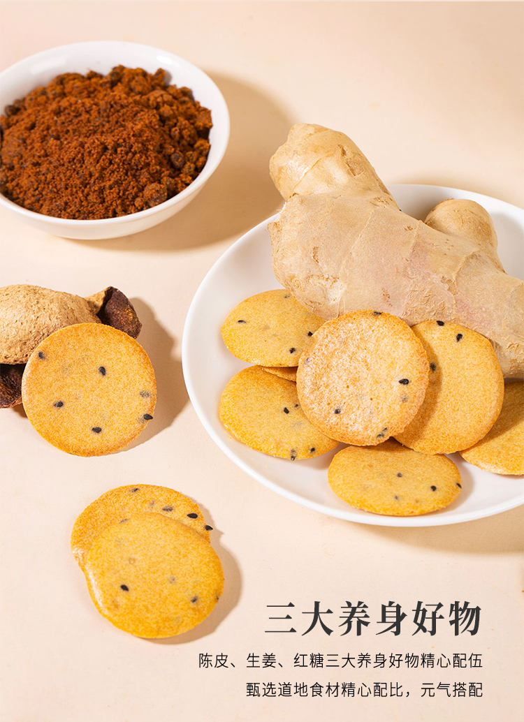 正安国货·陈皮红糖姜饼 元气搭配薄香松脆微甜不腻温暖美味零食饼干