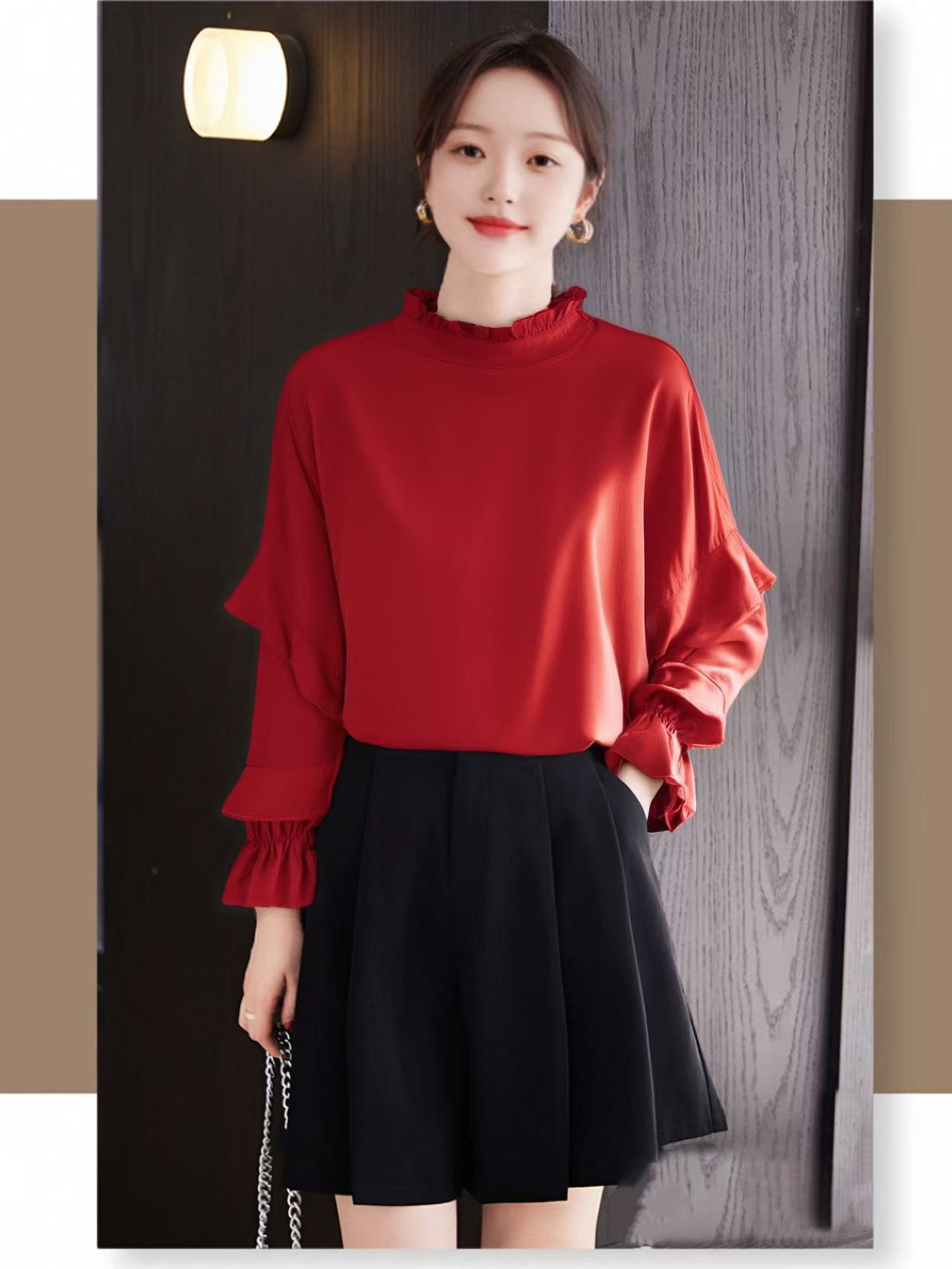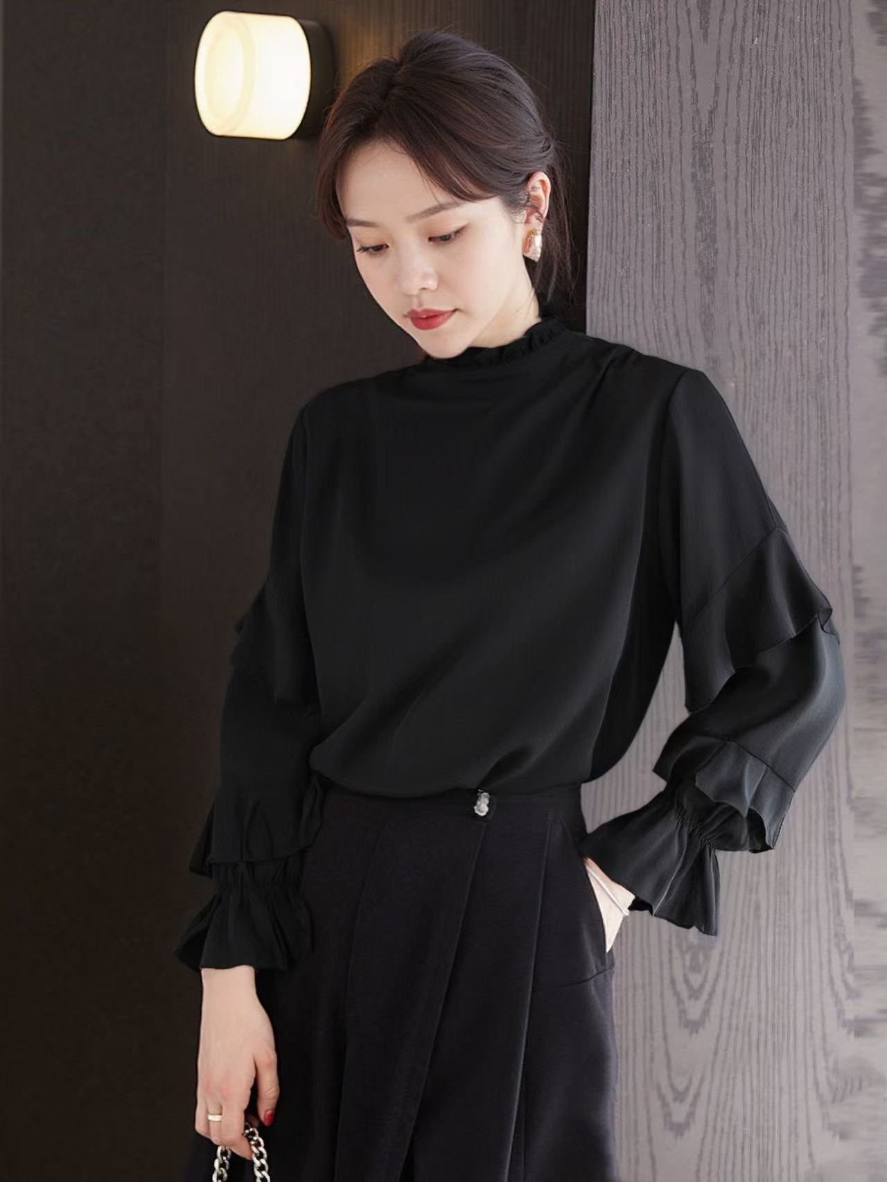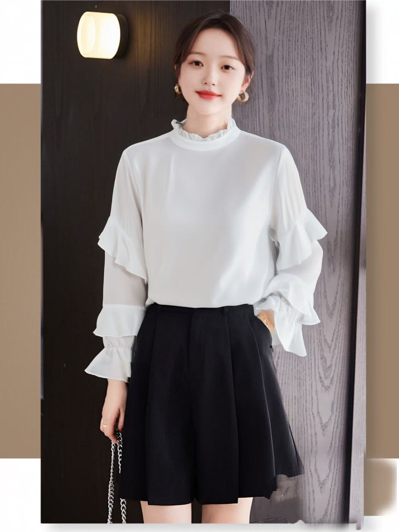 【诗铭洛可】1663长袖衬衫花边领荷叶袖上衣A2-3