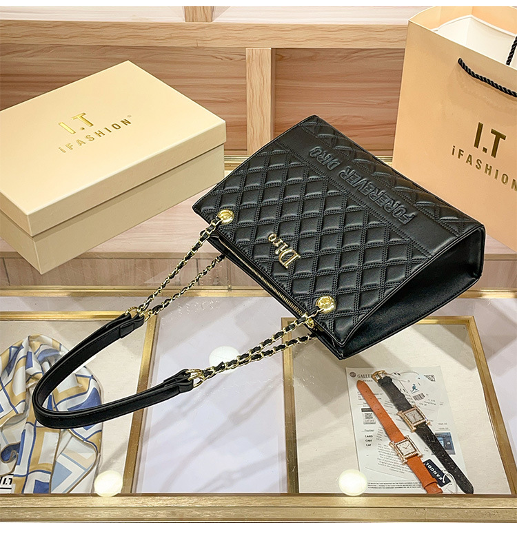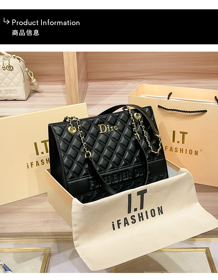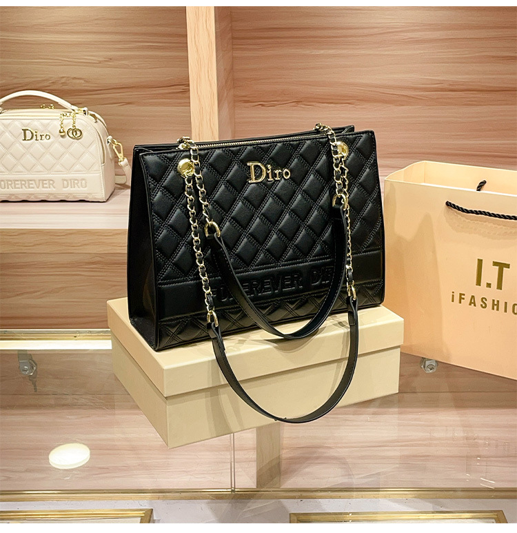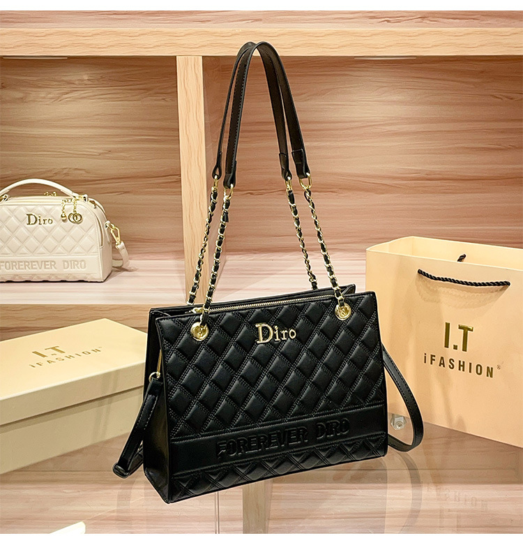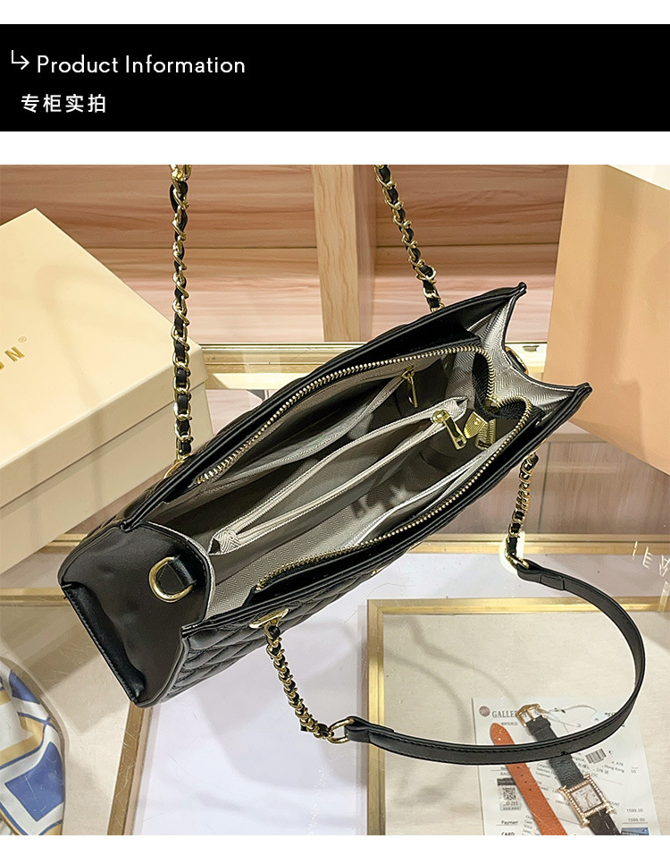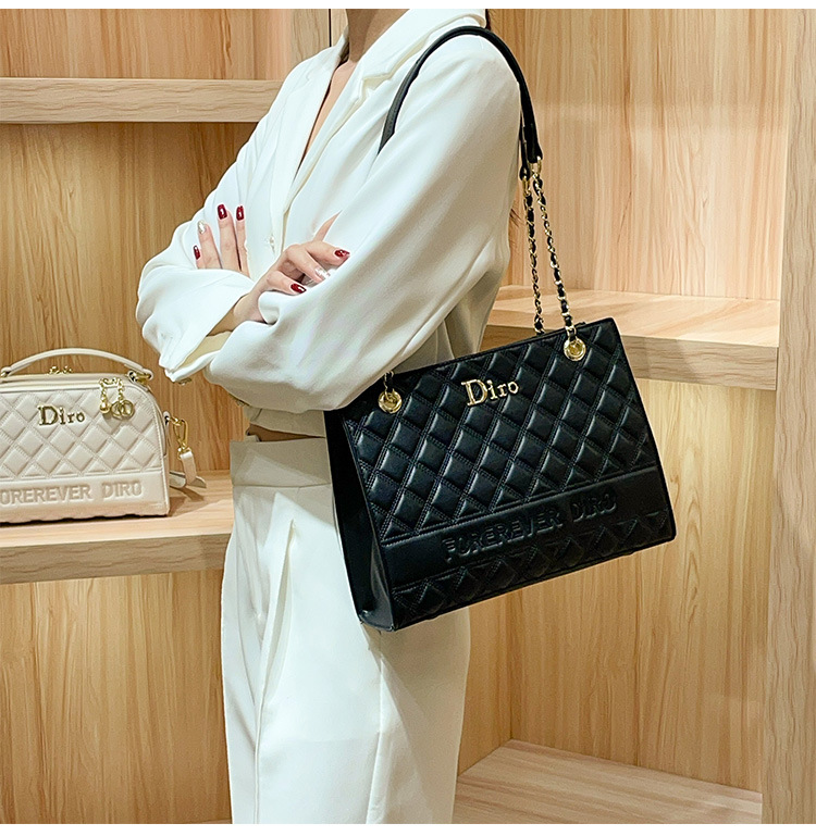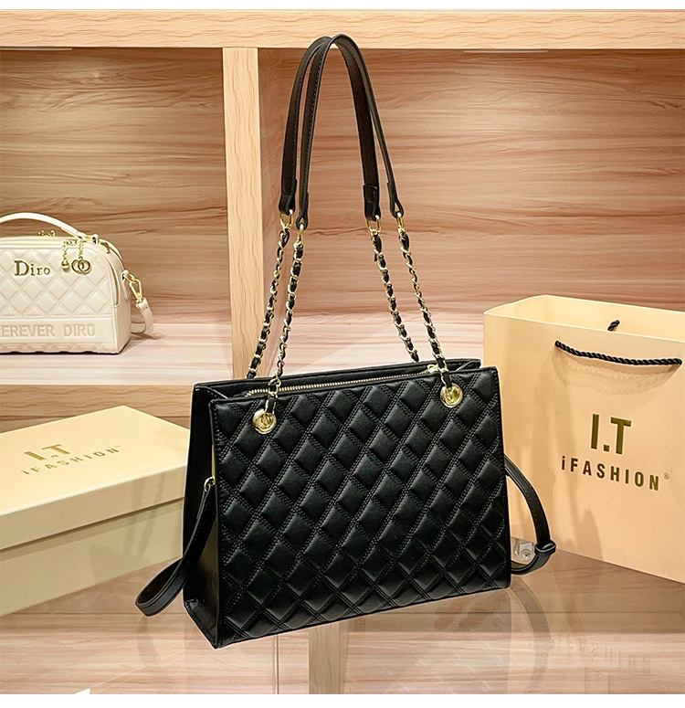 丁摩 【高品质】托特包女黑色菱格大容量百搭通勤链条手提单肩大包5ZF-5262
