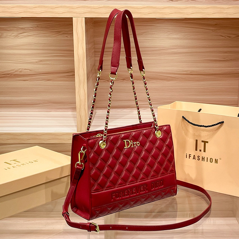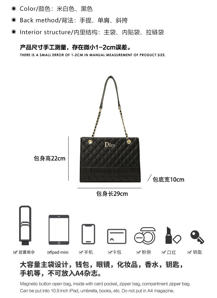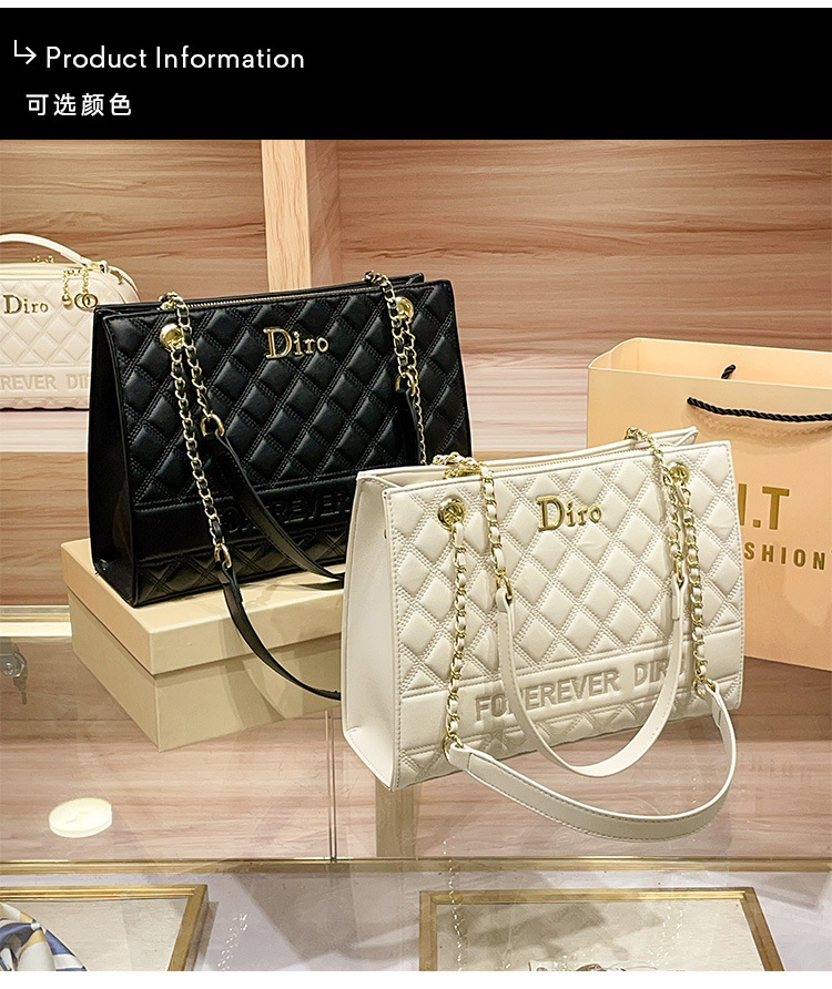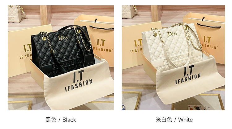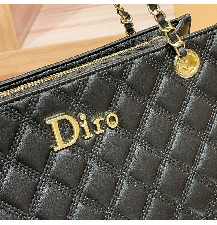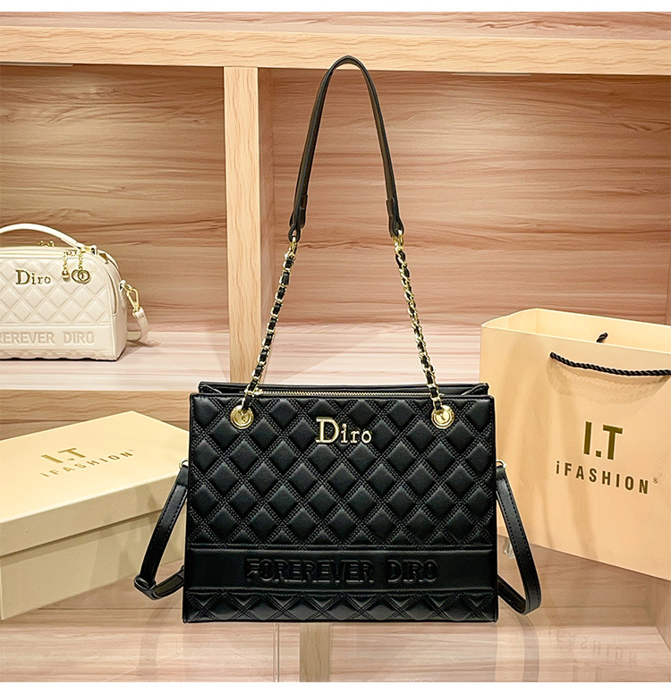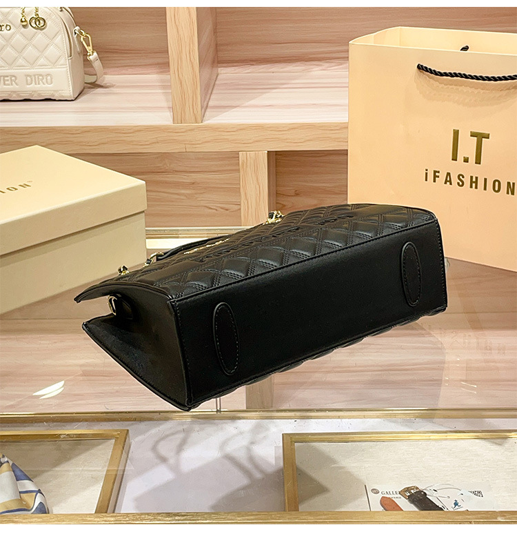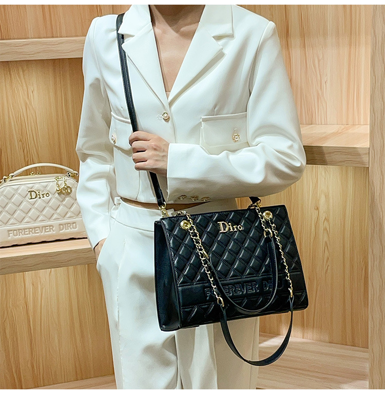 丁摩 【高品质】托特包女黑色菱格大容量百搭通勤链条手提单肩大包5ZF-5262