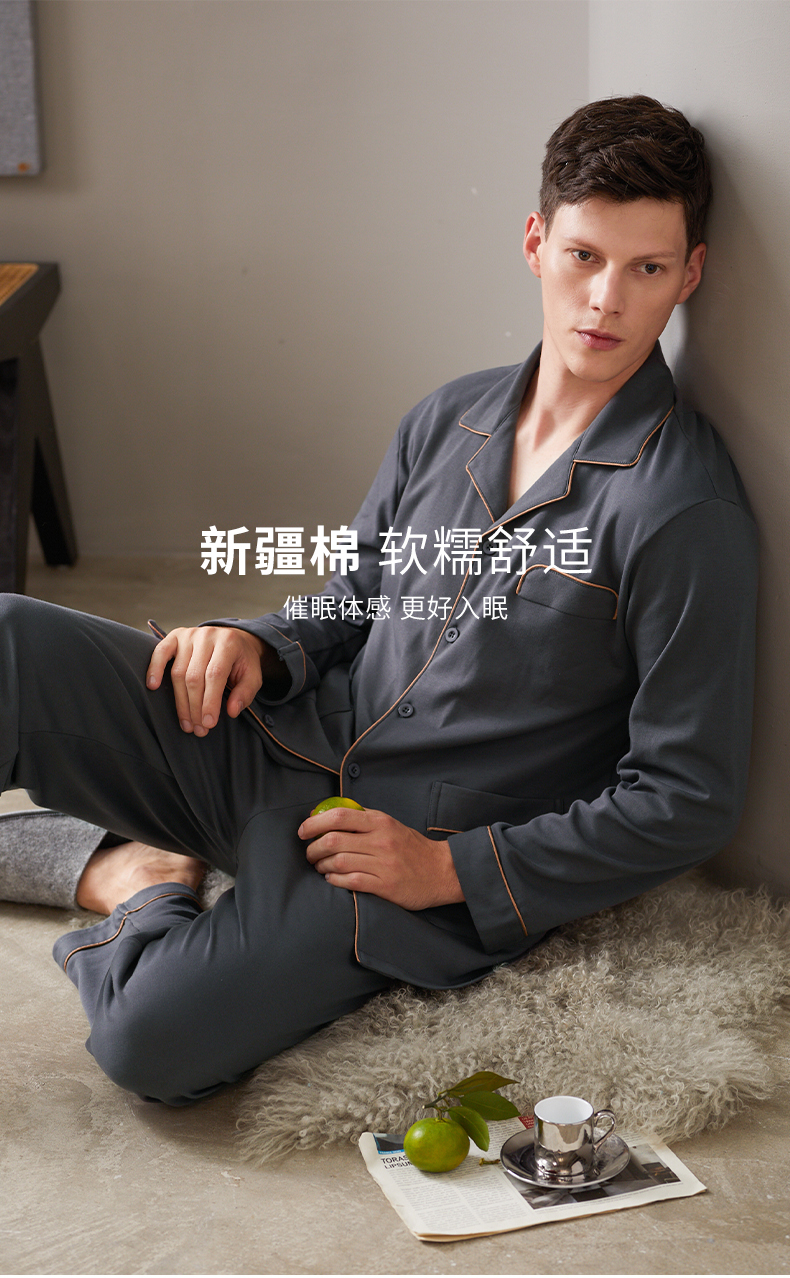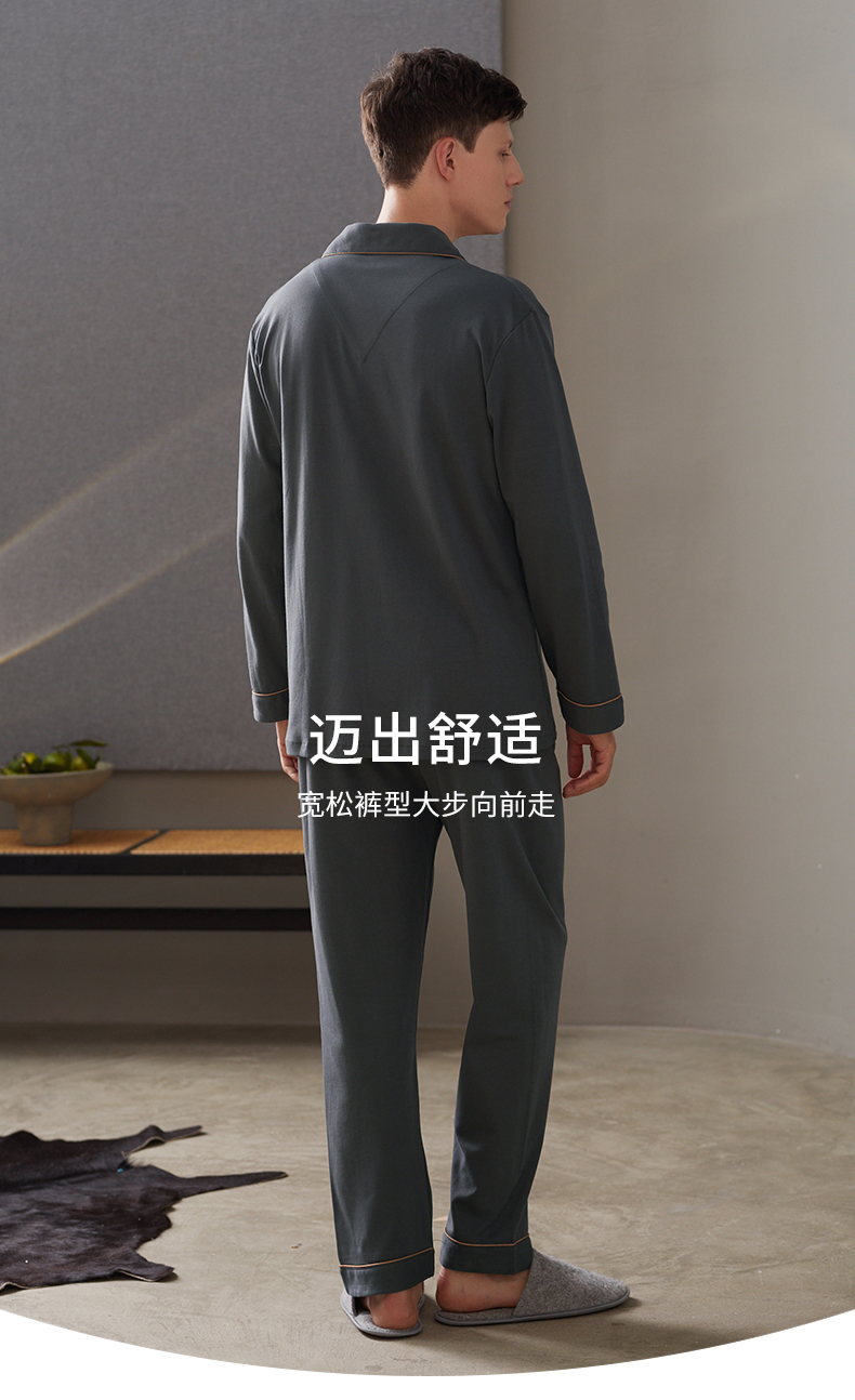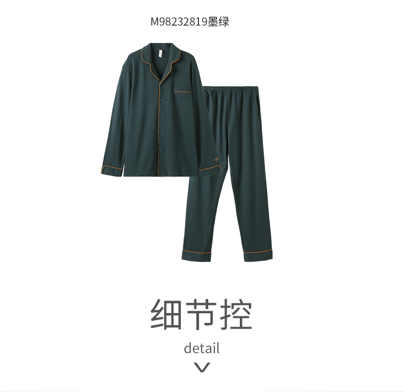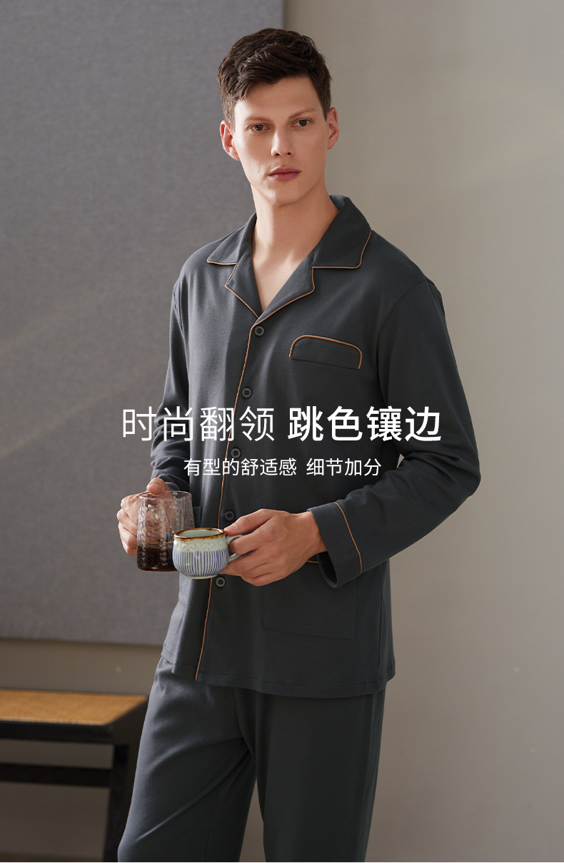 芬腾纯棉秋季男士睡衣春秋款长袖秋冬男款大码中年全棉家居服套装